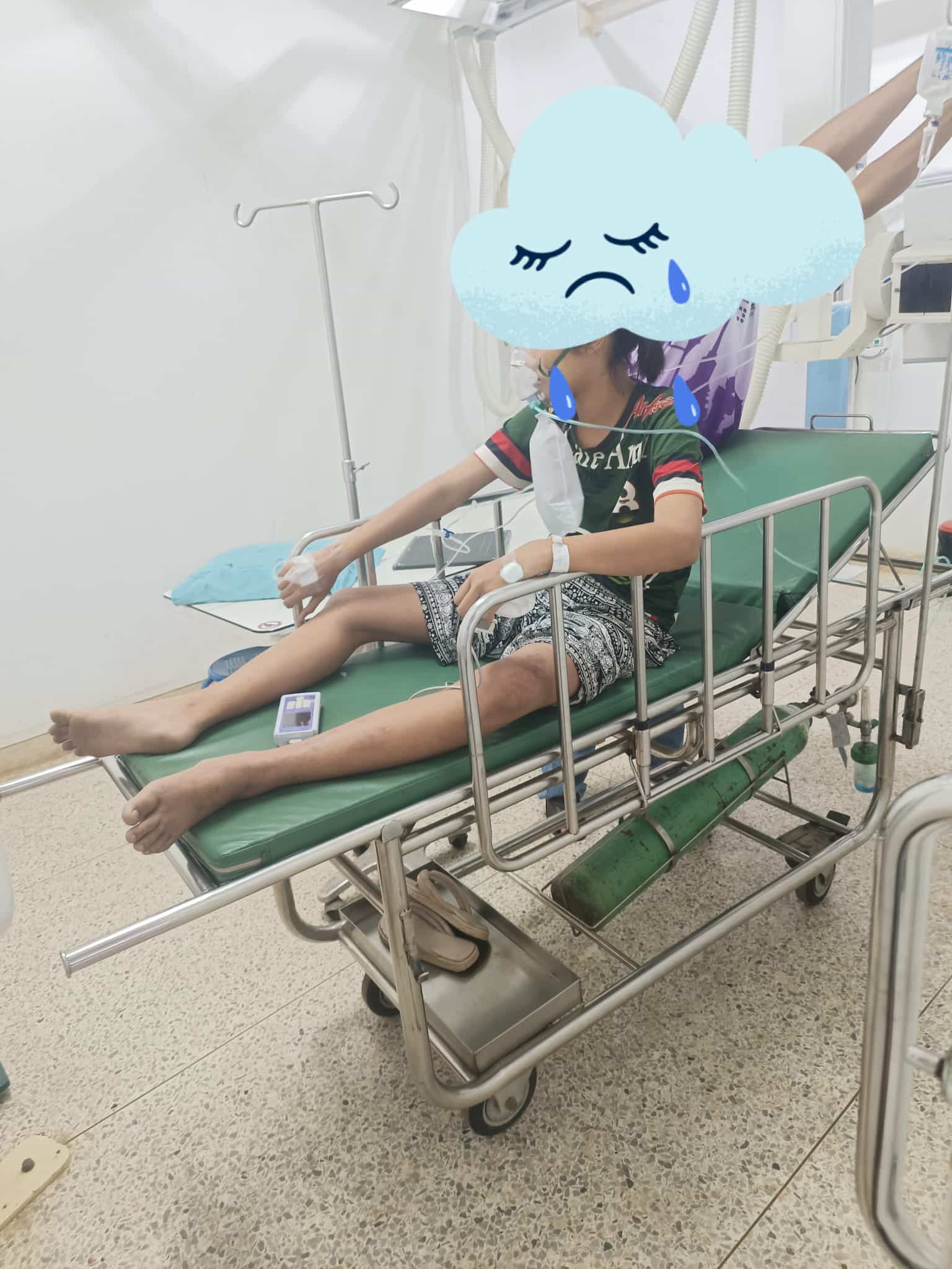 นั่งรอหมออยู่แปปๆมีจ่ำเลือดขึ้นนิ้วโป้งเท้าข้างซ้ายบวมเล็บเริ่มซ้ำคือเร็วมากปวดหนักขึ้นหมอให้น้ำเกลือยาฆ่าเชื้อส่งตัวน้องไปต่อ รพ.ในจังหวัดไปอยู่ในห้องฉุกเฉินประมาณ 2 ชม.