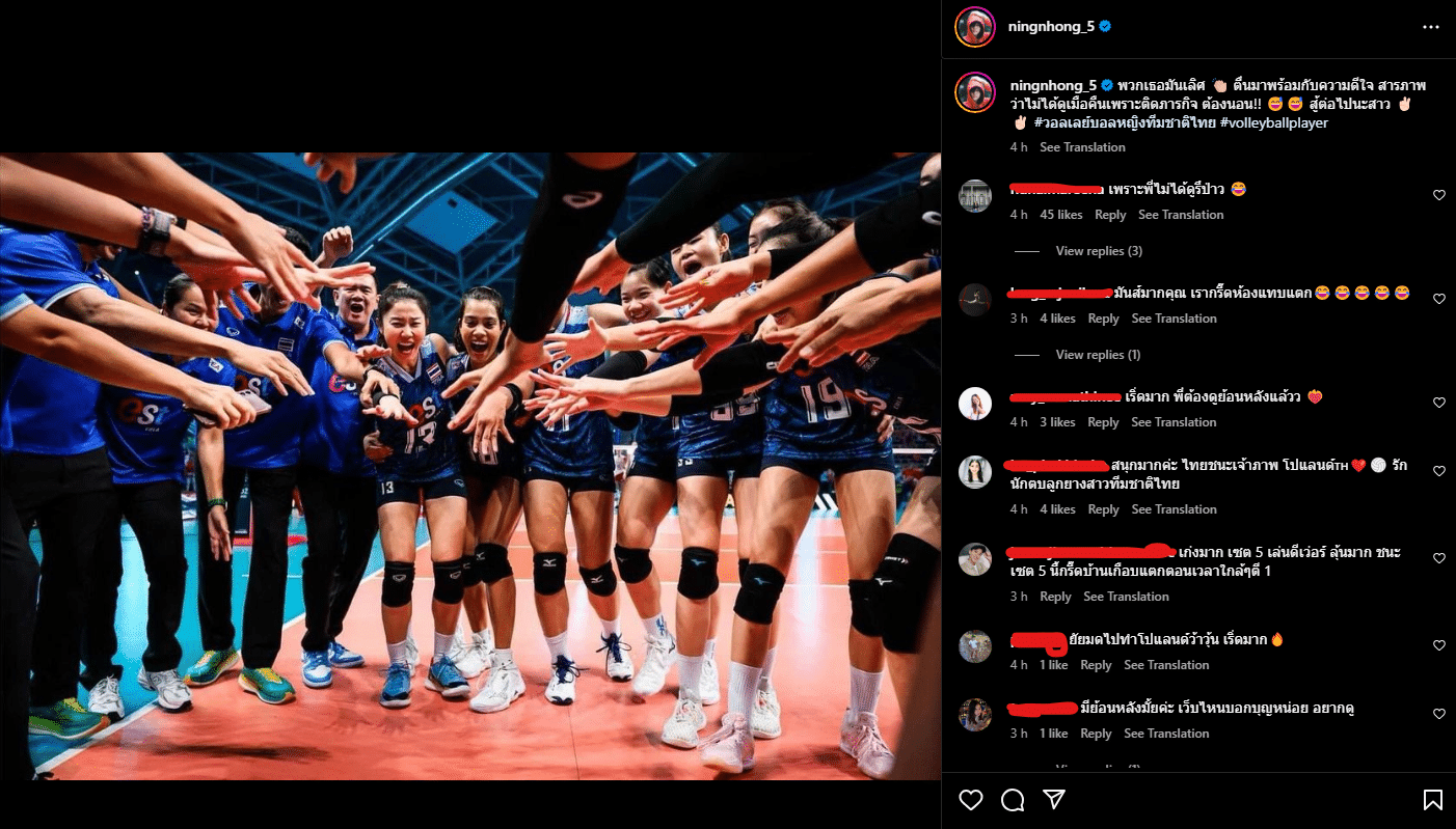 ซึ่งทางด้าน หน่อง ก็ได้เข้ามาตอบกลับคอมเมนต์ดังกล่าวของแฟนบอลด้วยความสั้นๆ แบบติดตลกว่า “นั่นน่ะสิ” ซึ่งเจ้าของคอมเมนต์ก็ถึงกับตอบด้วยอีโมจิรูปคนหัวเราะด้วยความเอ็นดูที่เจ้าตัวยอมรับว่า การที่ไม่ได้ตื่นขึ้นมาดูนัดนี้อาจเป็น 1 ในสาเหตุที่ช่วยเสริมดวงให้ วอลเลย์บอลหญิงไทย เอาชนะ โปแลนด์ ก็เป็นได้
