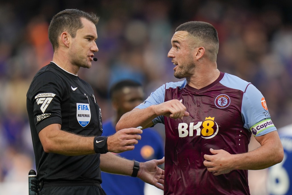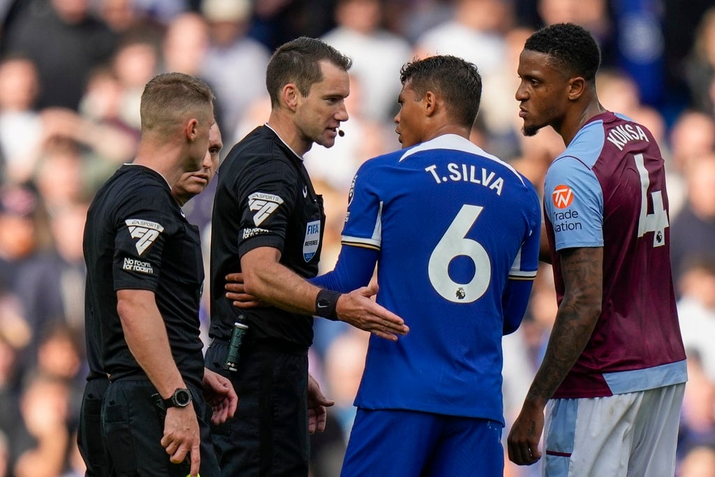 Referee Jarred Gillett shows a yellow card to Chelsea’s Ben Chilwell during the English Premier League soccer match between Chelsea and Aston Villa at Stamford Bridge stadium in London, Sunday, Sept. 24, 2023. (AP Photo/Alastair Grant)Aston Villa’s Ollie Watkins, right, duels for the ball with Chelsea’s Axel Disai during the English Premier League soccer match between Chelsea and Aston Villa at Stamford Bridge stadium in London, Sunday, Sept. 24, 2023. (AP Photo/Alastair Grant)Aston Villa’s Ollie Watkins, center, scores his side’s opening goal during the English Premier League soccer match between Chelsea and Aston Villa at Stamford Bridge stadium in London, Sunday, Sept. 24, 2023. (AP Photo/Alastair Grant)Aston Villa’s Douglas Luiz, left, duels for the ball with Chelsea’s Thiago Silva during the English Premier League soccer match between Chelsea and Aston Villa at Stamford Bridge stadium in London, Sunday, Sept. 24, 2023. (AP Photo/Alastair Grant)Chelsea’s Nicolas Jackson, left, kicks the ball during the English Premier League soccer match between Chelsea and Aston Villa at Stamford Bridge stadium in London, Sunday, Sept. 24, 2023. (AP Photo/Alastair Grant)Chelsea’s Axel Disai scores a disallowed goal during the English Premier League soccer match between Chelsea and Aston Villa at Stamford Bridge stadium in London, Sunday, Sept. 24, 2023. (AP Photo/Alastair Grant)Chelsea’s Raheem Sterling, front, kicks the ball during the English Premier League soccer match between Chelsea and Aston Villa at Stamford Bridge stadium in London, Sunday, Sept. 24, 2023. (AP Photo/Alastair Grant)Aston Villa’s Douglas Luiz, left, duels for the ball with Chelsea’s Thiago Silva during the English Premier League soccer match between Chelsea and Aston Villa at Stamford Bridge stadium in London, Sunday, Sept. 24, 2023. (AP Photo/Alastair Grant)Referee Jarred Gillett, left, discusses with Aston Villa’s John McGinn during the English Premier League soccer match between Chelsea and Aston Villa at Stamford Bridge stadium in London, Sunday, Sept. 24, 2023. (AP Photo/Alastair Grant)Referee Jarred Gillett, second left, discusses with Chelsea’s Thiago Silva, second right, and Aston Villa’s Ezri Konsa, right, during the English Premier League soccer match between Chelsea and Aston Villa at Stamford Bridge stadium in London, Sunday, Sept. 24, 2023. (AP Photo/Alastair Grant)Aston Villa’s Nicolo Zaniolo, second left, kicks the ball during the English Premier League soccer match between Chelsea and Aston Villa at Stamford Bridge stadium in London, Sunday, Sept. 24, 2023. (AP Photo/Alastair Grant)Chelsea’s Raheem Sterling, front, duels for the ball with Aston Villa’s Douglas Luiz during the English Premier League soccer match between Chelsea and Aston Villa at Stamford Bridge stadium in London, Sunday, Sept. 24, 2023. (AP Photo/Alastair Grant)Aston Villa’s Boubacar Kamara, right, duels for the ball with Chelsea’s Nicolas Jackson during the English Premier League soccer match between Chelsea and Aston Villa at Stamford Bridge stadium in London, Sunday, Sept. 24, 2023. (AP Photo/Alastair Grant)Chelsea’s Nicolas Jackson, left, jumps for the ball with Aston Villa’s Pau Torres during the English Premier League soccer match between Chelsea and Aston Villa at Stamford Bridge stadium in London, Sunday, Sept. 24, 2023. (AP Photo/Alastair Grant)Aston Villa’s John McGinn, left, duels for the ball with Chelsea’s Moises Caicedo during the English Premier League soccer match between Chelsea and Aston Villa at Stamford Bridge stadium in London, Sunday, Sept. 24, 2023. (AP Photo/Alastair Grant)Aston Villa’s John McGinn, right, duels for the ball with Chelsea’s Moises Caicedo during the English Premier League soccer match between Chelsea and Aston Villa at Stamford Bridge stadium in London, Sunday, Sept. 24, 2023. (AP Photo/Alastair Grant)