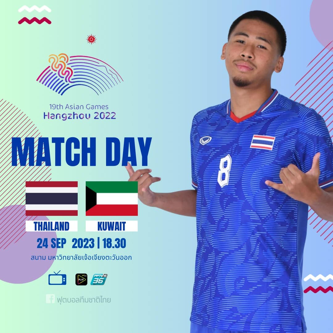 24 กันยายน 2566 เวลา 18:30 น. รายงานการแข่งขันฟุตบอลไทยวันนี้ ในศึกฟุตบอลชาย เอเชียนเกมส์ หางโจว 2022 รอบแบ่งกลุ่ม กลุ่ม อี คู่ระหว่าง ทีมชาติไทย พบกับ ทีมชาติคูเวต