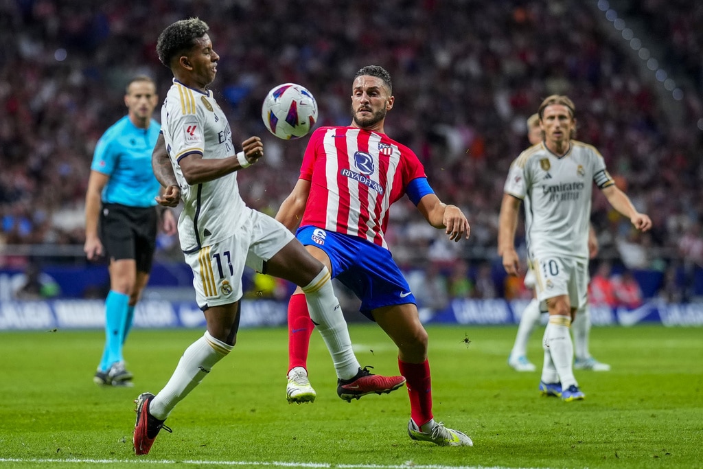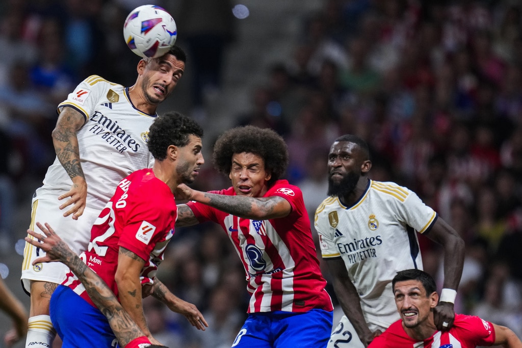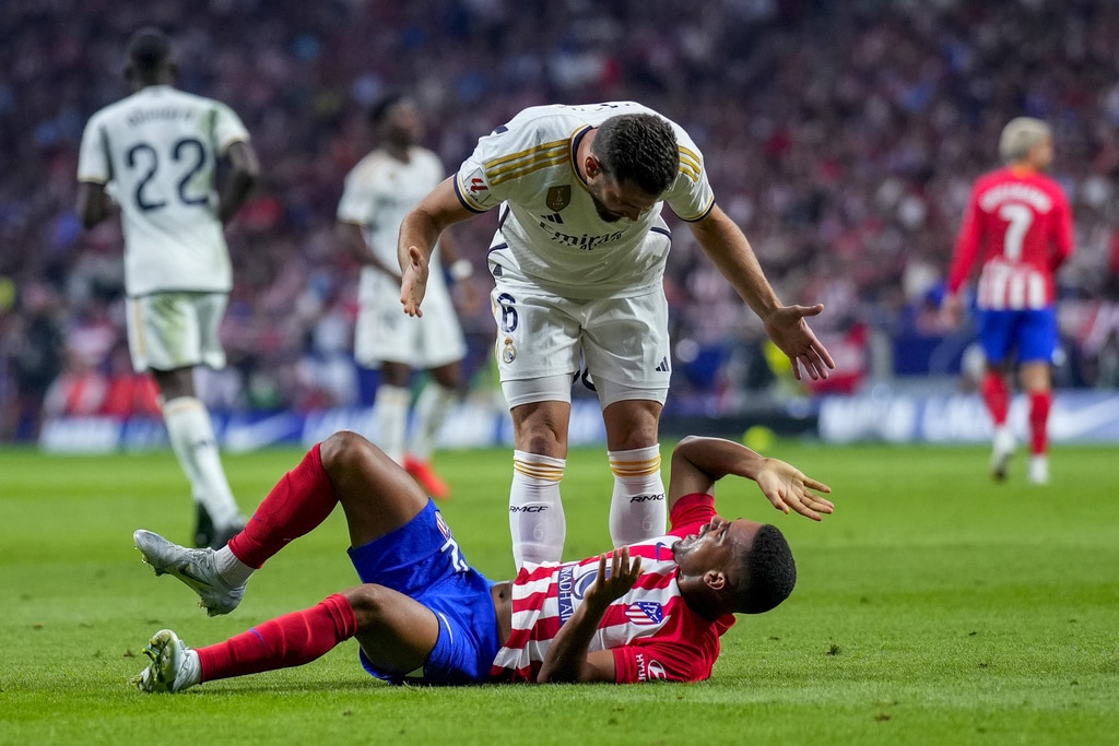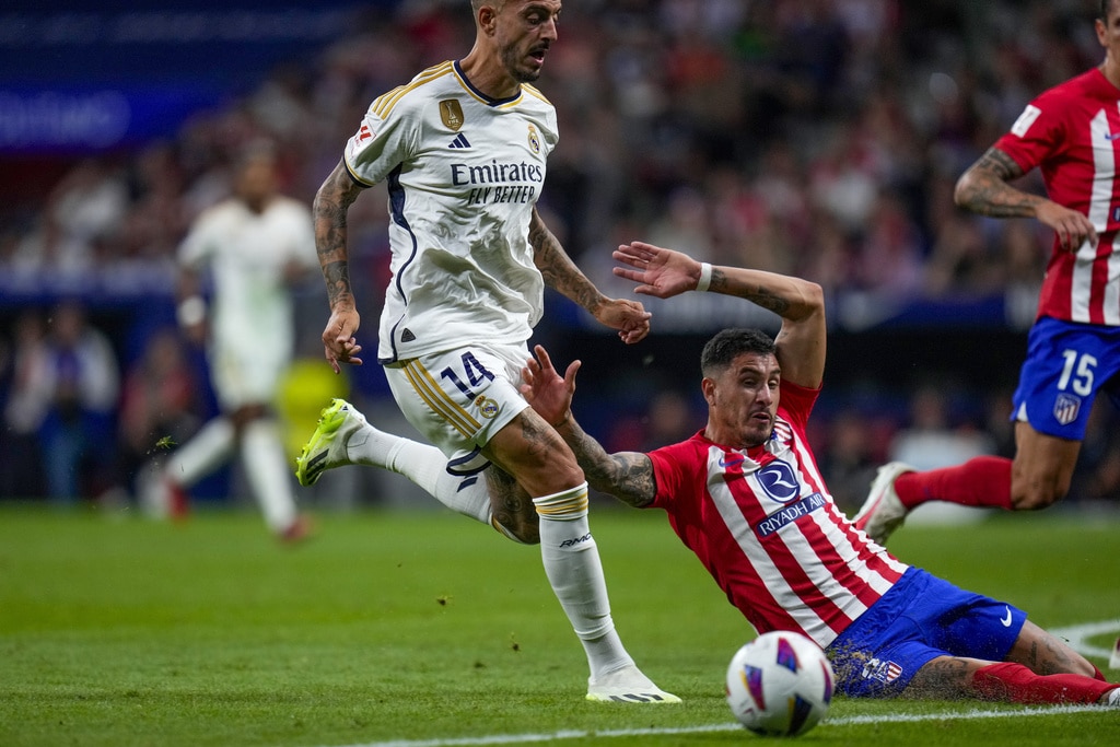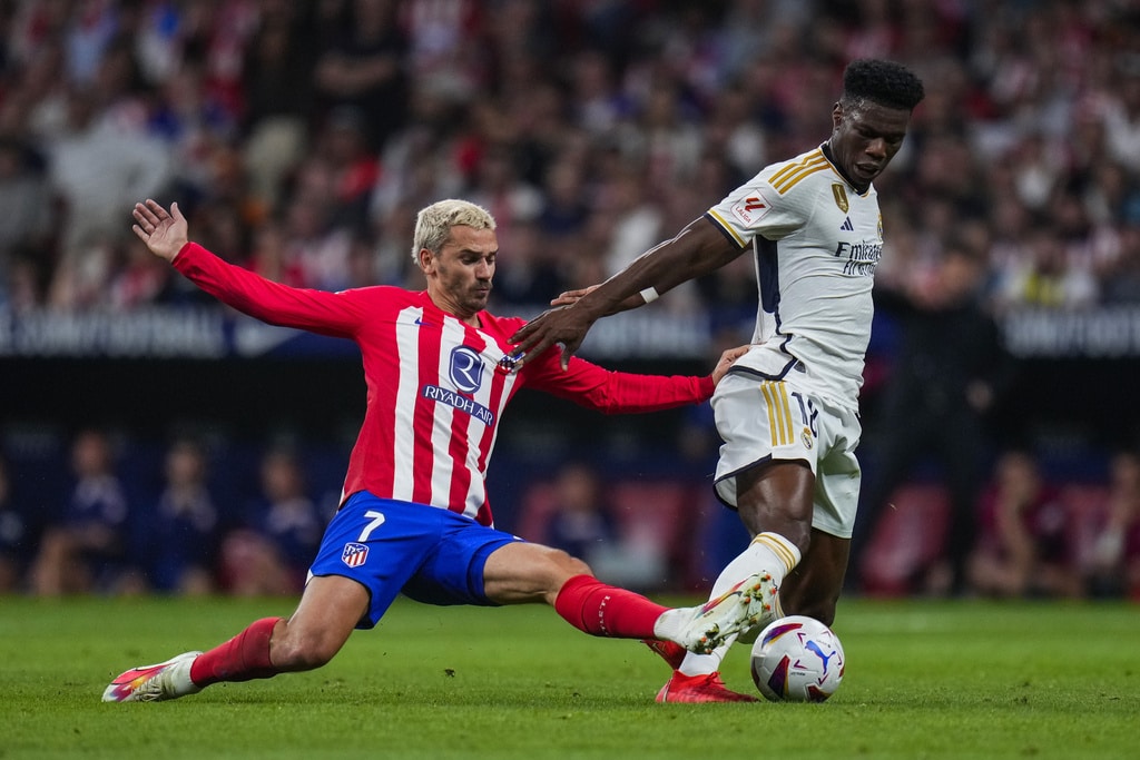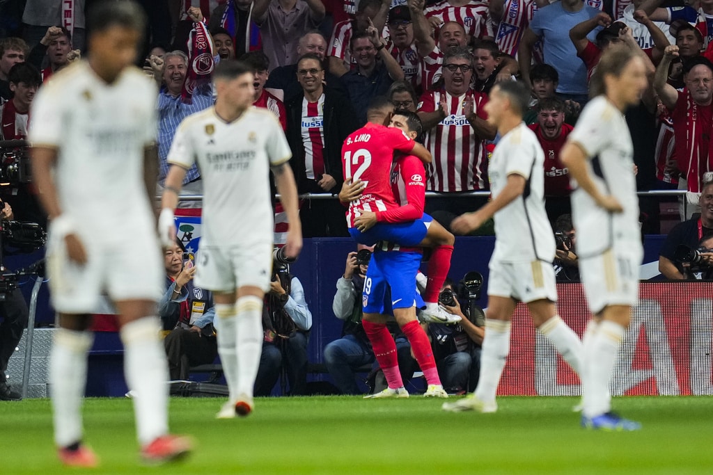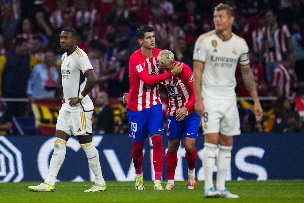 Atletico Madrid’s Antoine Griezmann, left, vies for the ball with Real Madrid’s Aurelien Tchouameni during the Spanish La Liga soccer match between Atletico Madrid and Real Madrid at Metropolitan stadium in Madrid, Sunday, Sept. 24, 2023. Atletico Madrid won 3-1. (AP Photo/Manu Fernandez)Atletico Madrid’s Marcos Llorente, left, vies for the ball with Real Madrid’s Jude Bellingham during the Spanish La Liga soccer match between Atletico Madrid and Real Madrid at Metropolitan stadium in Madrid, Sunday, Sept. 24, 2023. Atletico Madrid won 3-1. (AP Photo/Manu Fernandez)Real Madrid’s Brahim Diaz falls down as he vies for the ball with Atletico Madrid defenders during the Spanish La Liga soccer match between Atletico Madrid and Real Madrid at Metropolitan stadium in Madrid, Sunday, Sept. 24, 2023. Atletico Madrid won 3-1. (AP Photo/Manu Fernandez)Atletico Madrid’s Antoine Griezmann, left, vies for the ball with Real Madrid’s Aurelien Tchouameni during the Spanish La Liga soccer match between Atletico Madrid and Real Madrid at Metropolitan stadium in Madrid, Sunday, Sept. 24, 2023. Atletico Madrid won 3-1. (AP Photo/Manu Fernandez)Real Madrid’s Joselu, top, out jumps Atletico Madrid defenders during the Spanish La Liga soccer match between Atletico Madrid and Real Madrid at Metropolitan stadium in Madrid, Sunday, Sept. 24, 2023. Atletico Madrid won 3-1. (AP Photo/Manu Fernandez)Real Madrid’s Joselu controls the ball during the Spanish La Liga soccer match between Atletico Madrid and Real Madrid at Metropolitan stadium in Madrid, Sunday, Sept. 24, 2023. (AP Photo/Manu Fernandez)Real Madrid’s Joselu, left, tussles for the ball with Atletico Madrid’s Jose Gimenez during the Spanish La Liga soccer match between Atletico Madrid and Real Madrid at Metropolitan stadium in Madrid, Sunday, Sept. 24, 2023. (AP Photo/Manu Fernandez)Real Madrid’s Nacho, top, talks to Atletico Madrid’s Samuel Lino during the Spanish La Liga soccer match between Atletico Madrid and Real Madrid at Metropolitan stadium in Madrid, Sunday, Sept. 24, 2023. (AP Photo/Manu Fernandez)Real Madrid’s Jude Bellingham, center, vies for the ball with Atletico Madrid’s Axel Witsel, right, and Antoine Griezmann during the Spanish La Liga soccer match between Atletico Madrid and Real Madrid at Metropolitan stadium in Madrid, Sunday, Sept. 24, 2023. (AP Photo/Manu Fernandez)Atletico Madrid’s Alvaro Morata, right, celebrates with teammate Samuel Lino after scoring the opening goal during the Spanish La Liga soccer match between Atletico Madrid and Real Madrid at Metropolitan stadium in Madrid, Sunday, Sept. 24, 2023. (AP Photo/Manu Fernandez)Real Madrid’s Luka Modric, right, looks rejected after Atletico Madrid’s Alvaro Morata scored the opening goal during the Spanish La Liga soccer match between Atletico Madrid and Real Madrid at Metropolitan stadium in Madrid, Sunday, Sept. 24, 2023. (AP Photo/Manu Fernandez)Atletico Madrid’s Alvaro Morata, center, vies for the ball with Real Madrid’s Eduardo Camavinga, right, during the Spanish La Liga soccer match between Atletico Madrid and Real Madrid at Metropolitan stadium in Madrid, Sunday, Sept. 24, 2023. (AP Photo/Manu Fernandez)Real Madrid’s Rodrygo, left, tussles for the ball with Atletico Madrid’s Koke during the Spanish La Liga soccer match between Atletico Madrid and Real Madrid at Metropolitan stadium in Madrid, Sunday, Sept. 24, 2023. (AP Photo/Manu Fernandez)Atletico Madrid’s Alvaro Morata celebrates after scoring his side’s third goal during the Spanish La Liga soccer match between Atletico Madrid and Real Madrid at Metropolitan stadium in Madrid, Sunday, Sept. 24, 2023. (AP Photo/Manu Fernandez)Atletico Madrid’s Alvaro Morata, second left, celebrates with teammate Antoine Griezmann after scoring his side’s third goal during the Spanish La Liga soccer match between Atletico Madrid and Real Madrid at Metropolitan stadium in Madrid, Sunday, Sept. 24, 2023. (AP Photo/Manu Fernandez)Atletico Madrid’s goalkeeper Jan Oblak celebrates with supporters at the end of the Spanish La Liga soccer match between Atletico Madrid and Real Madrid at Metropolitan stadium in Madrid, Sunday, Sept. 24, 2023. Atletico Madrid won 3-1. (AP Photo/Manu Fernandez)