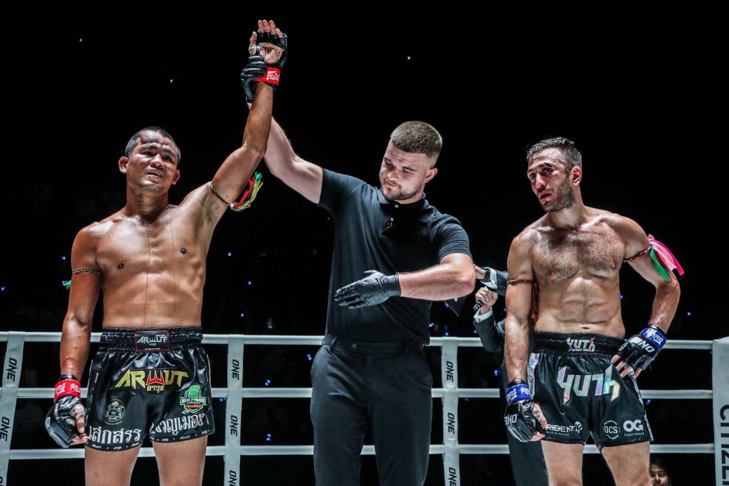 “รถถัง จิตรเมืองนนท์” พ่ายคะแนน “ซุปเปอร์เล็ก เกียรติหมู่ 9” ไปสุดเดือด ในศึก ONE ลุมพินี 34
