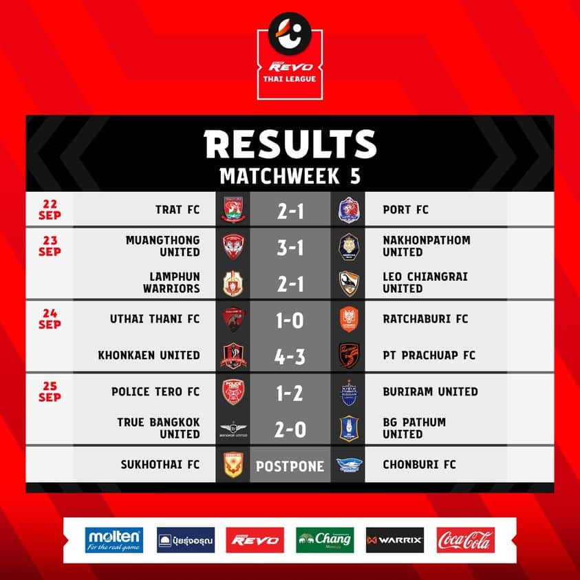 สรุปผลการแข่งขัน รีโว่ ไทยลีก 2023/24 หลังจบนัดที่ 5