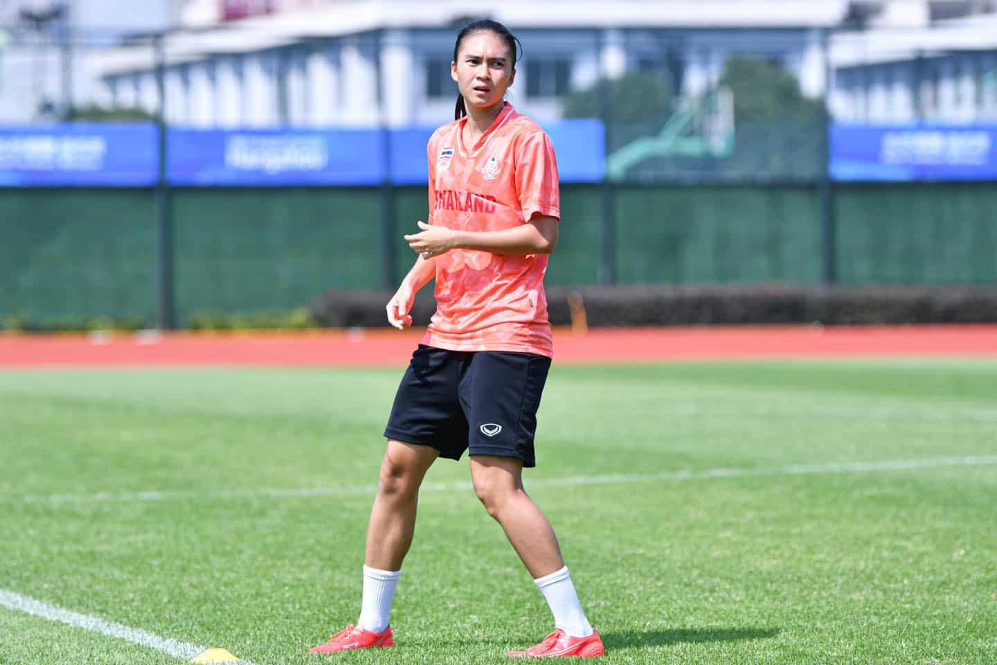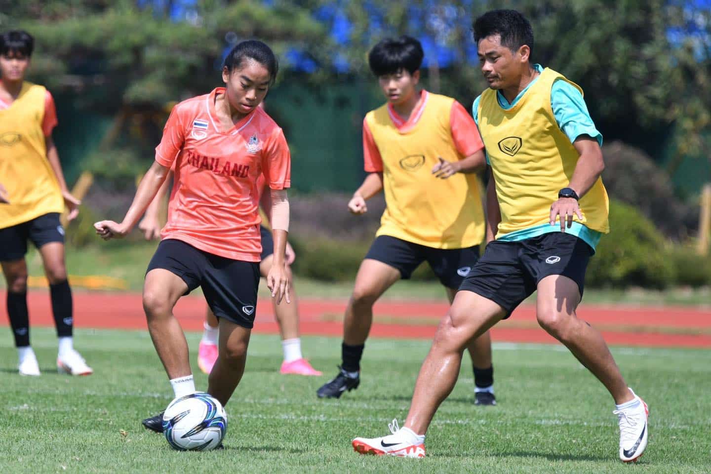 ก่อนการฝึกซ้อม ปาริชาติ ทองรอง ชบาแก้ววัย 17 ปี กล่าวว่า “รู้สึกดีใจที่ได้ลง 11 ตัวจริง และยังสามารถทำประตูช่วยให้ทีมเก็บชัยชนะ เกมแรกได้สำเร็จ”