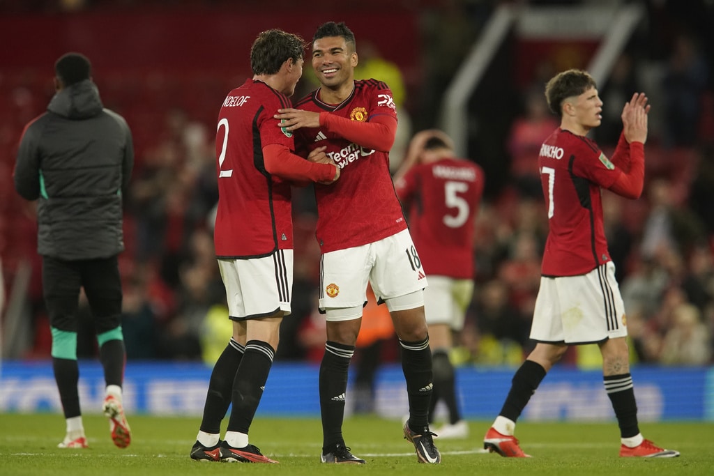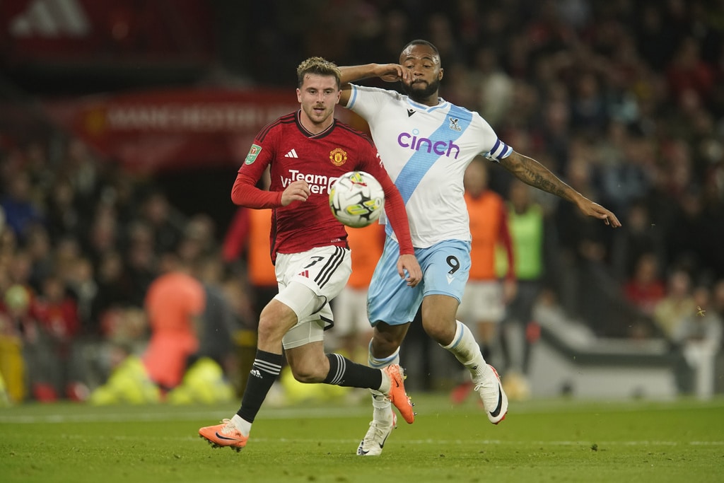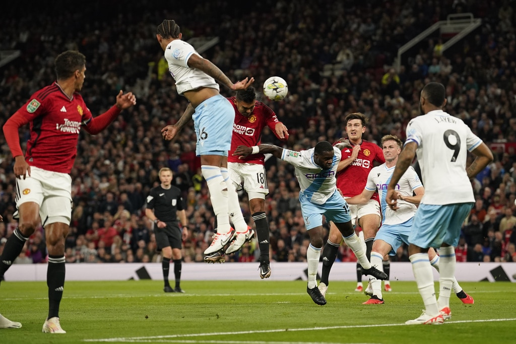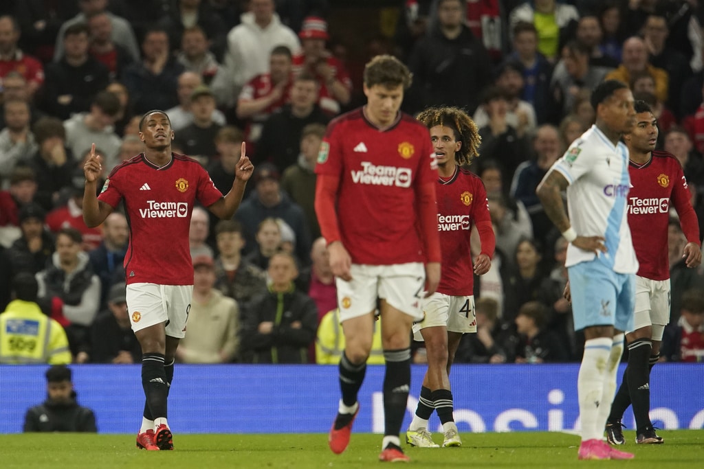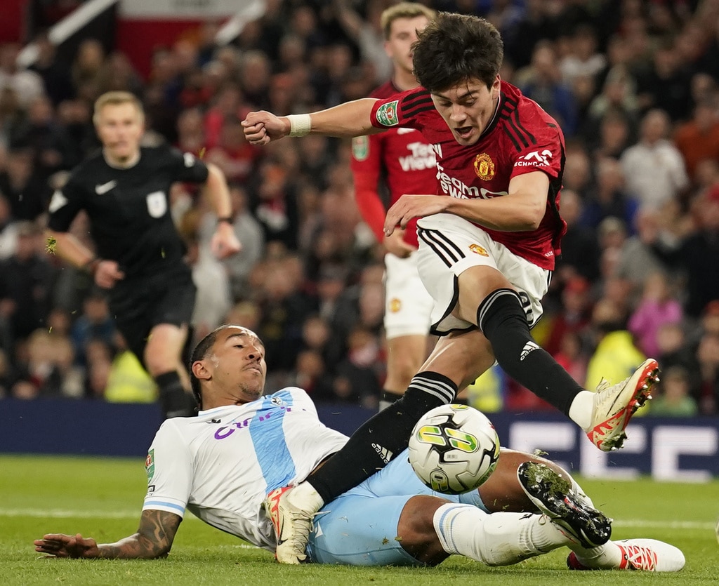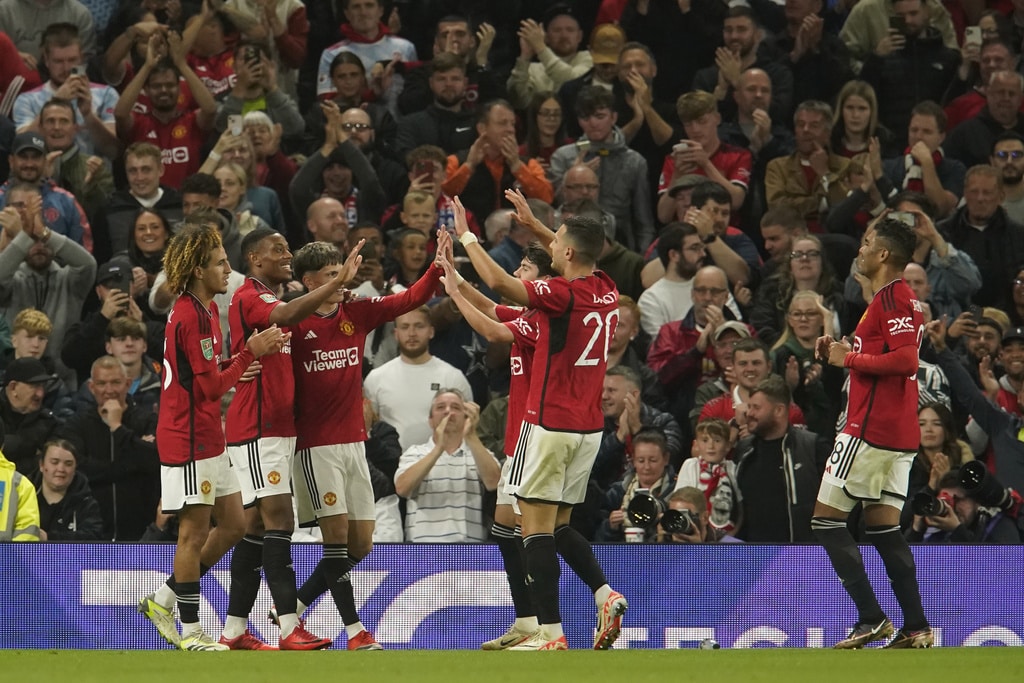 Manchester United’s Alejandro Garnacho, left, scores his side’s opening goal during the English League Cup third round soccer match between Manchester United and Crystal Palace at Old Trafford stadium in Manchester, England, Tuesday, Sept. 26, 2023. (AP Photo/Dave Thompson)Manchester United’s Casemiro, center, scores his side’s second goal during the English League Cup third round soccer match between Manchester United and Crystal Palace at Old Trafford stadium in Manchester, England, Tuesday, Sept. 26, 2023. (AP Photo/Dave Thompson)Manchester United’s Casemiro celebrates after scoring his side’s second goal during the English League Cup third round soccer match between Manchester United and Crystal Palace at Old Trafford stadium in Manchester, England, Tuesday, Sept. 26, 2023. (AP Photo/Dave Thompson)Manchester United’s Mason Mount, right, controls the ball past Crystal Palace’s Jordan Ayew during the English League Cup third round soccer match between Manchester United and Crystal Palace at Old Trafford stadium in Manchester, England, Tuesday, Sept. 26, 2023. (AP Photo/Dave Thompson)Manchester United’s Mason Mount, left, is challenged by Crystal Palace’s Jordan Ayew during the English League Cup third round soccer match between Manchester United and Crystal Palace at Old Trafford stadium in Manchester, England, Tuesday, Sept. 26, 2023. (AP Photo/Dave Thompson)Manchester United’s Facundo Pellistri, right, is tackled by Crystal Palace’s Chris Richards during the English League Cup third round soccer match between Manchester United and Crystal Palace at Old Trafford stadium in Manchester, England, Tuesday, Sept. 26, 2023. (AP Photo/Dave Thompson)Manchester United’s Victor Lindelof, left, fights for the ball with Crystal Palace’s Chris Richards during the English League Cup third round soccer match between Manchester United and Crystal Palace at Old Trafford stadium in Manchester, England, Tuesday, Sept. 26, 2023. (AP Photo/Dave Thompson)Manchester United’s Anthony Martial, second left, celebrates with his teamamgtes after scoring his side’s third goal during the English League Cup third round soccer match between Manchester United and Crystal Palace at Old Trafford stadium in Manchester, England, Tuesday, Sept. 26, 2023. (AP Photo/Dave Thompson)Manchester United’s Anthony Martial, left, celebrates after scoring his side’s third goal during the English League Cup third round soccer match between Manchester United and Crystal Palace at Old Trafford stadium in Manchester, England, Tuesday, Sept. 26, 2023. (AP Photo/Dave Thompson)Manchester United’s Victor Lindelof, left, and Manchester United’s Casemiro celebrate at the end of the English League Cup third round soccer match between Manchester United and Crystal Palace at Old Trafford stadium in Manchester, England, Tuesday, Sept. 26, 2023. (AP Photo/Dave Thompson)Manchester United’s Harry Maguire gestures during the English League Cup third round soccer match between Manchester United and Crystal Palace at Old Trafford stadium in Manchester, England, Tuesday, Sept. 26, 2023. (AP Photo/Dave Thompson)Crystal Palace’s Jean-Philippe Mateta, left, attempts a shot at goal in front of Manchester United’s Jonny Evans, center, and Manchester United’s Diogo Dalot during the English League Cup third round soccer match between Manchester United and Crystal Palace at Old Trafford stadium in Manchester, England, Tuesday, Sept. 26, 2023. (AP Photo/Dave Thompson)Crystal Palace’s Jairo Riedewald, left, fights for the ball with Manchester United’s Hannibal Mejbri during the English League Cup third round soccer match between Manchester United and Crystal Palace at Old Trafford stadium in Manchester, England, Tuesday, Sept. 26, 2023. (AP Photo/Dave Thompson)Manchester United’s Daniel Gore runs during the English League Cup third round soccer match between Manchester United and Crystal Palace at Old Trafford stadium in Manchester, England, Tuesday, Sept. 26, 2023. (AP Photo/Dave Thompson)Manchester United’s Casemiro celebrates after scoring his side’s second goal during the English League Cup third round soccer match between Manchester United and Crystal Palace at Old Trafford stadium in Manchester, England, Tuesday, Sept. 26, 2023. (AP Photo/Dave Thompson)