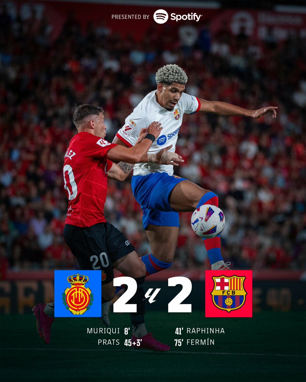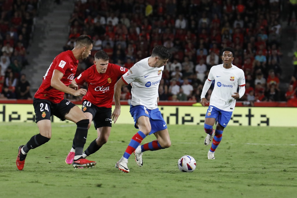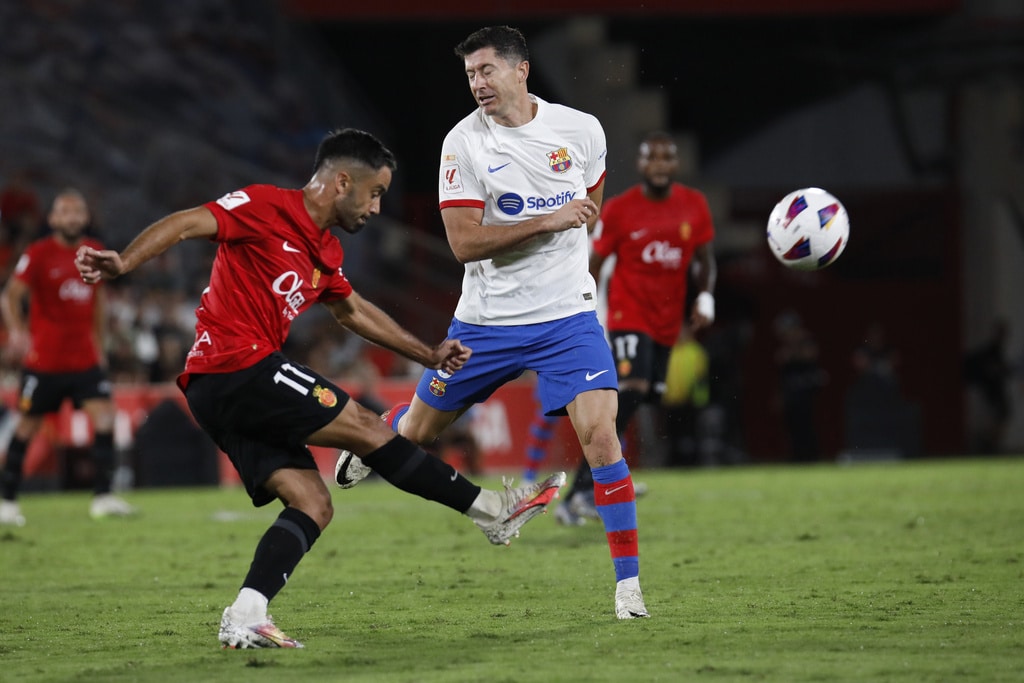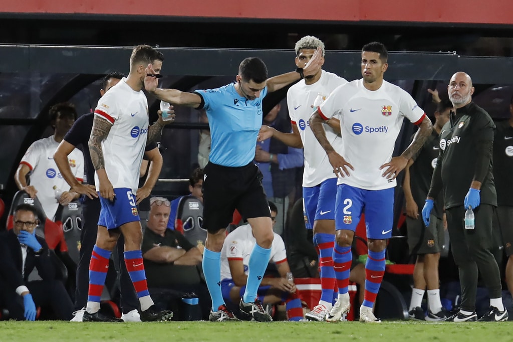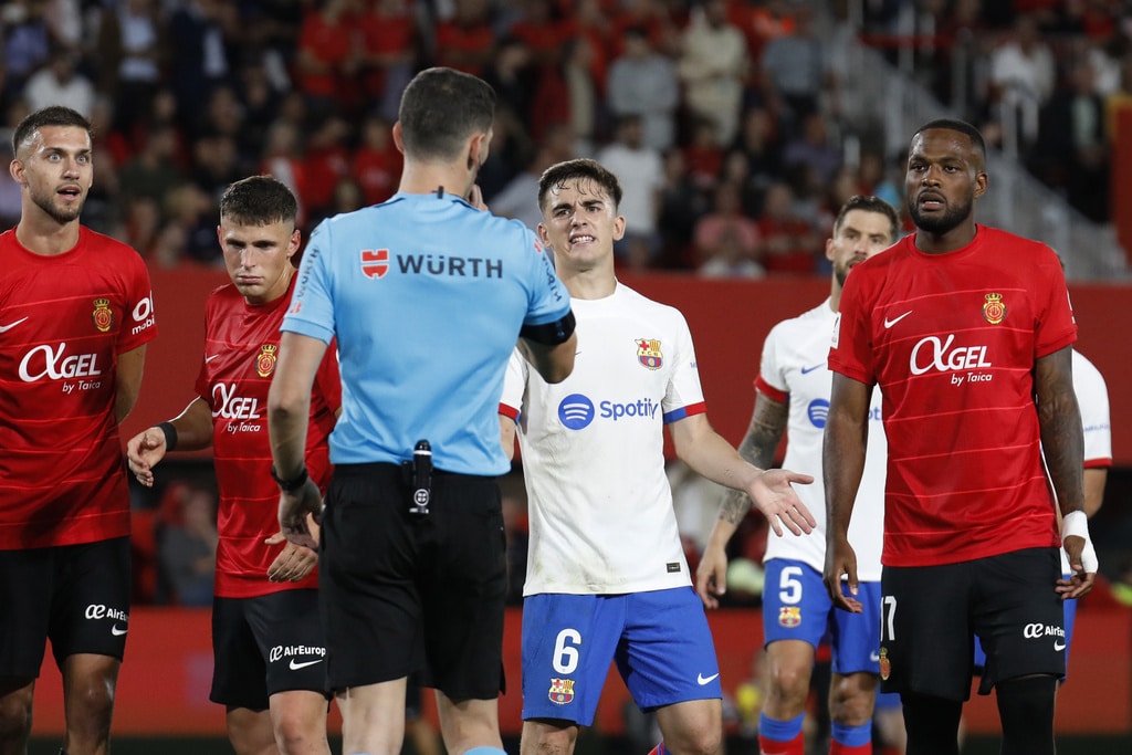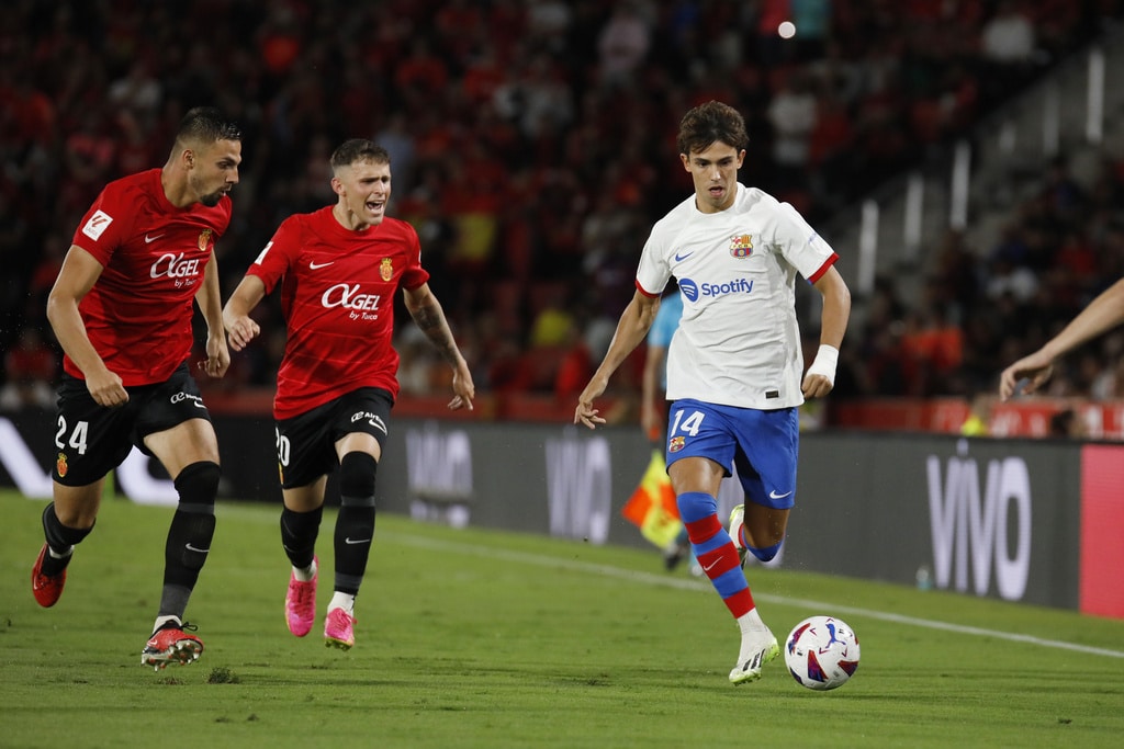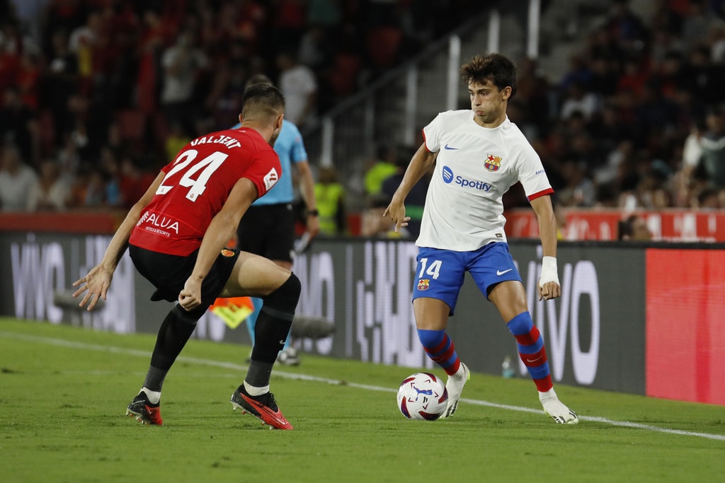 Barcelona’s Joao Felix reacts during a Spanish La Liga soccer match between Mallorca and Barcelona at the Son Moix stadium in Palma de Mallorca, Spain, Tuesday, Sept. 26, 2023. (AP Photo/Francisco Ubilla)Barcelona’s Joao Cancelo controls the ball during a Spanish La Liga soccer match between Mallorca and Barcelona at the Son Moix stadium in Palma de Mallorca, Spain, Tuesday, Sept. 26, 2023. (AP Photo/Francisco Ubilla)Barcelona’s Joao Felix, right, challenges for the ball with Mallorca’s Martin Valjent, left, and Mallorca’s Giovanni Gonzalez during a Spanish La Liga soccer match between Mallorca and Barcelona at the Son Moix stadium in Palma de Mallorca, Spain, Tuesday, Sept. 26, 2023. (AP Photo/Francisco Ubilla)Barcelona’s Gavi, right, challenges for the ball with Mallorca’s Antonio Sanchez during a Spanish La Liga soccer match between Mallorca and Barcelona at the Son Moix stadium in Palma de Mallorca, Spain, Tuesday, Sept. 26, 2023. (AP Photo/Francisco Ubilla)Barcelona’s Joao Felix, right, challenges for the ball with Mallorca’s Martin Valjent during a Spanish La Liga soccer match between Mallorca and Barcelona at the Son Moix stadium in Palma de Mallorca, Spain, Tuesday, Sept. 26, 2023. (AP Photo/Francisco Ubilla)Referee gestures during a Spanish La Liga soccer match between Mallorca and Barcelona at the Son Moix stadium in Palma de Mallorca, Spain, Tuesday, Sept. 26, 2023. (AP Photo/Francisco Ubilla)Barcelona’s Gavi talks with referee during a Spanish La Liga soccer match between Mallorca and Barcelona at the Son Moix stadium in Palma de Mallorca, Spain, Tuesday, Sept. 26, 2023. (AP Photo/Francisco Ubilla)Barcelona’s Fermin Lopez celebrates after scoring his side’s second goal during a Spanish La Liga soccer match between Mallorca and Barcelona at the Son Moix stadium in Palma de Mallorca, Spain, Tuesday, Sept. 26, 2023. (AP Photo/Francisco Ubilla)Barcelona’s Fermin Lopez celebrates with his teammates after scoring his side’s second goal during a Spanish La Liga soccer match between Mallorca and Barcelona at the Son Moix stadium in Palma de Mallorca, Spain, Tuesday, Sept. 26, 2023. (AP Photo/Francisco Ubilla)Barcelona’s Fermin Lopez celebrates after scoring his side’s second goal during a Spanish La Liga soccer match between Mallorca and Barcelona at the Son Moix stadium in Palma de Mallorca, Spain, Tuesday, Sept. 26, 2023. (AP Photo/Francisco Ubilla)Mallorca’s players react at the end of the Spanish La Liga soccer match between Mallorca and Barcelona at the Son Moix stadium in Palma de Mallorca, Spain, Tuesday, Sept. 26, 2023. (AP Photo/Francisco Ubilla)Mallorca’s Jaume Costa, left, challenges for the ball with Barcelona’s Robert Lewandowski during a Spanish La Liga soccer match between Mallorca and Barcelona at the Son Moix stadium in Palma de Mallorca, Spain, Tuesday, Sept. 26, 2023. (AP Photo/Francisco Ubilla)Barcelona’s Robert Lewandowski reacts during a Spanish La Liga soccer match between Mallorca and Barcelona at the Son Moix stadium in Palma de Mallorca, Spain, Tuesday, Sept. 26, 2023. (AP Photo/Francisco Ubilla)Barcelona’s Gavi, right, dribbles past Mallorca’s Antonio Sanchez during a Spanish La Liga soccer match between Mallorca and Barcelona at the Son Moix stadium in Palma de Mallorca, Spain, Tuesday, Sept. 26, 2023. (AP Photo/Francisco Ubilla)Barcelona’s Ilkay Gundogan, centre, tries to dribble past Mallorca’s Sergi Darder, left, during a Spanish La Liga soccer match between Mallorca and Barcelona at the Son Moix stadium in Palma de Mallorca, Spain, Tuesday, Sept. 26, 2023. (AP Photo/Francisco Ubilla)Barcelona’s Robert Lewandowski, right, challenges for the ball with Mallorca’s Martin Valjent, left, and Mallorca’s Giovanni Gonzalez during a Spanish La Liga soccer match between Mallorca and Barcelona at the Son Moix stadium in Palma de Mallorca, Spain, Tuesday, Sept. 26, 2023. (AP Photo/Francisco Ubilla)