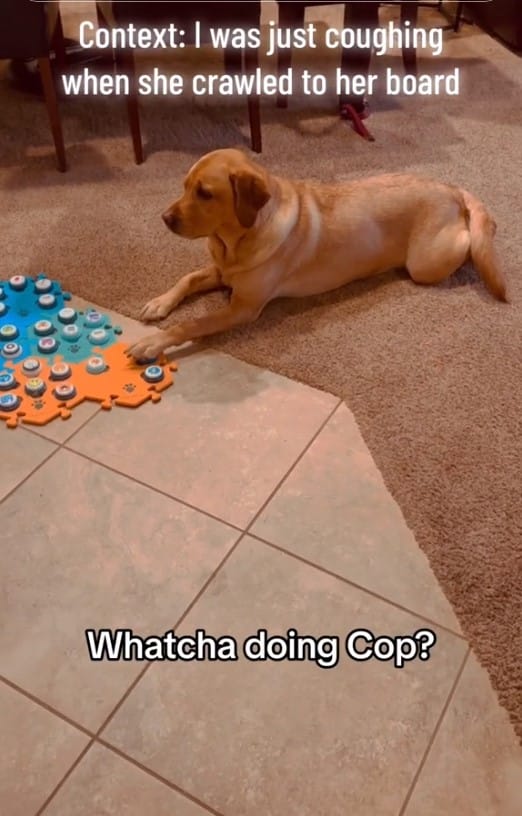 เจ้าตูบตัวนี้ไม่เพียงแต่สื่อสารได้เท่านั้นแต่มันยังฟังคำพูดของเจ้าของออกทุกคำด้วย จนสามารถตอบโต้กันไปมาได้รู้เรื่องทุกอย่าง เช่น เมื่อเจ้าของถามกดที่ปุ่ม ‘Why’ เพื่อถามว่าเป็นห่วงอะไร หมาตัวนี้จึงเอาเท้ากดที่ปุ่ม ‘Sound’ หมายความว่าเขาห่วงเสียงไอของแม่