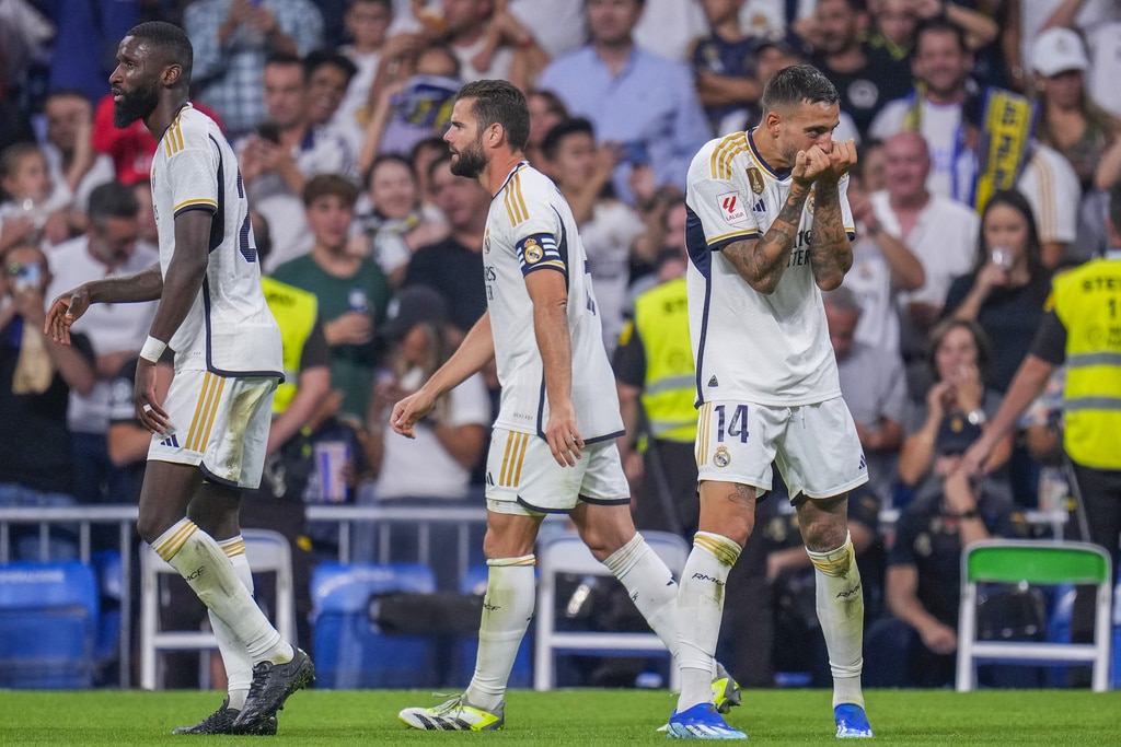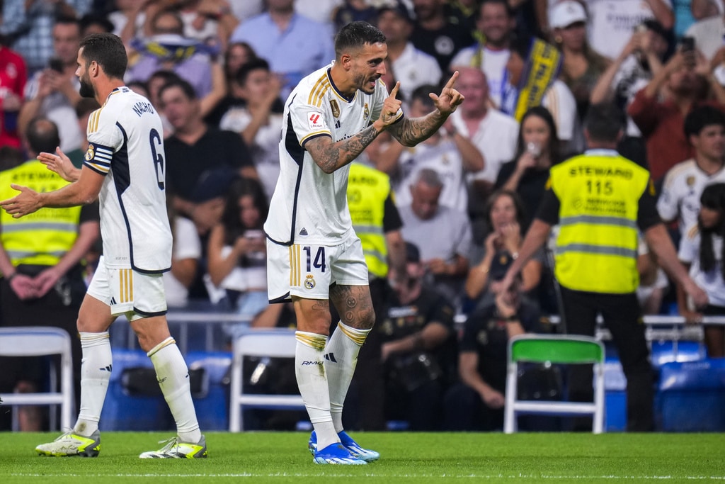Real Madrid’s Joselu celebrates after scoring his side’s second goal during a Spanish La Liga soccer match between Real Madrid and Las Palmas, at Santiago Bernabeu stadium, in Madrid, Wednesday, Sept. 27, 2023. (AP Photo/Manu Fernandez)Real Madrid’s Joselu, top, heads the ball to score his side’s second goal during a Spanish La Liga soccer match between Real Madrid and Las Palmas, at Santiago Bernabeu stadium, in Madrid, Wednesday, Sept. 27, 2023. (AP Photo/Manu Fernandez)Real Madrid’s Joselu celebrates after scoring his side’s second goal during a Spanish La Liga soccer match between Real Madrid and Las Palmas, at Santiago Bernabeu stadium, in Madrid, Wednesday, Sept. 27, 2023. (AP Photo/Manu Fernandez)Real Madrid’s Joselu celebrates after scoring his side’s second goal during a Spanish La Liga soccer match between Real Madrid and Las Palmas, at Santiago Bernabeu stadium, in Madrid, Wednesday, Sept. 27, 2023. Joselu scored once in Real Madrid’s 2-0 victory. (AP Photo/Manu Fernandez)Real Madrid’s Rodrygo, left, fights for the ball with Las Palmas’ Saul Coco during a Spanish La Liga soccer match between Real Madrid and Las Palmas, at Santiago Bernabeu stadium, in Madrid, Wednesday, Sept. 27, 2023. Real Madrid won 2-0. (AP Photo/Manu Fernandez)Real Madrid’s Rodrygo, left, fights for the ball with Las Palmas’ Saul Coco during a Spanish La Liga soccer match between Real Madrid and Las Palmas, at Santiago Bernabeu stadium, in Madrid, Wednesday, Sept. 27, 2023. Real Madrid won 2-0. (AP Photo/Manu Fernandez)Real Madrid’s Rodrygo, left, fights for the ball with Las Palmas’ Saul Coco during a Spanish La Liga soccer match between Real Madrid and Las Palmas, at Santiago Bernabeu stadium, in Madrid, Wednesday, Sept. 27, 2023. Real Madrid won 2-0. (AP Photo/Manu Fernandez)Las Palmas’ Saul Coco, left, vies for the ball with Real Madrid’s Vinicius Junior during a Spanish La Liga soccer match between Real Madrid and Las Palmas, at Santiago Bernabeu stadium, in Madrid, Wednesday, Sept. 27, 2023. (AP Photo/Manu Fernandez)Real Madrid’s Rodrygo, center, challenges Las Palmas’ goalkeeper Alvaro Valles, right, during a Spanish La Liga soccer match between Real Madrid and Las Palmas, at Santiago Bernabeu stadium, in Madrid, Wednesday, Sept. 27, 2023. (AP Photo/Manu Fernandez)Real Madrid’s Federico Valverde, second left, vies for the ball with Las Palmas’ defenders during a Spanish La Liga soccer match between Real Madrid and Las Palmas, at Santiago Bernabeu stadium, in Madrid, Wednesday, Sept. 27, 2023. (AP Photo/Manu Fernandez)Real Madrid’s Joselu, right, celebrates after scoring his side’s second goal during a Spanish La Liga soccer match between Real Madrid and Las Palmas, at Santiago Bernabeu stadium, in Madrid, Wednesday, Sept. 27, 2023. Joselu scored once in Real Madrid’s 2-0 victory. (AP Photo/Manu Fernandez)Real Madrid’s Joselu, top, heads the ball to score his side’s second goal during a Spanish La Liga soccer match between Real Madrid and Las Palmas, at Santiago Bernabeu stadium, in Madrid, Wednesday, Sept. 27, 2023. Joselu scored once in Real Madrid’s 2-0 victory. (AP Photo/Manu Fernandez)Real Madrid’s Federico Valverde, left, vies for the ball with Las Palmas’ Cristian Herrera during a Spanish La Liga soccer match between Real Madrid and Las Palmas, at Santiago Bernabeu stadium, in Madrid, Wednesday, Sept. 27, 2023. Real Madrid won 2-0. (AP Photo/Manu Fernandez)Real Madrid’s Rodrygo, center, vies for the ball with Las Palmas’ Saul Coco, left, and Julian Araujo during a Spanish La Liga soccer match between Real Madrid and Las Palmas, at Santiago Bernabeu stadium, in Madrid, Wednesday, Sept. 27, 2023. Joselu scored once in Real Madrid’s 2-0 victory. (AP Photo/Manu Fernandez)