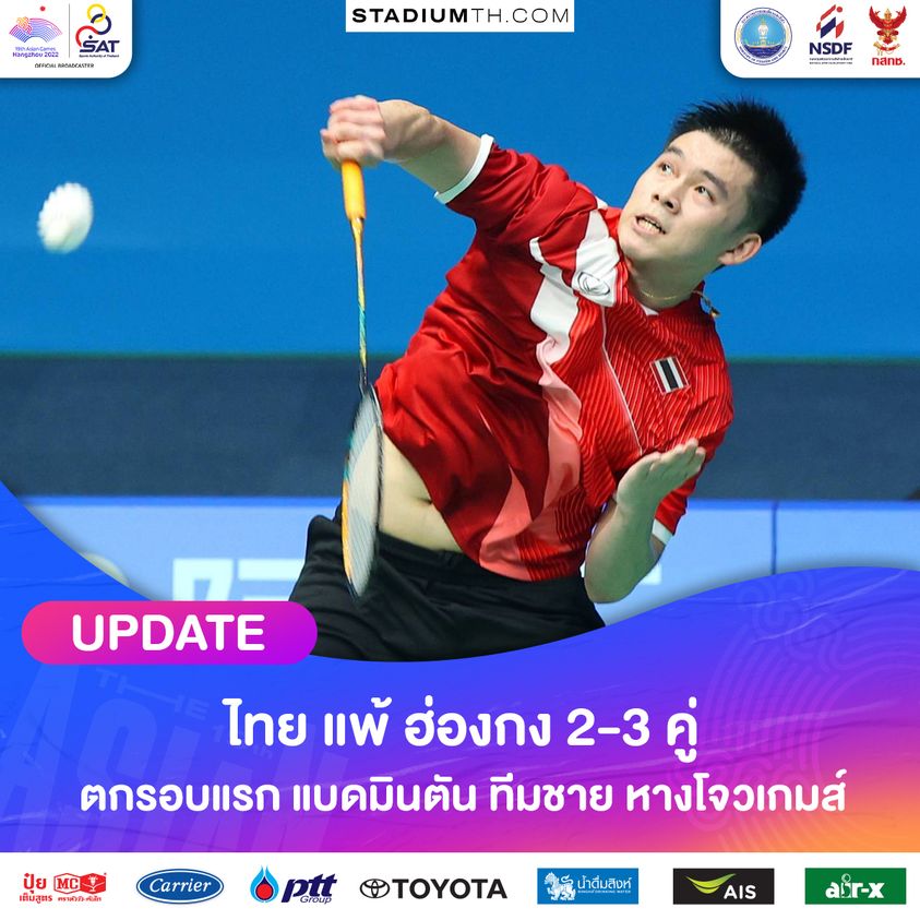 ทีมแบดมินตันชายไทย สู้สุดใจก่อนพ่ายฮ่องกง ไปอย่างน่าเสียดาย 2-3 คู่ จบเส้นทางใน แบดมินตัน ทีมชาย เอเชียนเกมส์ ไว้เพียงแค่รอบ 16 ทีมสุดท้าย
