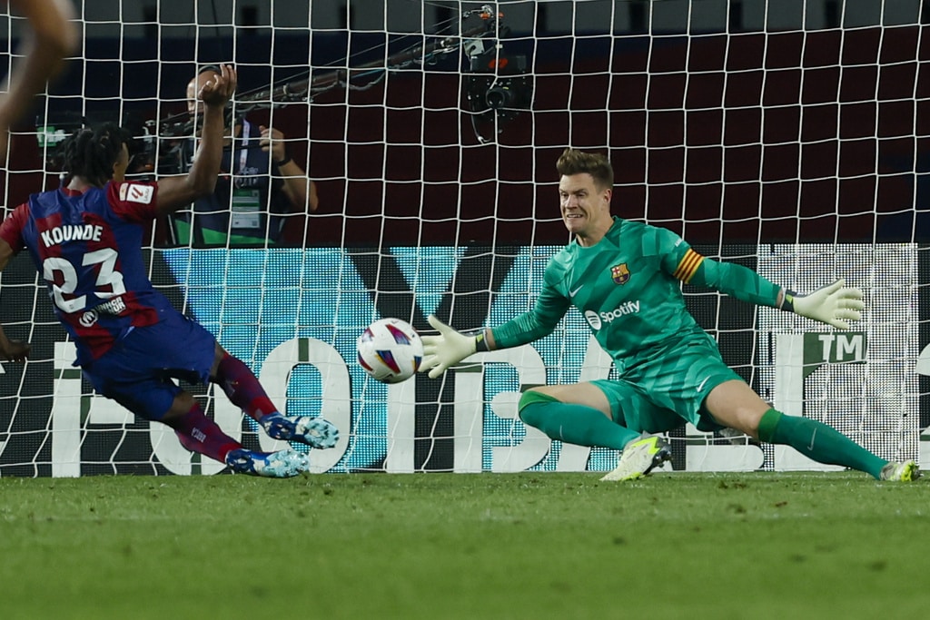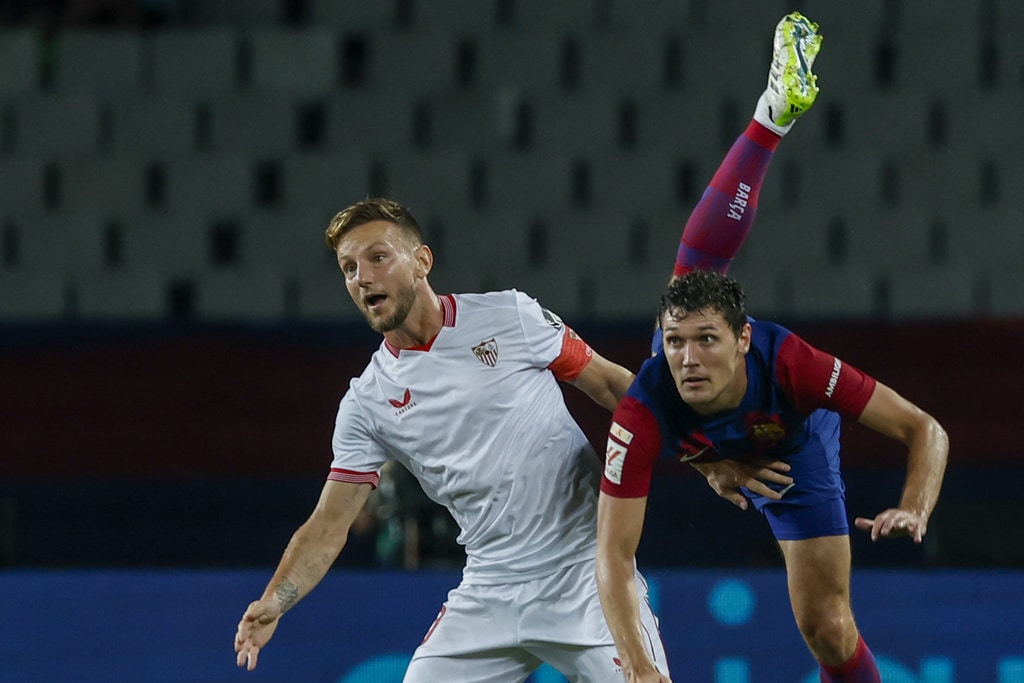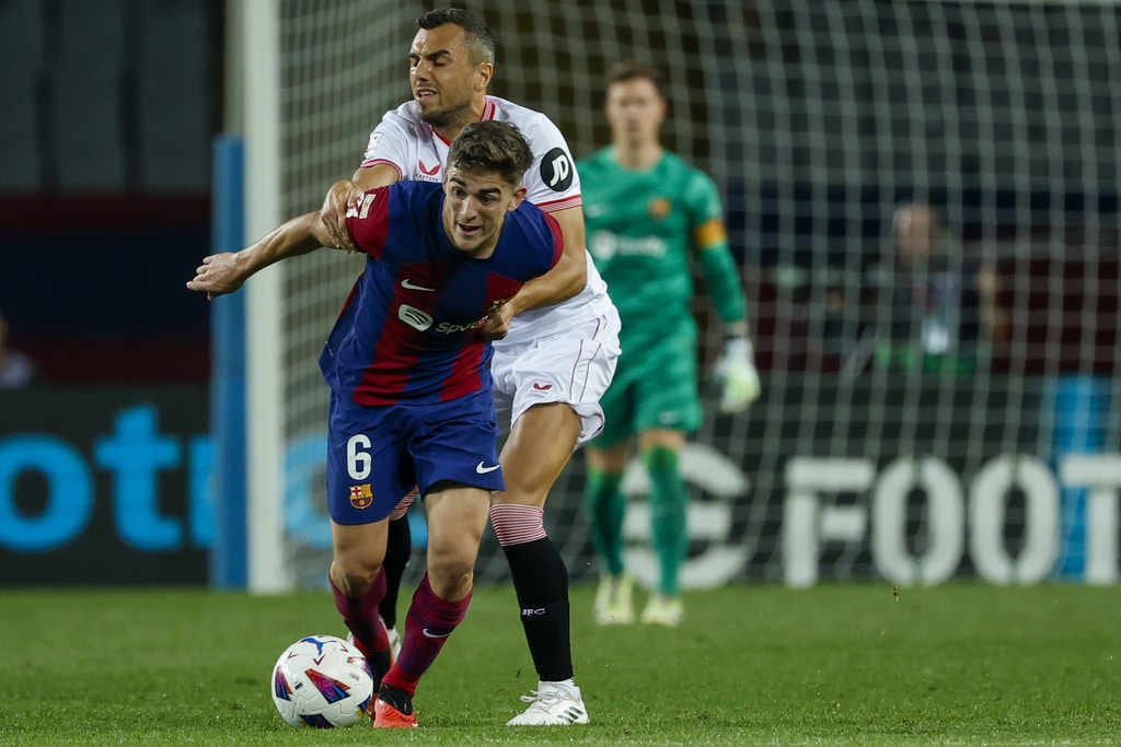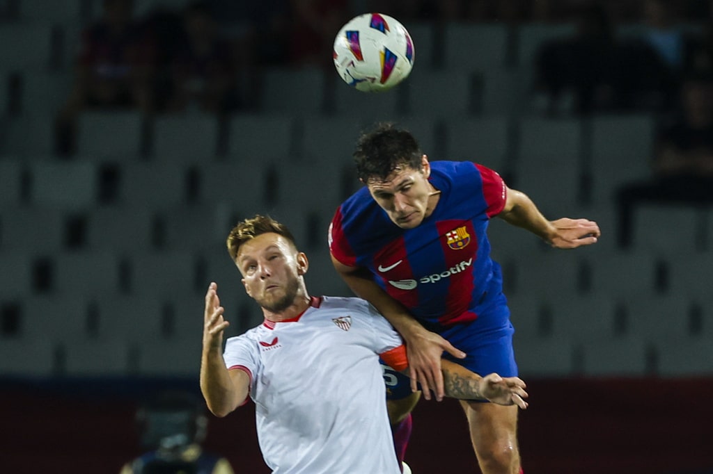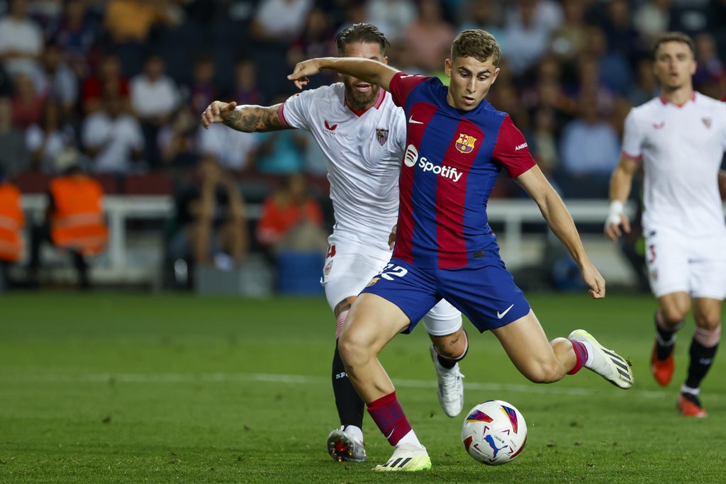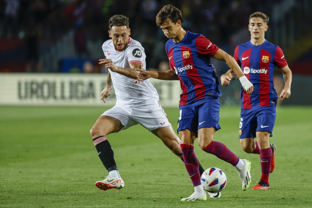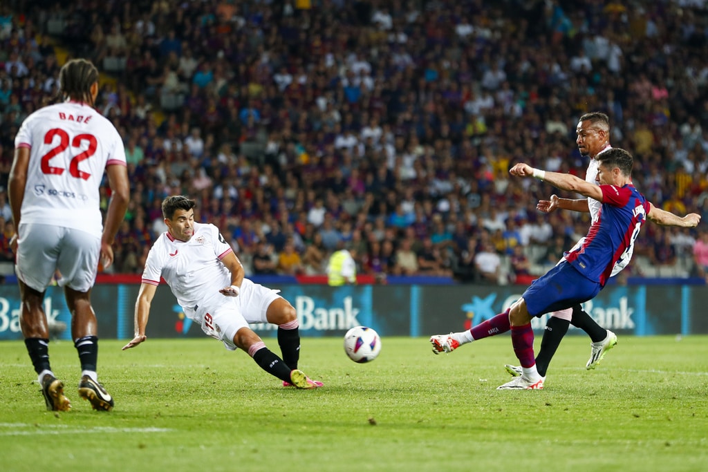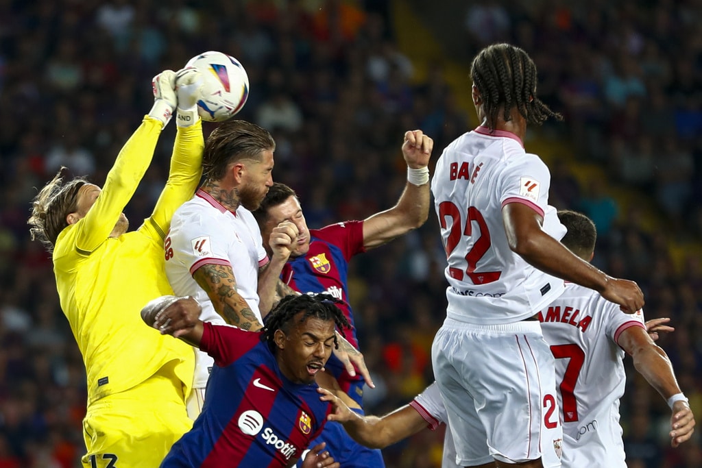 Sevilla’s goalkeeper Orjan Nyland, right, makes a save in front of Barcelona’s Jules Kounde during a Spanish La Liga soccer match between Barcelona and Sevilla, at the Olympic Stadium of Montjuic in Barcelona, Spain, Friday, Sept. 29, 2023. (AP Photo/Joan Monfort)Barcelona players celebrate after Sevilla’s Sergio Ramos scores an own goal past his goalkeeper during a Spanish La Liga soccer match between Barcelona and Sevilla, at the Olympic Stadium of Montjuic in Barcelona, Spain, Friday, Sept. 29, 2023. (AP Photo/Joan Monfort)Barcelona players celebrate after Sevilla’s Sergio Ramos scores an own goal past his goalkeeper during a Spanish La Liga soccer match between Barcelona and Sevilla, at the Olympic Stadium of Montjuic in Barcelona, Spain, Friday, Sept. 29, 2023. (AP Photo/Joan Monfort)Barcelona’s Joao Felix, right, duels for the ball with Sevilla’s Fernando during a Spanish La Liga soccer match between Barcelona and Sevilla, at the Olympic Stadium of Montjuic in Barcelona, Spain, Friday, Sept. 29, 2023. (AP Photo/Joan Monfort)Barcelona’s goalkeeper Inaki Pena, left, makes a save in front of Sevilla’s Sergio Ramos, second left, during a Spanish La Liga soccer match between Barcelona and Sevilla, at the Olympic Stadium of Montjuic in Barcelona, Spain, Friday, Sept. 29, 2023. (AP Photo/Joan Monfort)Barcelona’s Robert Lewandowski kicks the ball during a Spanish La Liga soccer match between Barcelona and Sevilla, at the Olympic Stadium of Montjuic in Barcelona, Spain, Friday, Sept. 29, 2023. (AP Photo/Joan Monfort)Barcelona’s Andreas Christensen, right, duels for the ball with Sevilla’s Ivan Rakitic during a Spanish La Liga soccer match between Barcelona and Sevilla, at the Olympic Stadium of Montjuic in Barcelona, Spain, Friday, Sept. 29, 2023. (AP Photo/Joan Monfort)Barcelona’s Gavi, center, duels for the ball with Sevilla’s Joan Jordan during a Spanish La Liga soccer match between Barcelona and Sevilla, at the Olympic Stadium of Montjuic in Barcelona, Spain, Friday, Sept. 29, 2023. (AP Photo/Joan Monfort)Barcelona’s Robert Lewandowski, center, controls the ball during a Spanish La Liga soccer match between Barcelona and Sevilla, at the Olympic Stadium of Montjuic in Barcelona, Spain, Friday, Sept. 29, 2023. (AP Photo/Joan Monfort)Barcelona’s Joao Felix, center, duels for the ball with Sevilla’s Lucas Ocampos during a Spanish La Liga soccer match between Barcelona and Sevilla, at the Olympic Stadium of Montjuic in Barcelona, Spain, Friday, Sept. 29, 2023. (AP Photo/Joan Monfort)Barcelona’s Fermin Lopez, front, duels for the ball with Sevilla’s Sergio Ramos during a Spanish La Liga soccer match between Barcelona and Sevilla, at the Olympic Stadium of Montjuic in Barcelona, Spain, Friday, Sept. 29, 2023. (AP Photo/Joan Monfort)Barcelona’s Gavi, front, duels for the ball with Sevilla’s Joan Jordan during a Spanish La Liga soccer match between Barcelona and Sevilla, at the Olympic Stadium of Montjuic in Barcelona, Spain, Friday, Sept. 29, 2023. (AP Photo/Joan Monfort)Barcelona’s Andreas Christensen, right, duels for the ball with Sevilla’s Ivan Rakitic during a Spanish La Liga soccer match between Barcelona and Sevilla, at the Olympic Stadium of Montjuic in Barcelona, Spain, Friday, Sept. 29, 2023. (AP Photo/Joan Monfort)