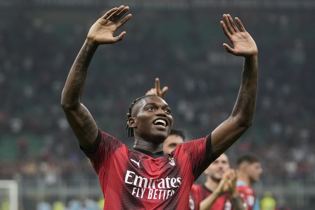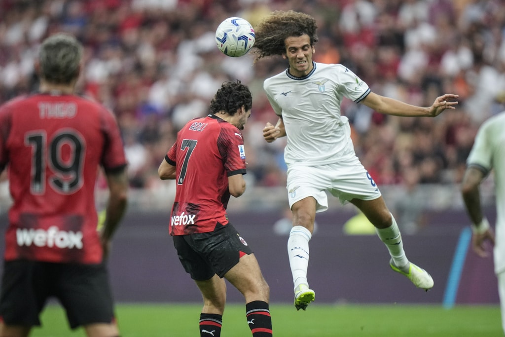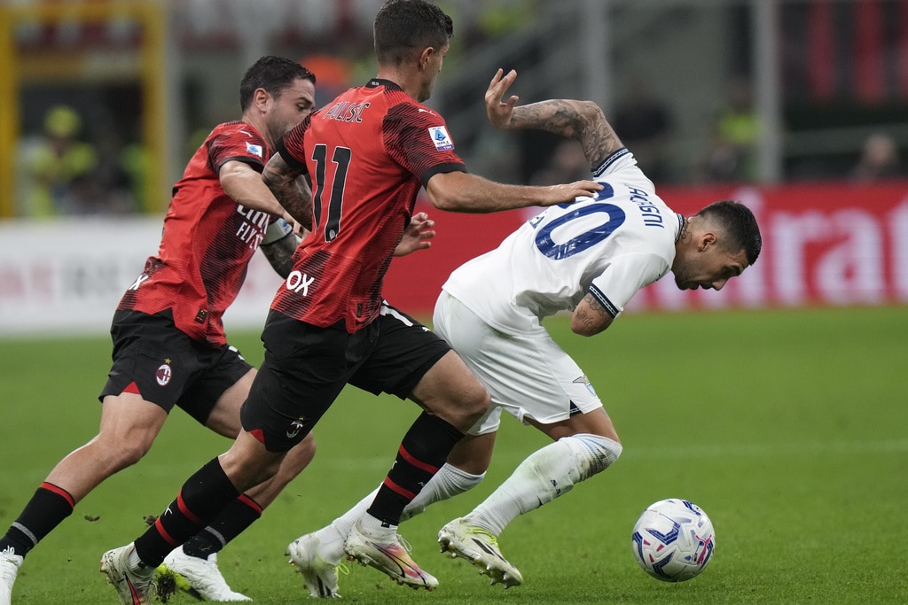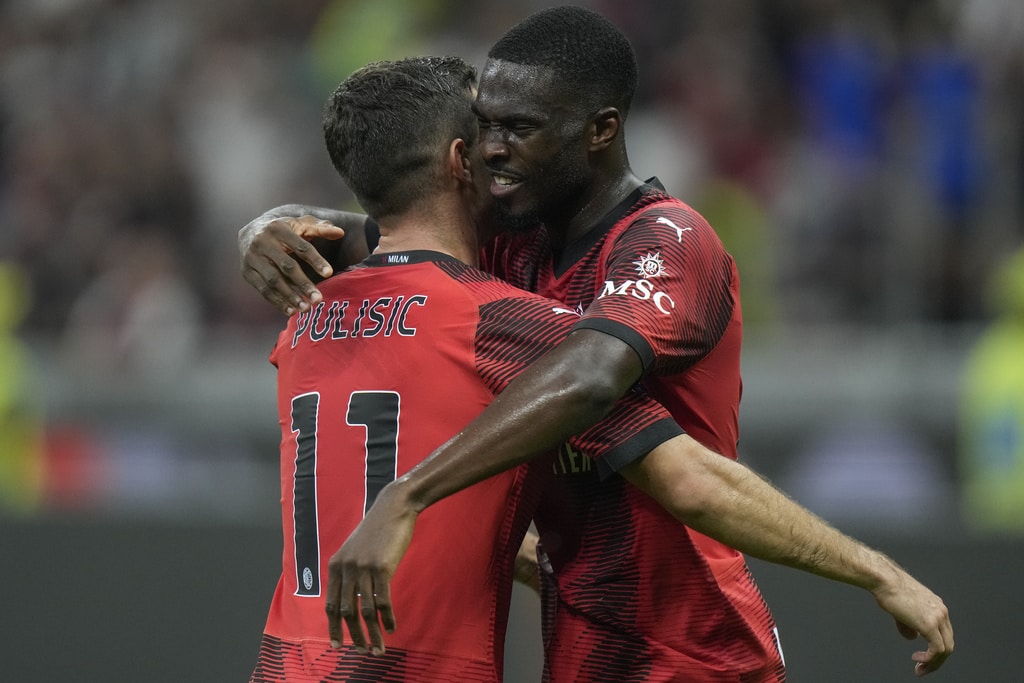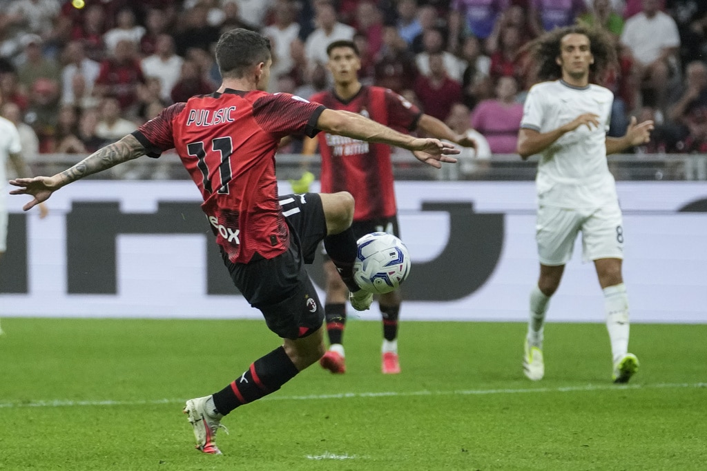 Lazio’s Matteo Guendouzi heads the ball past AC Milan’s Yacine Adli during a Serie A soccer match between AC Milan and Lazio, at the San Siro stadium in Milan, Italy, Saturday, Sept. 30, 2023. (AP Photo/Luca Bruno)Lazio’s Taty Castellanos and AC Milan’s Yacine Adli, foreground, vie for the ball during a Serie A soccer match between AC Milan and Lazio, at the San Siro stadium in Milan, Italy, Saturday, Sept. 30, 2023. (AP Photo/Luca Bruno)Lazio’s Felipe Anderson keeps his eyes on the ball as AC Milan’s Theo Hernandez stands beside him, during a Serie A soccer match between AC Milan and Lazio, at the San Siro stadium in Milan, Italy, Saturday, Sept. 30, 2023. (AP Photo/Luca Bruno)Lazio???s Adam Marusic, left, and AC Milan???s Rafael Leao vie for the ball during a Serie A soccer match between AC Milan and Lazio, at the San Siro stadium in Milan, Italy, Saturday, Sept. 30, 2023. (AP Photo/Luca Bruno)Lazio’s Mattia Zaccagni is challenged by AC Milan’s Christian Pulisic and Davide Calabria, left, during a Serie A soccer match between AC Milan and Lazio, at the San Siro stadium in Milan, Italy, Saturday, Sept. 30, 2023. (AP Photo/Luca Bruno)AC Milan’s Christian Pulisic scores his side’s opening goal during a Serie A soccer match between AC Milan and Lazio, at the San Siro stadium in Milan, Italy, Saturday, Sept. 30, 2023. (AP Photo/Luca Bruno)AC Milan’s Christian Pulisic celebrates scoring his side’s opening goal during a Serie A soccer match between AC Milan and Lazio, at the San Siro stadium in Milan, Italy, Saturday, Sept. 30, 2023. (AP Photo/Luca Bruno)AC Milan’s players celebrate after Christian Pulisic scored his side’s opening goal during a Serie A soccer match between AC Milan and Lazio, at the San Siro stadium in Milan, Italy, Saturday, Sept. 30, 2023. (AP Photo/Luca Bruno)AC Milan’s Christian Pulisic scores his side’s opening goal during a Serie A soccer match between AC Milan and Lazio, at the San Siro stadium in Milan, Italy, Saturday, Sept. 30, 2023. (Spada/LaPresse via AP)AC Milan’s Christian Pulisic celebrates with Yacine Adli after scoring his side’s opening goal during a Serie A soccer match between AC Milan and Lazio, at the San Siro stadium in Milan, Italy, Saturday, Sept. 30, 2023. (AP Photo/Luca Bruno)AC Milan’s Christian Pulisic, left, celebrates with Fikayo Tomori after scoring his side’s opening goal during a Serie A soccer match between AC Milan and Lazio, at the San Siro stadium in Milan, Italy, Saturday, Sept. 30, 2023. (AP Photo/Luca Bruno)AC Milan’s Noah Okafor, left, and Lazio’s Daichi Kamada vie for the ball during a Serie A soccer match between AC Milan and Lazio, at the San Siro stadium in Milan, Italy, Saturday, Sept. 30, 2023. (AP Photo/Luca Bruno)AC Milan’s Noah Okafor celebrates scoring his side’s second goal during a Serie A soccer match between AC Milan and Lazio, at the San Siro stadium in Milan, Italy, Saturday, Sept. 30, 2023. (AP Photo/Luca Bruno)AC Milan’s Samuel Chukwueze goes for the ball during a Serie A soccer match between AC Milan and Lazio, at the San Siro stadium in Milan, Italy, Saturday, Sept. 30, 2023. (AP Photo/Luca Bruno)AC Milan’s Rafael Leao celebrates with fans his side’s 2-0 win at the end of the Serie A soccer match between AC Milan and Lazio, at the San Siro stadium in Milan, Italy, Saturday, Sept. 30, 2023. (AP Photo/Luca Bruno)