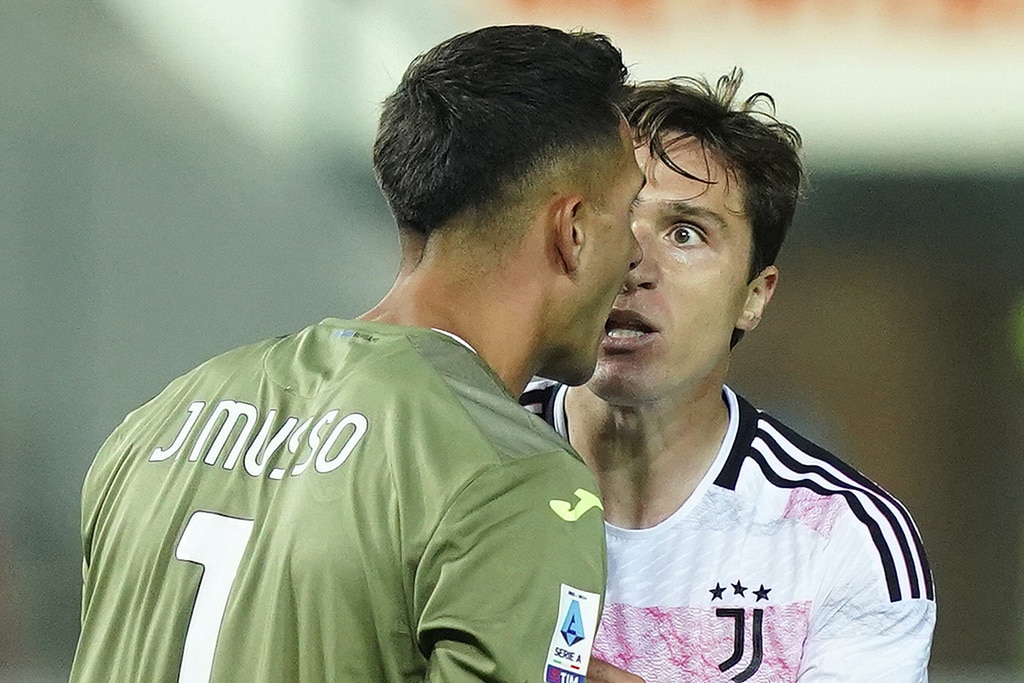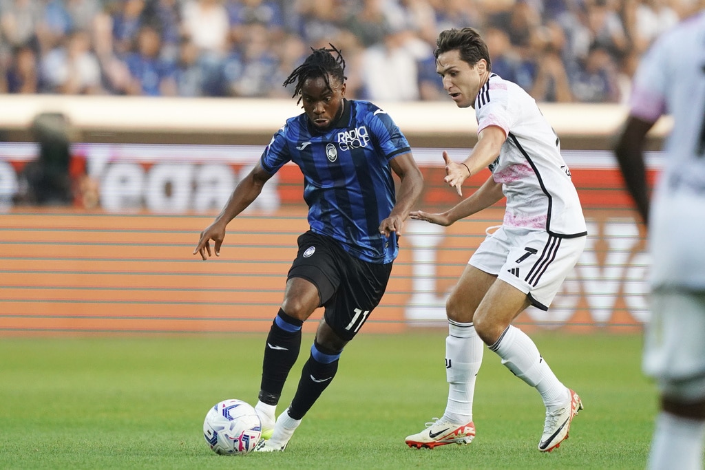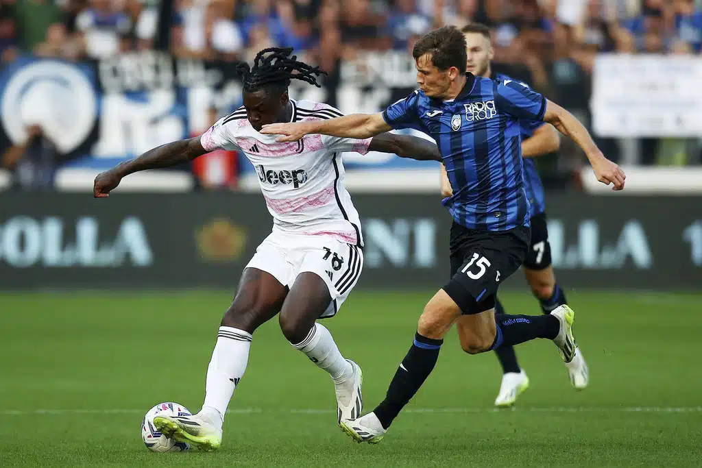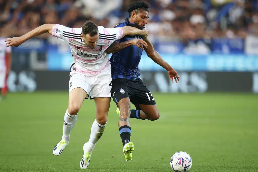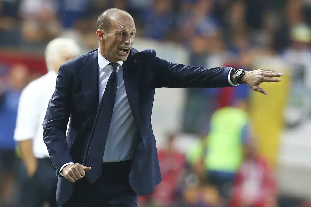 Juventus coach Massimiliano Allgri sits on the bench prior to the Serie A soccer match between Atalanta and Juventus at the Gewiss stadium in Bergamo, Italy, Sunday, Oct. 1, 2023. (Spada/LaPresse via AP)Juventus’ coach Massimiliano Allegri gives indications to his players during the Serie A soccer match between Atalanta and Juventus at the Gewiss stadium in Bergamo, Italy, Sunday, Oct. 1, 2023. (Spada/LaPresse via AP)Juventus’ Moise Kean, left, is challenged by Atalanta’s Marten de Roon during the Serie A soccer match between Atalanta and Juventus at the Gewiss stadium in Bergamo, Italy, Sunday, Oct. 1, 2023. (Spada/LaPresse via AP)Atalanta’s Ademola Lookman, left, and Juventus’ Federico Chiesa vie for the ball during the Serie A soccer match between Atalanta and Juventus at the Gewiss stadium in Bergamo, Italy, Sunday, Oct. 1, 2023. (Spada/LaPresse via AP)Juventus’ Federico Gatti, left, and Atalanta’s Jose Dos Santos Ederson vie for the ball during the Serie A soccer match between Atalanta and Juventus at the Gewiss stadium in Bergamo, Italy, Sunday, Oct. 1, 2023. (Spada/LaPresse via AP)Juventus’ Moise Kean and Atalanta’s Giorgio Scalvini, right, vie for the ball during the Serie A soccer match between Atalanta and Juventus at the Gewiss stadium in Bergamo, Italy, Sunday, Oct. 1, 2023. (Spada/LaPresse via AP)Atalanta’s Charles De Ketelaere, left, vies for the ball with Juventus’ Danilo during a Serie A soccer match between Atalanta and Juventus at the Gewiss stadium in Bergamo, Italy, Sunday, Oct. 1, 2023. (Spada/LaPresse via AP)Juventus’ Federico Chiesa, right, prepares to kick the ball ahead of Atalanta’s Giorgio Scalvini during the Serie A soccer match between Atalanta and Juventus at the Gewiss stadium in Bergamo, Italy, Sunday, Oct. 1, 2023. (Spada/LaPresse via AP)Atalanta’s Giorgio Scalvini heads the ball during the Serie A soccer match between Atalanta and Juventus at the Gewiss stadium in Bergamo, Italy, Sunday, Oct. 1, 2023. (Spada/LaPresse via AP)Juventus’ Federico Chiesa, right, challenges Atalanta’s goalkeeper Juan Musso during the Serie A soccer match between Atalanta and Juventus at the Gewiss stadium in Bergamo, Italy, Sunday, Oct. 1, 2023. (Spada/LaPresse via AP)