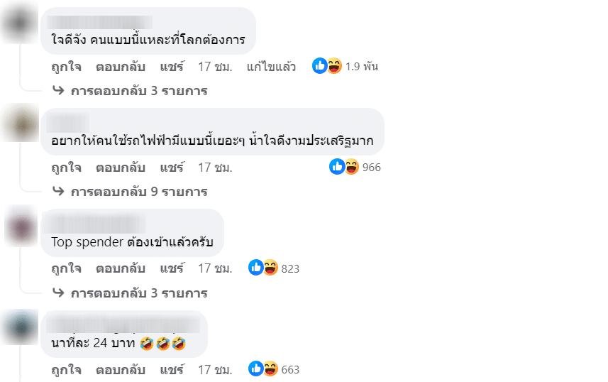 หลังจากโพสต์ที่แสดงถึงความมีน้ำใจถูกเผยแพร่ ชาวเน็ตต่างเข้ามากดไลก์มากกว่าหมื่นคน พร้อมกดแชร์ไปอีกหลักพัน ส่วนคอมเมนต์นั้นไม่ต้องพูดถึง เข้ามาแสดงความคิดเห็นกันอย่างถล่มทลาย อาทิ “ใจดีจัง คนแบบนี้แหละที่โลกต้องการ”, “อยากให้คนใช้รถไฟฟ้ามีแบบนี้เยอะ ๆ น้ำใจดีงามประเสริฐมาก”