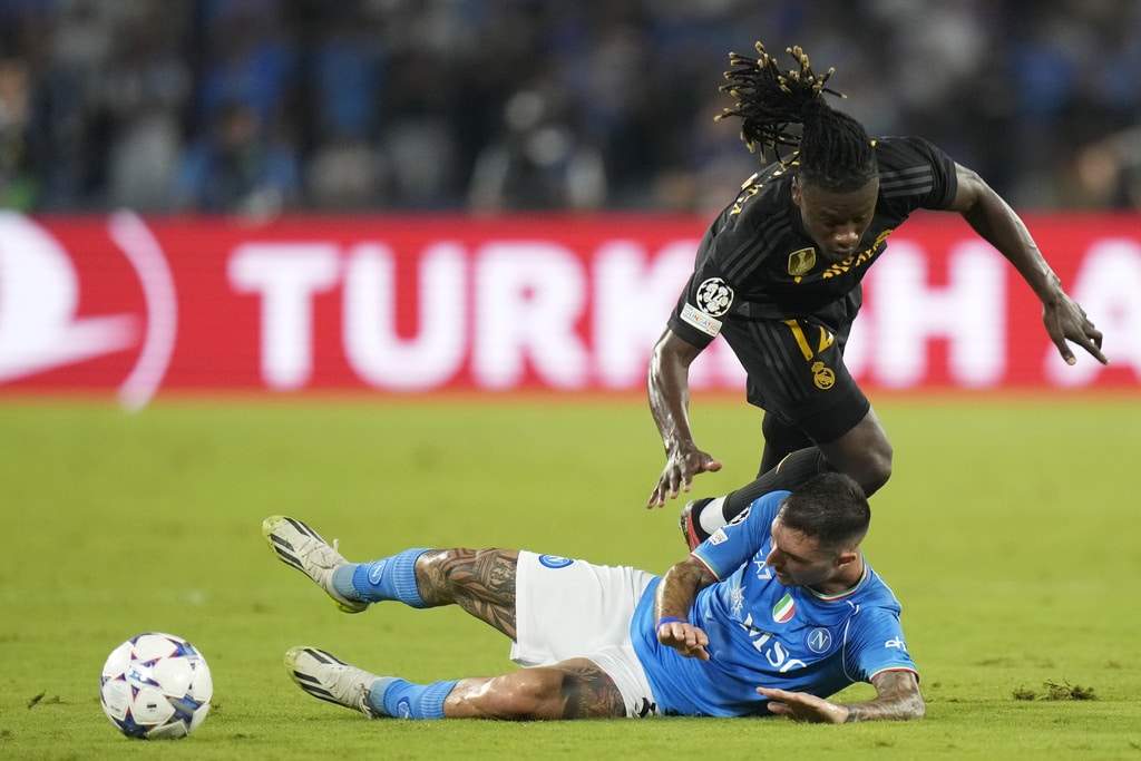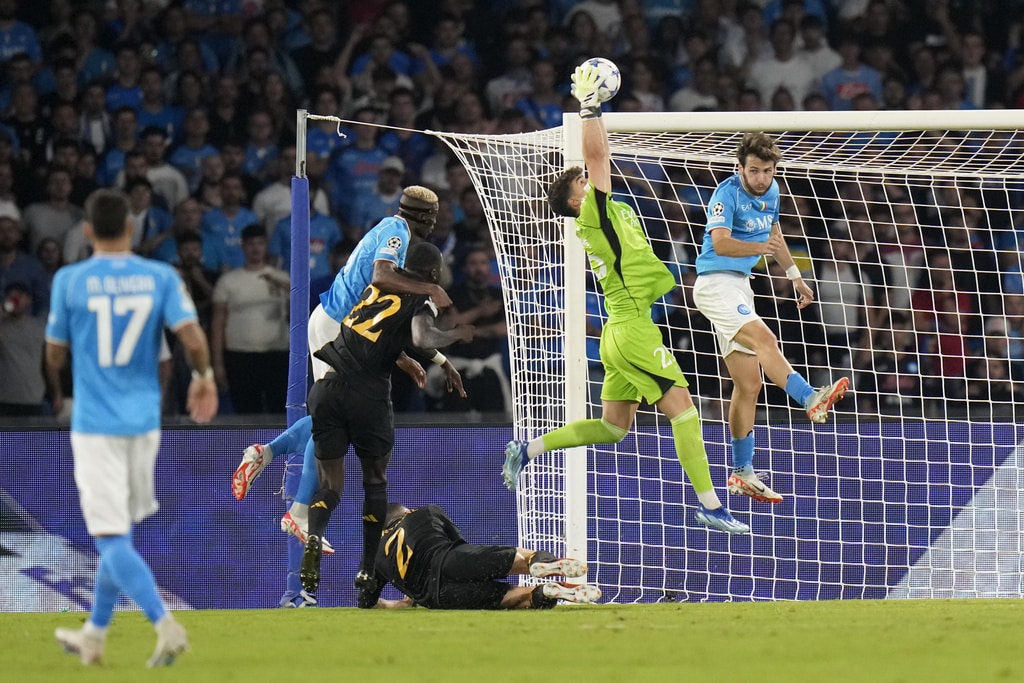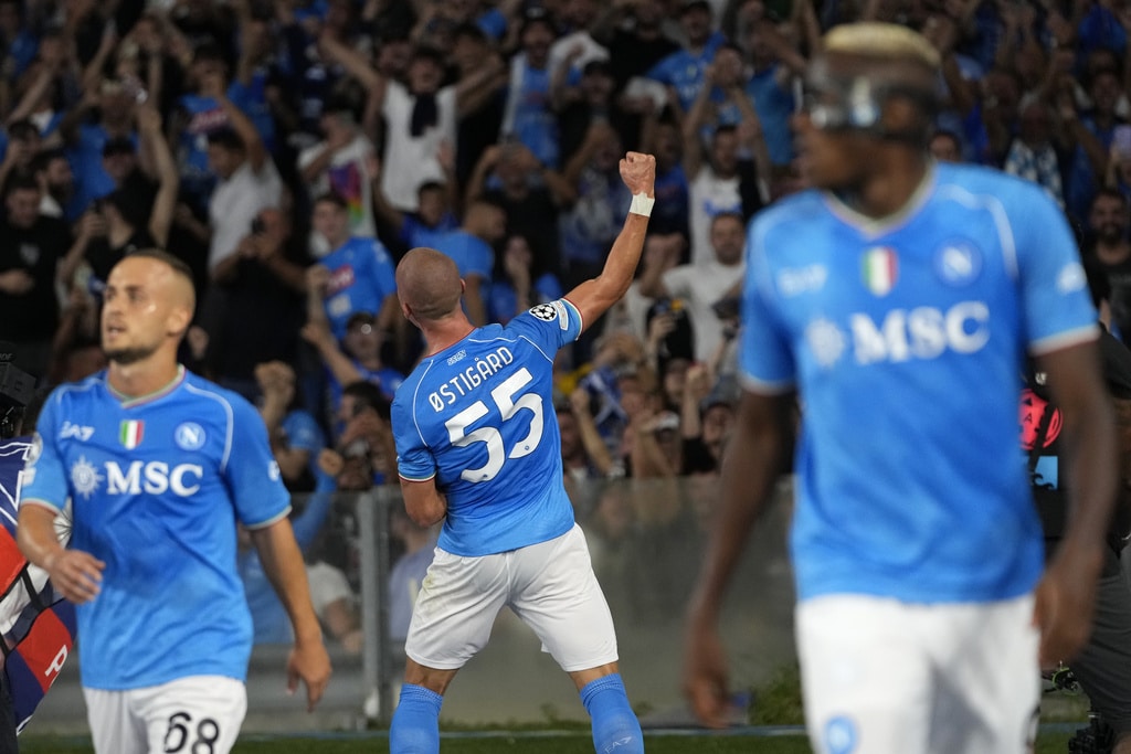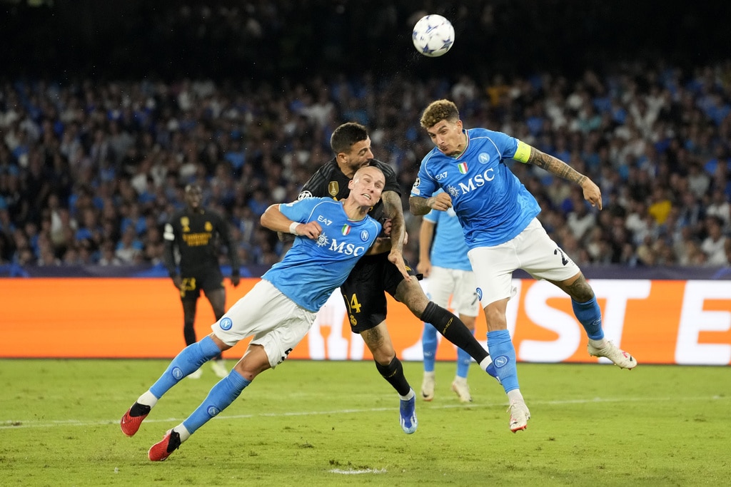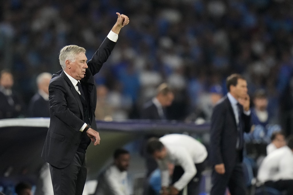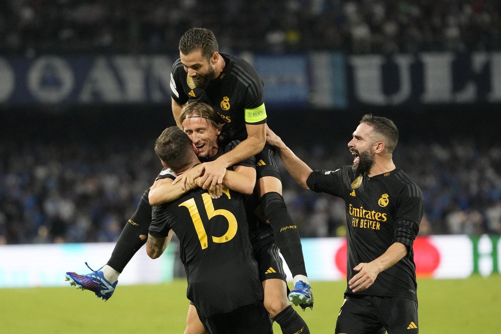 Napoli’s Elif Elmas, right, challenges Real Madrid’s Jude Bellingham during the Champions League group C soccer match between Napoli and Real Madrid at the Diego Armando Maradona stadium in Naples, Italy, Tuesday, Oct. 3, 2023. (AP Photo/Alessandra Tarantino)Napoli’s Giovanni Di Lorenzo, right, and Napoli’s Leo Ostigard, left, challenge Real Madrid’s Joselu, back, during the Champions League group C soccer match between Napoli and Real Madrid at the Diego Armando Maradona stadium in Naples, Italy, Tuesday, Oct. 3, 2023. (AP Photo/Alessandra Tarantino)Real Madrid’s head coach Carlo Ancelotti gestures during the Champions League group C soccer match between Napoli and Real Madrid at the Diego Armando Maradona stadium in Naples, Italy, Tuesday, Oct. 3, 2023. (AP Photo/Alessandra Tarantino)Real Madrid’s goalkeeper Kepa Arrizabalaga, 2nd right, catches the ball during the Champions League group C soccer match between Napoli and Real Madrid at the Diego Armando Maradona stadium in Naples, Italy, Tuesday, Oct. 3, 2023. (AP Photo/Alessandra Tarantino)Napoli’s Piotr Zielinski, center, celebrates after scoring his sides second goal during the Champions League group C soccer match between Napoli and Real Madrid at the Diego Armando Maradona stadium in Naples, Italy, Tuesday, Oct. 3, 2023. (AP Photo/Alessandra Tarantino)Real Madrid’s Jude Bellingham, left, celebrates after scoring his sides second goal during the Champions League group C soccer match between Napoli and Real Madrid at the Diego Armando Maradona stadium in Naples, Italy, Tuesday, Oct. 3, 2023. (Alessandro Garofalo/LaPresse via AP)Real Madrid’s Jude Bellingham, left, celebrates after scoring his sides second goal during the Champions League group C soccer match between Napoli and Real Madrid at the Diego Armando Maradona stadium in Naples, Italy, Tuesday, Oct. 3, 2023. (Alessandro Garofalo/LaPresse via AP)Napoli’s Victor Osimhen, center, reacts after missing a chance to score during the Champions League group C soccer match between Napoli and Real Madrid at the Diego Armando Maradona stadium in Naples, Italy, Tuesday, Oct. 3, 2023. (AP Photo/Alessandra Tarantino)Napoli’s Leo Ostigard, right, celebrates with teammates after scoring his sides first goal during the Champions League group C soccer match between Napoli and Real Madrid at the Diego Armando Maradona stadium in Naples, Italy, Tuesday, Oct. 3, 2023. (AP Photo/Alessandra Tarantino)Napoli’s Victor Osimhen reacts after missing a chance to score during the Champions League group C soccer match between Napoli and Real Madrid at the Diego Armando Maradona stadium in Naples, Italy, Tuesday, Oct. 3, 2023. (AP Photo/Alessandra Tarantino)Napoli’s Matteo Politano, down, challenges Real Madrid’s Eduardo Camavinga during the Champions League group C soccer match between Napoli and Real Madrid at the Diego Armando Maradona stadium in Naples, Italy, Tuesday, Oct. 3, 2023. (AP Photo/Alessandra Tarantino)Real Madrid’s Jude Bellingham, left, celebrates with teammates after scoring his sides second goal during the Champions League group C soccer match between Napoli and Real Madrid at the Diego Armando Maradona stadium in Naples, Italy, Tuesday, Oct. 3, 2023. (AP Photo/Alessandra Tarantino)Napoli’s Leo Ostigard celebrates after scoring his sides first goal during the Champions League group C soccer match between Napoli and Real Madrid at the Diego Armando Maradona stadium in Naples, Italy, Tuesday, Oct. 3, 2023. (AP Photo/Alessandra Tarantino)Napoli’s Leo Ostigard, 2nd right, scores with a header his sides first goal during the Champions League group C soccer match between Napoli and Real Madrid at the Diego Armando Maradona stadium in Naples, Italy, Tuesday, Oct. 3, 2023. (AP Photo/Alessandra Tarantino)