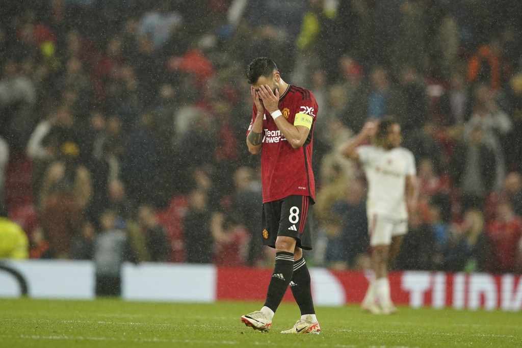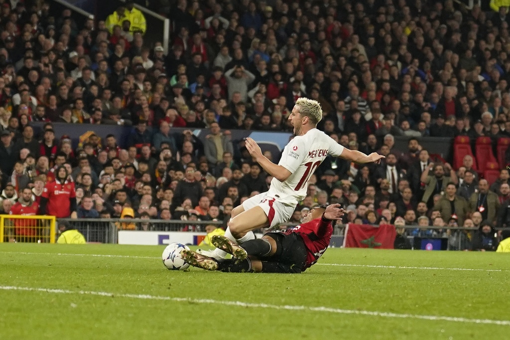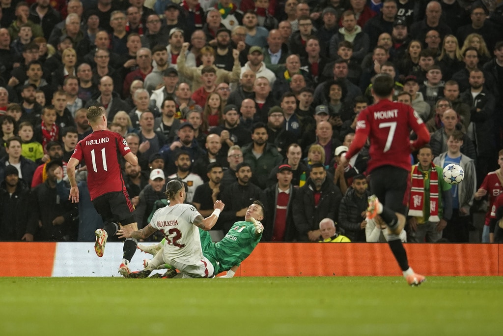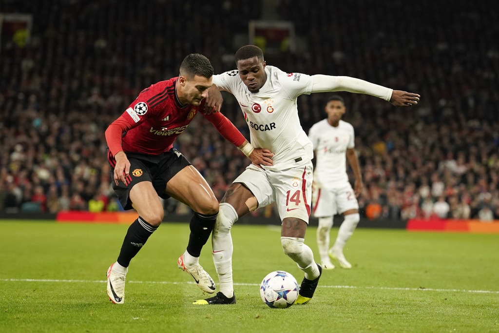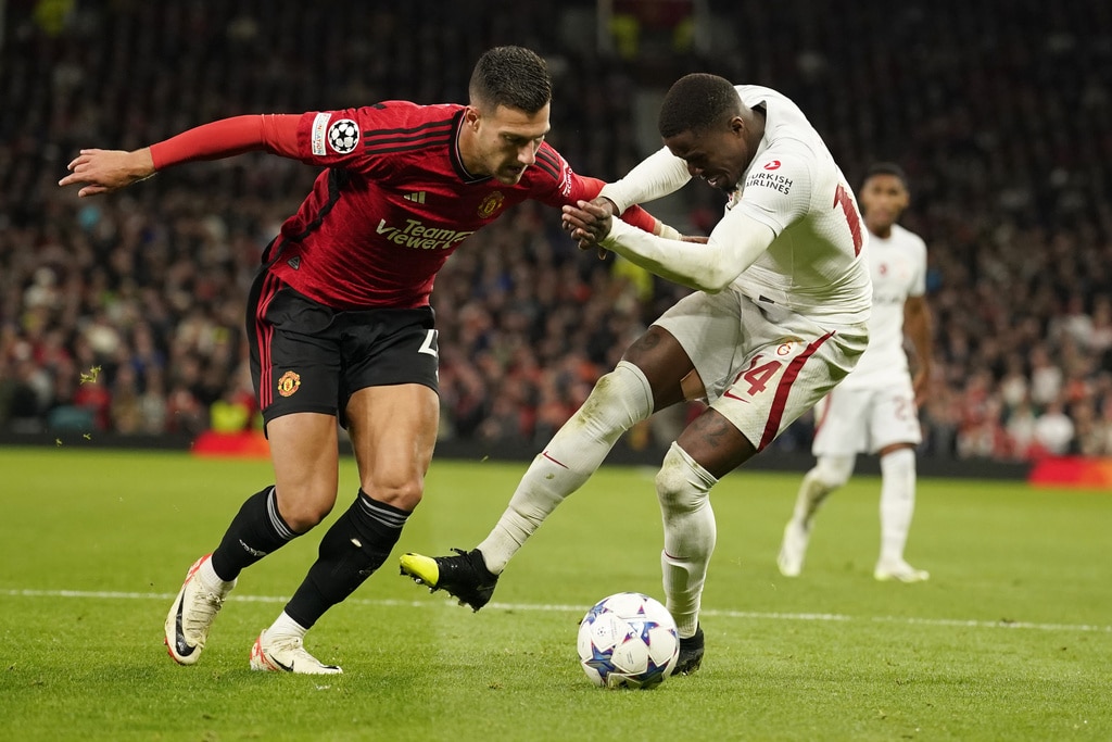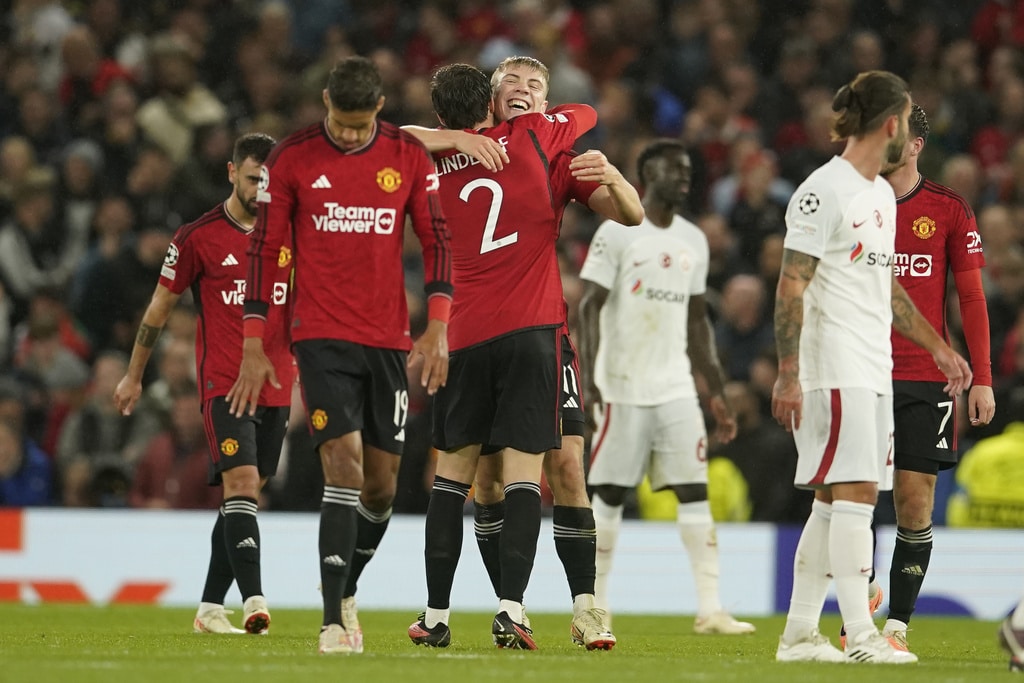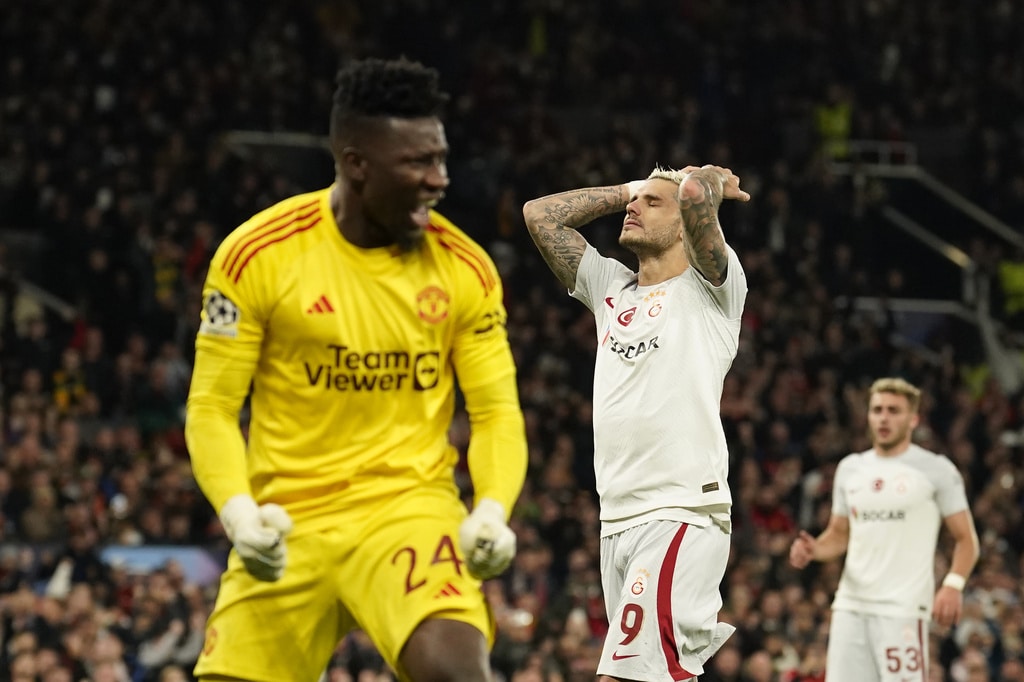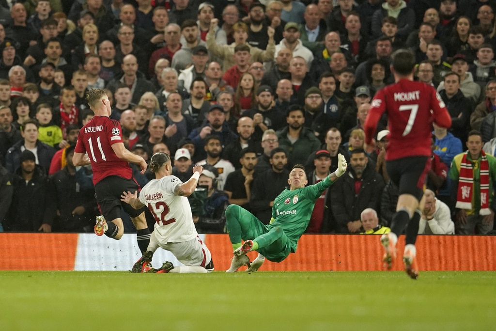 Manchester United’s Rasmus Hojlund celebrates after scoring his side’s opening goal during the Champions League group A soccer match between Manchester United and Galatasaray at the Old Trafford stadium in Manchester, England, Tuesday, Oct. 3, 2023. (AP Photo/Dave Thompson)Manchester United’s Bruno Fernandes, left, challenges for the ball with Galatasaray’s Wilfried Zaha during the Champions League group A soccer match between Manchester United and Galatasaray at the Old Trafford stadium in Manchester, England, Tuesday, Oct. 3, 2023. (AP Photo/Dave Thompson)Manchester United’s Diogo Dalot, left, challenges for the ball with Galatasaray’s Wilfried Zaha during the Champions League group A soccer match between Manchester United and Galatasaray at the Old Trafford stadium in Manchester, England, Tuesday, Oct. 3, 2023. (AP Photo/Dave Thompson)Manchester United’s Diogo Dalot, left, challenges for the ball with Galatasaray’s Wilfried Zaha during the Champions League group A soccer match between Manchester United and Galatasaray at the Old Trafford stadium in Manchester, England, Tuesday, Oct. 3, 2023. (AP Photo/Dave Thompson)Manchester United’s Rasmus Hojlund, left, scores his side’s second goal during the Champions League group A soccer match between Manchester United and Galatasaray at the Old Trafford stadium in Manchester, England, Tuesday, Oct. 3, 2023. (AP Photo/Dave Thompson)Manchester United’s Rasmus Hojlund, left, scores his side’s second goal during the Champions League group A soccer match between Manchester United and Galatasaray at the Old Trafford stadium in Manchester, England, Tuesday, Oct. 3, 2023. (AP Photo/Dave Thompson)Manchester United’s Rasmus Hojlund, fourth from left, celebrates with his teammates after scoring his side’s second goal during the Champions League group A soccer match between Manchester United and Galatasaray at the Old Trafford stadium in Manchester, England, Tuesday, Oct. 3, 2023. (AP Photo/Dave Thompson)Galatasaray’s Mauro Icardi, centre, reacts after missing a penalty scoring chance during the Champions League group A soccer match between Manchester United and Galatasaray at the Old Trafford stadium in Manchester, England, Tuesday, Oct. 3, 2023. (AP Photo/Dave Thompson)Manchester United’s goalkeeper Andre Onana, centre, celebrates with his teammate Sofyan Amrabat, right, after Galatasaray’s Mauro Icardi missed a penalty scoring chance during the Champions League group A soccer match between Manchester United and Galatasaray at the Old Trafford stadium in Manchester, England, Tuesday, Oct. 3, 2023. (AP Photo/Dave Thompson)Galatasaray’s Mauro Icardi, second from right, scores his side’s third goal during the Champions League group A soccer match between Manchester United and Galatasaray at the Old Trafford stadium in Manchester, England, Tuesday, Oct. 3, 2023. (AP Photo/Dave Thompson)Galatasaray’s Dries Mertens, top, is fouled by Manchester United’s Casemiro to give away a penalty during the Champions League group A soccer match between Manchester United and Galatasaray at the Old Trafford stadium in Manchester, England, Tuesday, Oct. 3, 2023. (AP Photo/Dave Thompson)Manchester United’s Bruno Fernandes reacts during the Champions League group A soccer match between Manchester United and Galatasaray at the Old Trafford stadium in Manchester, England, Tuesday, Oct. 3, 2023. (AP Photo/Dave Thompson)Manchester United’s goalkeeper Andre Onana, left, reacts with his teammate Rasmus Hojlund during the Champions League group A soccer match between Manchester United and Galatasaray at the Old Trafford stadium in Manchester, England, Tuesday, Oct. 3, 2023. (AP Photo/Dave Thompson)Manchester United’s goalkeeper Andre Onana reacts with his teammate Rasmus Hojlund during the Champions League group A soccer match between Manchester United and Galatasaray at the Old Trafford stadium in Manchester, England, Tuesday, Oct. 3, 2023. (AP Photo/Dave Thompson)
