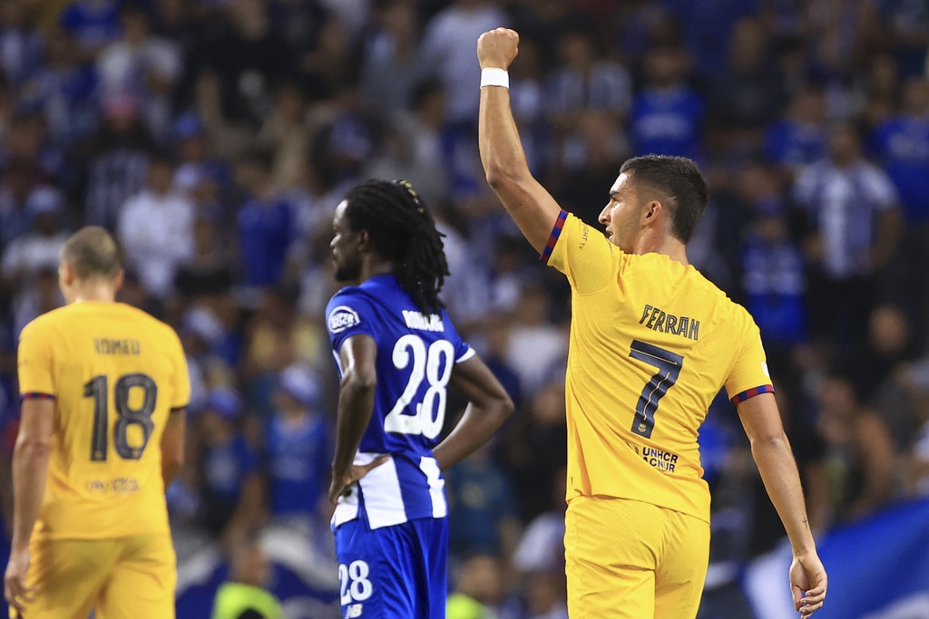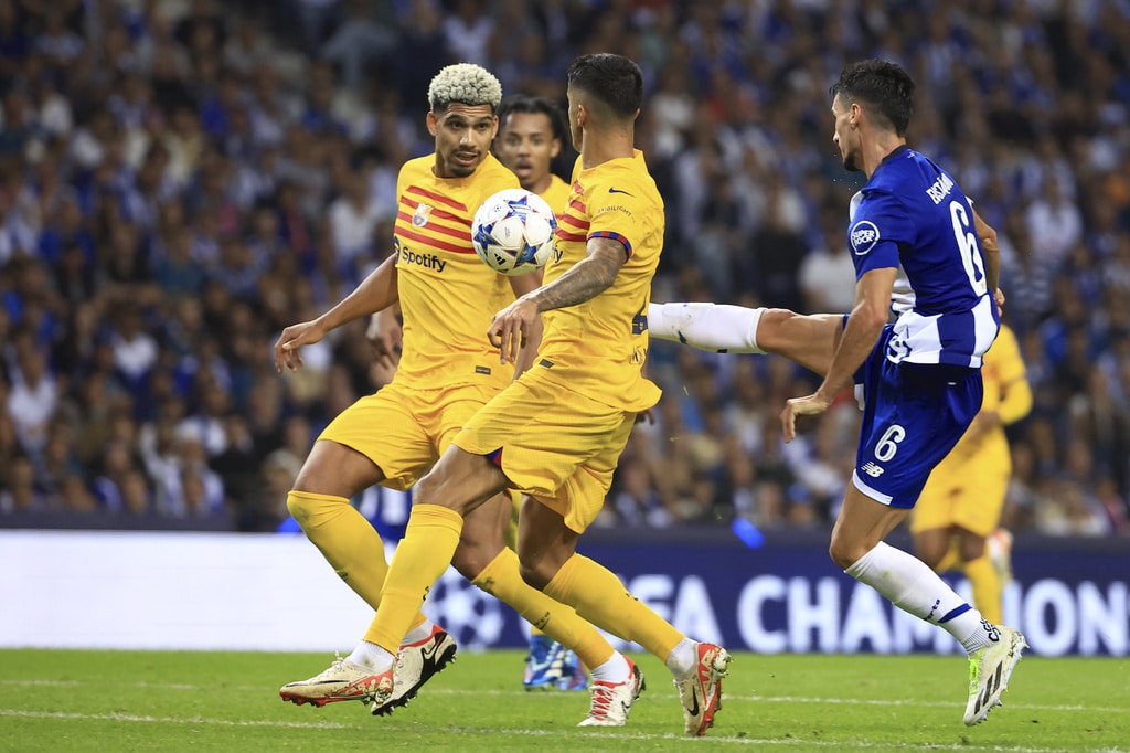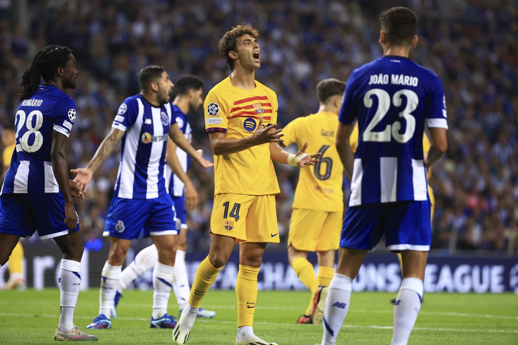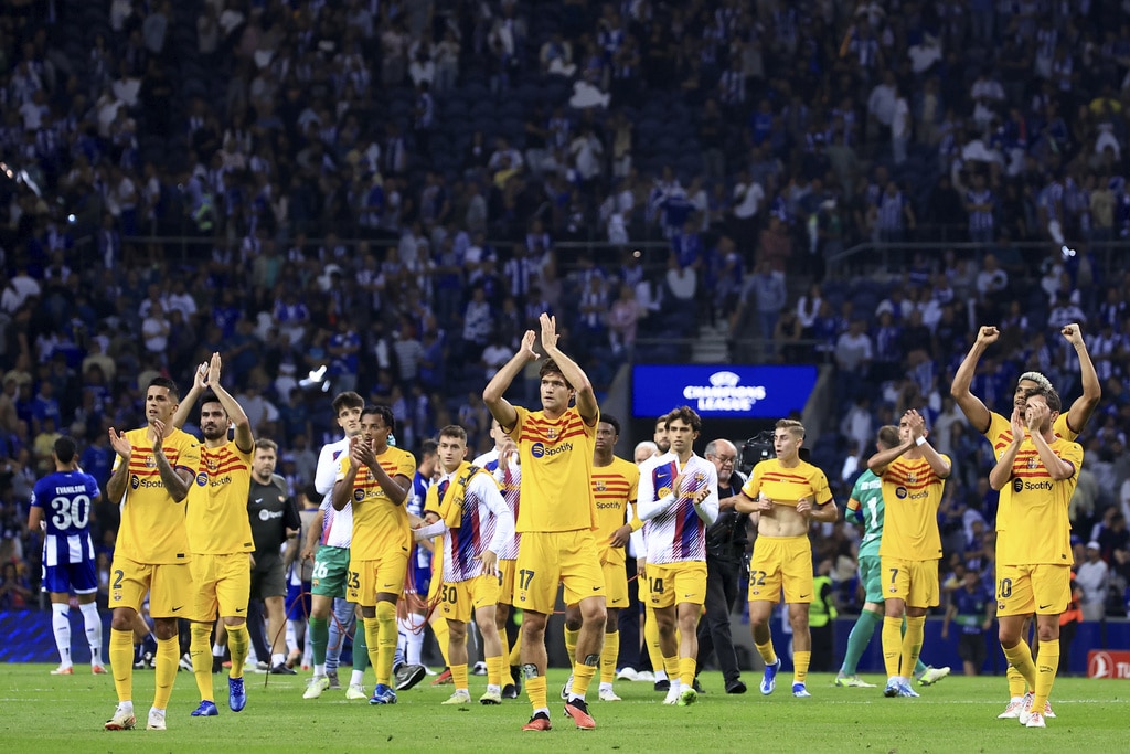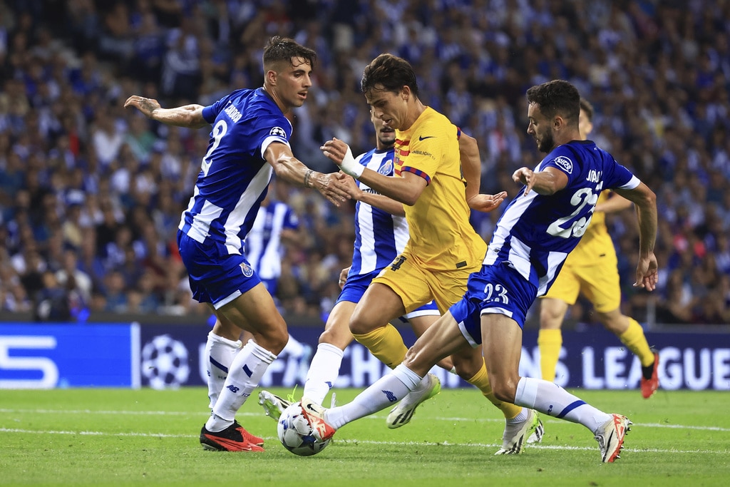 Barcelona’s Joao Felix tries to get past Porto’s Fabio Cardoso, left, and Joao Mario during a Champions League group H soccer match between FC Porto and Barcelona at the Dragao stadium in Porto, Portugal, Wednesday, Oct. 4, 2023. (AP Photo/Luis Vieira)Barcelona players applaud the fans at the end of a Champions League group H soccer match between FC Porto and Barcelona at the Dragao stadium in Porto, Portugal, Wednesday, Oct. 4, 2023. Barcelona won 1-0. (AP Photo/Luis Vieira)Barcelona’s Jules Kounde jumps for the ball with Porto’s Evanilson, right, during a Champions League group H soccer match between FC Porto and Barcelona at the Dragao stadium in Porto, Portugal, Wednesday, Oct. 4, 2023. (AP Photo/Luis Vieira)Barcelona’s Gavi celebrates with Joao Cancelo at the end of a Champions League group H soccer match between FC Porto and Barcelona at the Dragao stadium in Porto, Portugal, Wednesday, Oct. 4, 2023. Barcelona won 1-0. (AP Photo/Luis Vieira)Barcelona players applaud the fans at the end of a Champions League group H soccer match between FC Porto and Barcelona at the Dragao stadium in Porto, Portugal, Wednesday, Oct. 4, 2023. Barcelona won 1-0. (AP Photo/Luis Vieira)Barcelona’s Ferran Torres gestures after scoring the opening goal during a Champions League group H soccer match between FC Porto and Barcelona at the Dragao stadium in Porto, Portugal, Wednesday, Oct. 4, 2023. (AP Photo/Luis Vieira)Barcelona’s Ilkay Gundogan, left, fights for the ball with Porto’s Evanilson during a Champions League group H soccer match between FC Porto and Barcelona at the Dragao stadium in Porto, Portugal, Wednesday, Oct. 4, 2023. (AP Photo/Luis Vieira)Porto’s Stephen Eustaquio vies for the ball with Barcelona’s Ronald Araujo, left, and Joao Cancelo during a Champions League group H soccer match between FC Porto and Barcelona at the Dragao stadium in Porto, Portugal, Wednesday, Oct. 4, 2023. An alleged penalty was overruled by the VAR. (AP Photo/Luis Vieira)Porto’s Evanilson vies for the ball with Barcelona’s Jules Kounde, left, during a Champions League group H soccer match between FC Porto and Barcelona at the Dragao stadium in Porto, Portugal, Wednesday, Oct. 4, 2023. (AP Photo/Luis Vieira)Porto’s Stephen Eustaquio fights for the ball with Barcelona’s Lamine Yamal, right, during a Champions League group H soccer match between FC Porto and Barcelona at the Dragao stadium in Porto, Portugal, Wednesday, Oct. 4, 2023. (AP Photo/Luis Vieira)Barcelona’s Joao Cancelo fights for the ball with Porto’s Galeno, right, during a Champions League group H soccer match between FC Porto and Barcelona at the Dragao stadium in Porto, Portugal, Wednesday, Oct. 4, 2023. (AP Photo/Luis Vieira)Barcelona’s Joao Cancelo fights for the ball with Porto’s Galeno, right, during a Champions League group H soccer match between FC Porto and Barcelona at the Dragao stadium in Porto, Portugal, Wednesday, Oct. 4, 2023. (AP Photo/Luis Vieira)Barcelona’s Ferran Torres celebrates after scoring the opening goal taking advantage of a mistake by Porto’s Romario Baro, center, during a Champions League group H soccer match between FC Porto and Barcelona at the Dragao stadium in Porto, Portugal, Wednesday, Oct. 4, 2023. (AP Photo/Luis Vieira)Barcelona’s Ferran Torres celebrates after scoring the opening goal during a Champions League group H soccer match between FC Porto and Barcelona at the Dragao stadium in Porto, Portugal, Wednesday, Oct. 4, 2023. (AP Photo/Luis Vieira)Porto and Barcelona players, in yellow, jump for the ball during a Champions League group H soccer match between FC Porto and Barcelona at the Dragao stadium in Porto, Portugal, Wednesday, Oct. 4, 2023. (AP Photo/Luis Vieira)Porto’s Alan Varela tries to tackle Barcelona’s Ilkay Gundogan during a Champions League group H soccer match between FC Porto and Barcelona at the Dragao stadium in Porto, Portugal, Wednesday, Oct. 4, 2023. (AP Photo/Luis Vieira)