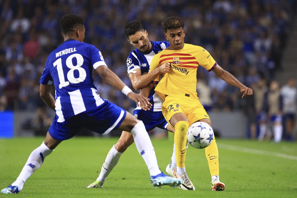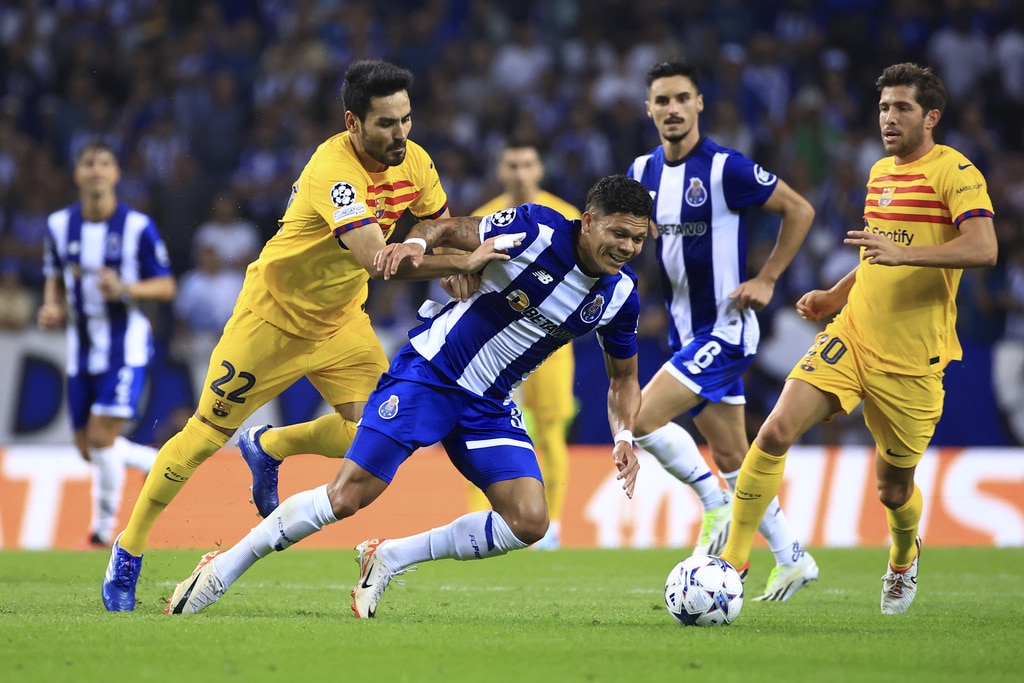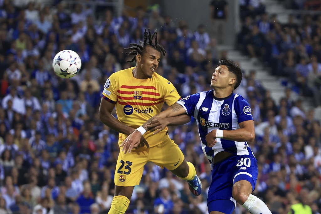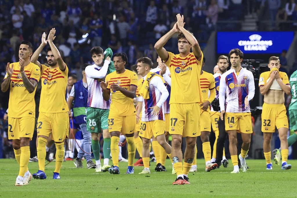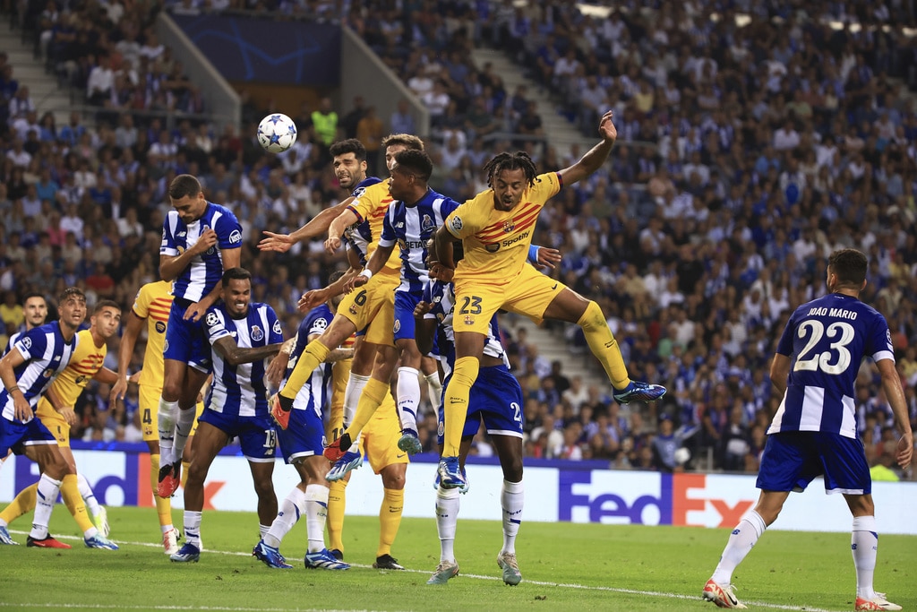 Barcelona’s Joao Felix tries to get past Porto’s Fabio Cardoso, left, and Joao Mario during a Champions League group H soccer match between FC Porto and Barcelona at the Dragao stadium in Porto, Portugal, Wednesday, Oct. 4, 2023. (AP Photo/Luis Vieira)Barcelona players applaud the fans at the end of a Champions League group H soccer match between FC Porto and Barcelona at the Dragao stadium in Porto, Portugal, Wednesday, Oct. 4, 2023. Barcelona won 1-0. (AP Photo/Luis Vieira)Barcelona’s Jules Kounde jumps for the ball with Porto’s Evanilson, right, during a Champions League group H soccer match between FC Porto and Barcelona at the Dragao stadium in Porto, Portugal, Wednesday, Oct. 4, 2023. (AP Photo/Luis Vieira)Barcelona’s Gavi celebrates with Joao Cancelo at the end of a Champions League group H soccer match between FC Porto and Barcelona at the Dragao stadium in Porto, Portugal, Wednesday, Oct. 4, 2023. Barcelona won 1-0. (AP Photo/Luis Vieira)Barcelona players applaud the fans at the end of a Champions League group H soccer match between FC Porto and Barcelona at the Dragao stadium in Porto, Portugal, Wednesday, Oct. 4, 2023. Barcelona won 1-0. (AP Photo/Luis Vieira)Barcelona’s Ferran Torres gestures after scoring the opening goal during a Champions League group H soccer match between FC Porto and Barcelona at the Dragao stadium in Porto, Portugal, Wednesday, Oct. 4, 2023. (AP Photo/Luis Vieira)Barcelona’s Ilkay Gundogan, left, fights for the ball with Porto’s Evanilson during a Champions League group H soccer match between FC Porto and Barcelona at the Dragao stadium in Porto, Portugal, Wednesday, Oct. 4, 2023. (AP Photo/Luis Vieira)Porto’s Stephen Eustaquio vies for the ball with Barcelona’s Ronald Araujo, left, and Joao Cancelo during a Champions League group H soccer match between FC Porto and Barcelona at the Dragao stadium in Porto, Portugal, Wednesday, Oct. 4, 2023. An alleged penalty was overruled by the VAR. (AP Photo/Luis Vieira)Porto’s Evanilson vies for the ball with Barcelona’s Jules Kounde, left, during a Champions League group H soccer match between FC Porto and Barcelona at the Dragao stadium in Porto, Portugal, Wednesday, Oct. 4, 2023. (AP Photo/Luis Vieira)Porto’s Stephen Eustaquio fights for the ball with Barcelona’s Lamine Yamal, right, during a Champions League group H soccer match between FC Porto and Barcelona at the Dragao stadium in Porto, Portugal, Wednesday, Oct. 4, 2023. (AP Photo/Luis Vieira)Barcelona’s Joao Cancelo fights for the ball with Porto’s Galeno, right, during a Champions League group H soccer match between FC Porto and Barcelona at the Dragao stadium in Porto, Portugal, Wednesday, Oct. 4, 2023. (AP Photo/Luis Vieira)Barcelona’s Joao Cancelo fights for the ball with Porto’s Galeno, right, during a Champions League group H soccer match between FC Porto and Barcelona at the Dragao stadium in Porto, Portugal, Wednesday, Oct. 4, 2023. (AP Photo/Luis Vieira)Barcelona’s Ferran Torres celebrates after scoring the opening goal taking advantage of a mistake by Porto’s Romario Baro, center, during a Champions League group H soccer match between FC Porto and Barcelona at the Dragao stadium in Porto, Portugal, Wednesday, Oct. 4, 2023. (AP Photo/Luis Vieira)Barcelona’s Ferran Torres celebrates after scoring the opening goal during a Champions League group H soccer match between FC Porto and Barcelona at the Dragao stadium in Porto, Portugal, Wednesday, Oct. 4, 2023. (AP Photo/Luis Vieira)Porto and Barcelona players, in yellow, jump for the ball during a Champions League group H soccer match between FC Porto and Barcelona at the Dragao stadium in Porto, Portugal, Wednesday, Oct. 4, 2023. (AP Photo/Luis Vieira)Porto’s Alan Varela tries to tackle Barcelona’s Ilkay Gundogan during a Champions League group H soccer match between FC Porto and Barcelona at the Dragao stadium in Porto, Portugal, Wednesday, Oct. 4, 2023. (AP Photo/Luis Vieira)