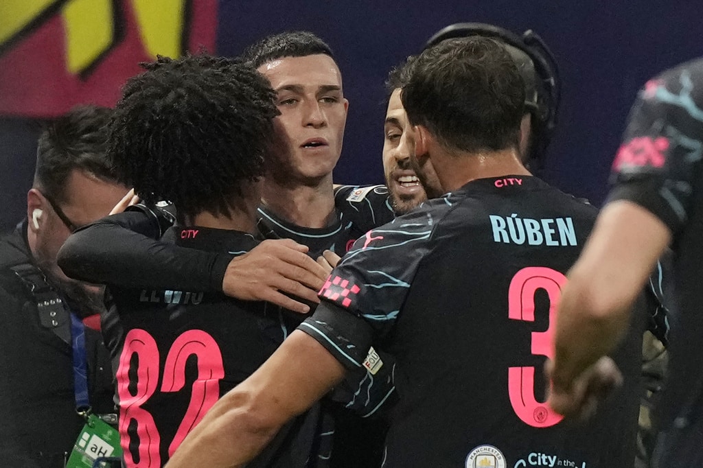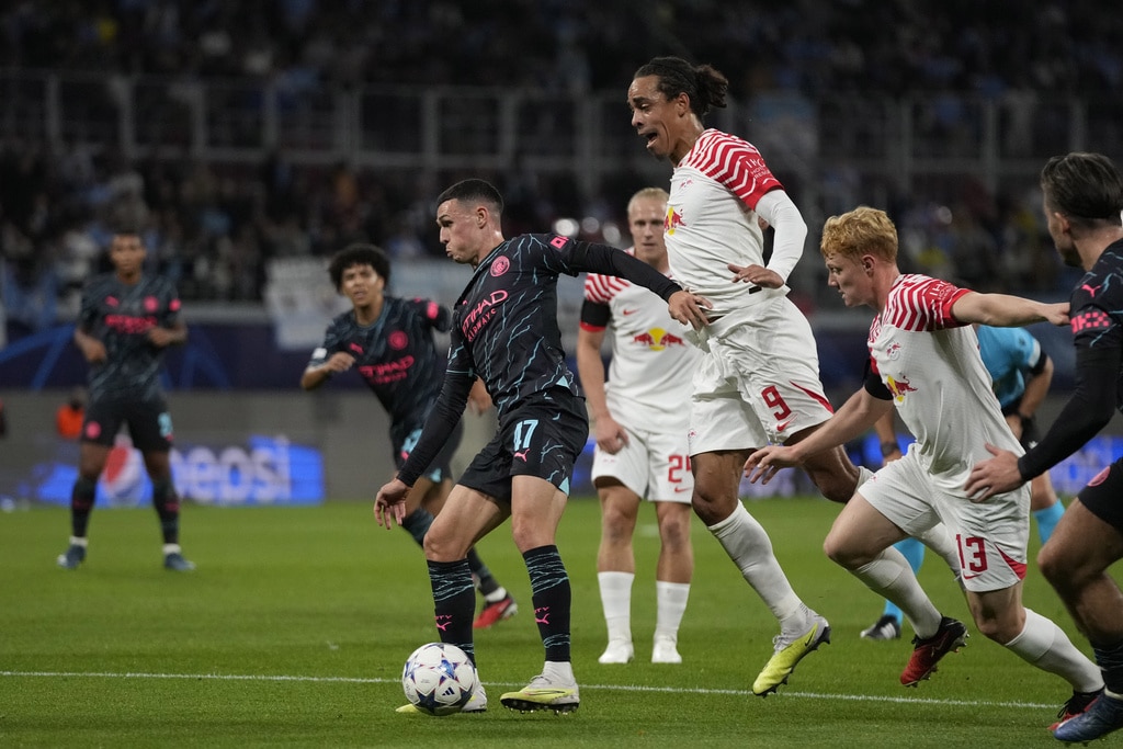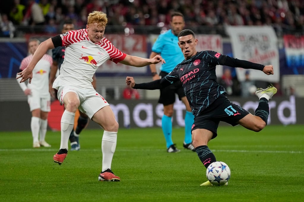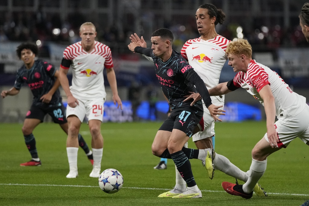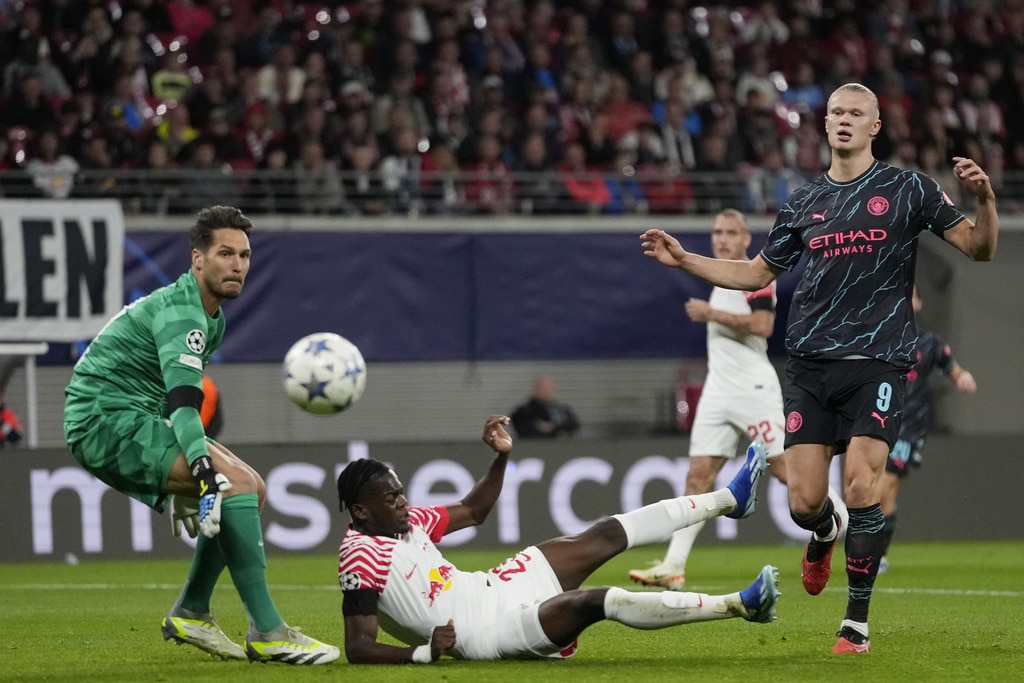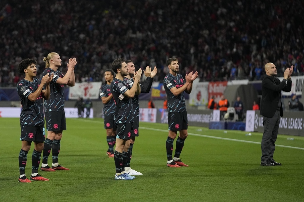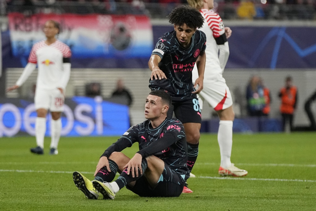 Manchester City’s Phil Foden grimaces after missing a scoring chance score during the Champions League group G soccer match between RB Leipzig and Manchester City in Leipzig, Germany, Wednesday, Oct. 4, 2023. (AP Photo/Matthias Schrader)Manchester City’s Phil Foden celebrates with his teammates after scoring his side’s opening goal during the Champions League group G soccer match between RB Leipzig and Manchester City in Leipzig, Germany, Wednesday, Oct. 4, 2023. (AP Photo/Matthias Schrader)Manchester City’s Phil Foden celebrates with his teammates after scoring his side’s opening goal during the Champions League group G soccer match between RB Leipzig and Manchester City in Leipzig, Germany, Wednesday, Oct. 4, 2023. (AP Photo/Matthias Schrader)Manchester City’s Phil Foden controls the ball during the Champions League group G soccer match between RB Leipzig and Manchester City in Leipzig, Germany, Wednesday, Oct. 4, 2023. (AP Photo/Matthias Schrader)Manchester City’s Phil Foden controls the ball during the Champions League group G soccer match between RB Leipzig and Manchester City in Leipzig, Germany, Wednesday, Oct. 4, 2023. (AP Photo/Matthias Schrader)Manchester City’s Josko Gvardiol, right, challenges for the ball with Leipzig’s Mohamed Simakan during the Champions League group G soccer match between RB Leipzig and Manchester City in Leipzig, Germany, Wednesday, Oct. 4, 2023. (AP Photo/Matthias Schrader)Manchester City’s Phil Foden, not seen in the picture celebrates with his teammates after scoring his side’s opening goal during the Champions League group G soccer match between RB Leipzig and Manchester City in Leipzig, Germany, Wednesday, Oct. 4, 2023. (AP Photo/Matthias Schrader)Manchester City’s Erling Haaland makes an attempt to score during the Champions League group G soccer match between RB Leipzig and Manchester City in Leipzig, Germany, Wednesday, Oct. 4, 2023. (AP Photo/Matthias Schrader)Manchester City’s Erling Haaland makes an attempt to score during the Champions League group G soccer match between RB Leipzig and Manchester City in Leipzig, Germany, Wednesday, Oct. 4, 2023. (AP Photo/Matthias Schrader)Manchester City’s Phil Foden celebrates with his teammate Bernardo Silva after scoring his side’s opening goal during the Champions League group G soccer match between RB Leipzig and Manchester City in Leipzig, Germany, Wednesday, Oct. 4, 2023. (AP Photo/Matthias Schrader)Manchester City’s Erling Haaland makes an attempt to score during the Champions League group G soccer match between RB Leipzig and Manchester City in Leipzig, Germany, Wednesday, Oct. 4, 2023. (AP Photo/Matthias Schrader)Manchester City’s Julian Alvarez celebrates after scoring his side’s second goal during the Champions League group G soccer match between RB Leipzig and Manchester City in Leipzig, Germany, Wednesday, Oct. 4, 2023. (AP Photo/Matthias Schrader)Manchester City’s Julian Alvarez celebrates with his teammate Jeremy Doku after scoring his side’s second goal during the Champions League group G soccer match between RB Leipzig and Manchester City in Leipzig, Germany, Wednesday, Oct. 4, 2023. (AP Photo/Matthias Schrader)Manchester City’s Jeremy Doku celebrates after scoring his side’s third goal during the Champions League group G soccer match between RB Leipzig and Manchester City in Leipzig, Germany, Wednesday, Oct. 4, 2023. (AP Photo/Matthias Schrader)Manchester City’s players applaude supporters at the end of the Champions League group G soccer match between RB Leipzig and Manchester City in Leipzig, Germany, Wednesday, Oct. 4, 2023. (AP Photo/Matthias Schrader)