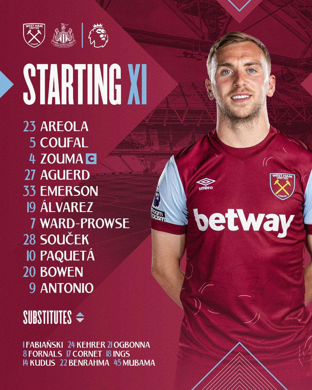 8 ตุลาคม 2566 รายชื่อผู้เล่น 11 ตัวจริง เวสต์แฮม พบ นิวคาสเซิ่ล ศึกฟุตบอลพรีเมียร์ ฤดูกาล 2023-24 คืนนี้ ลิงก์ถูกลิขสิทธิ์ ดูบอลสดออนไลน์ ทาง True Premier Football เวลา 20:00 น.