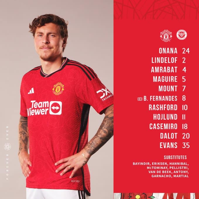 7 ตุลาคม 2566 รายชื่อผู้เล่น 11 ตัวจริง แมนยู พบ เบรนท์ฟอร์ด ศึกฟุตบอลพรีเมียร์ ฤดูกาล 2023-24 คืนนี้ ลิงก์ถูกลิขสิทธิ์ ดูบอลสดออนไลน์ ทาง True Premier Football เวลา 21:00 น.