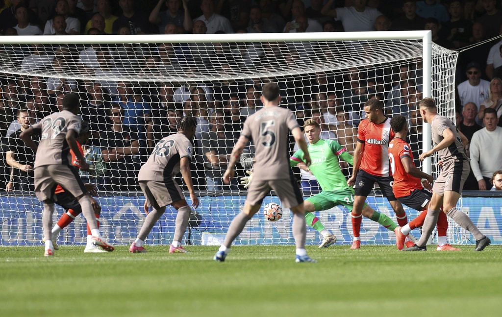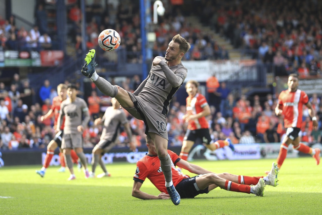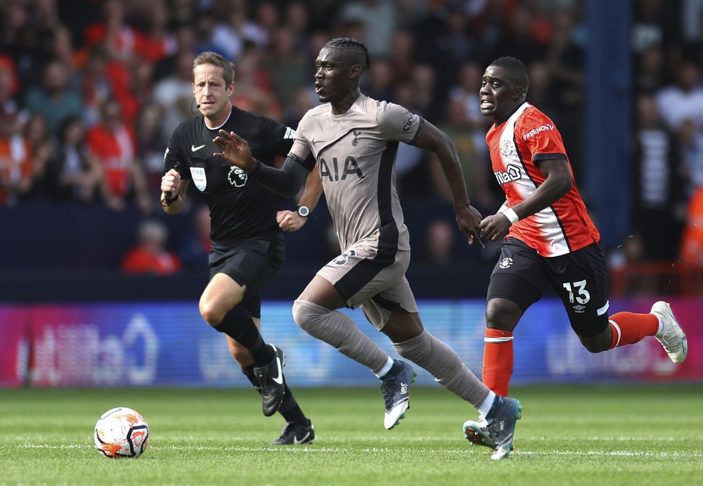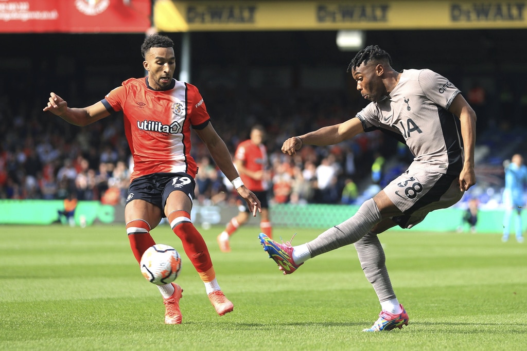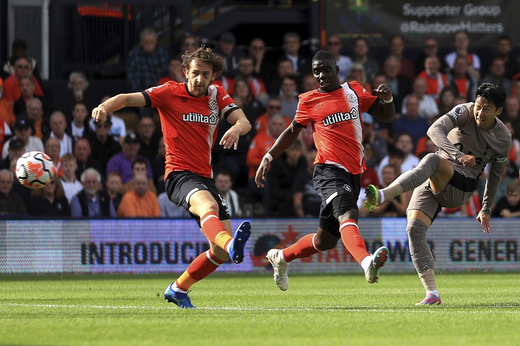 Tottenham Hotspur’s Destiny Udogie, right, attempts to cross the ball from pressure by Luton Town’s Jacob Brown, during the English Premier League soccer match between Luton Town and Tottenham Hotspur, at Kenilworth Road, in Luton, England, Saturday, Oct. 7, 2023. (Bradley Collyer/PA via AP)Tottenham Hotspur’s Son Heung-Min, right, attempts a shot on goal , during the English Premier League soccer match between Luton Town and Tottenham Hotspur, at Kenilworth Road, in Luton, England, Saturday, Oct. 7, 2023. (Bradley Collyer/PA via AP)Luton Town’s Jacob Brown (left) and Tottenham Hotspur’s Richarlison battle for the balll, during the English Premier League soccer match between Luton Town and Tottenham Hotspur, at Kenilworth Road, in Luton, England, Saturday, Oct. 7, 2023. (Bradley Collyer/PA via AP)Tottenham Hotspur’s Yves Bissouma (centre) breaks free from Luton Town’s Marvelous Nakamba, right, as referee John Brooks watches on, during the English Premier League soccer match between Luton Town and Tottenham Hotspur, at Kenilworth Road, in Luton, England, Saturday, Oct. 7, 2023. (Bradley Collyer/PA via AP)Tottenham Hotspur’s Richarlison, right, and Luton Town’s Reece Burke battle for the ball, during the English Premier League soccer match between Luton Town and Tottenham Hotspur, at Kenilworth Road, in Luton, England, Saturday, Oct. 7, 2023. (Bradley Collyer/PA via AP)Tottenham Hotspur’s James Maddison, centre, attempts to control the ball, during the English Premier League soccer match between Luton Town and Tottenham Hotspur, at Kenilworth Road, in Luton, England, Saturday, Oct. 7, 2023. (Bradley Collyer/PA via AP)Tottenham Hotspur’s Micky van de Ven, right, scores his side’s first goal of the game, during the English Premier League soccer match between Luton Town and Tottenham Hotspur, at Kenilworth Road, in Luton, England, Saturday, Oct. 7, 2023. (Bradley Collyer/PA via AP)Tottenham Hotspur’s Cristian Romero reacts, during the English Premier League soccer match between Luton Town and Tottenham Hotspur, at Kenilworth Road, in Luton, England, Saturday, Oct. 7, 2023. (Bradley Collyer/PA via AP)