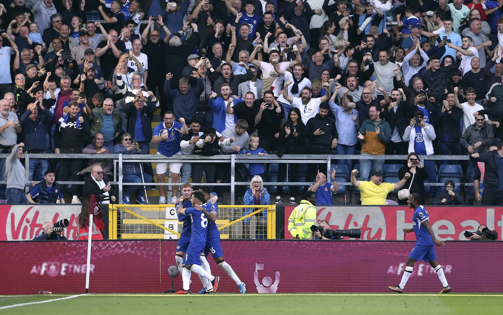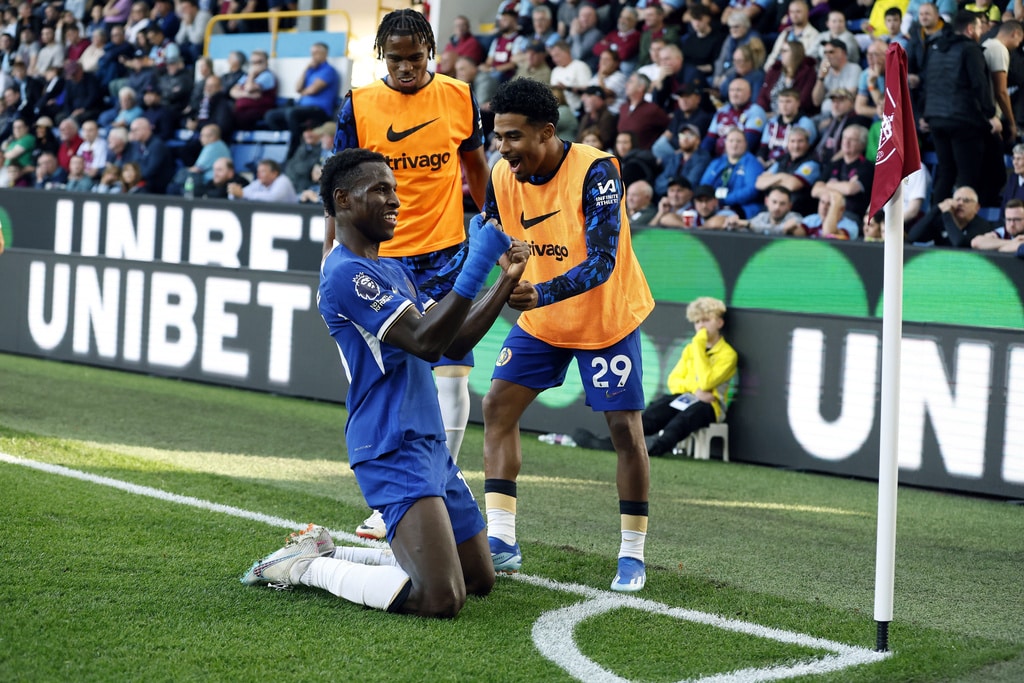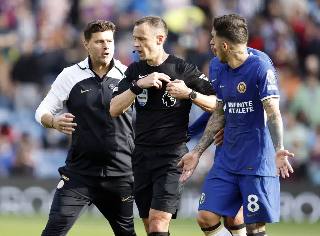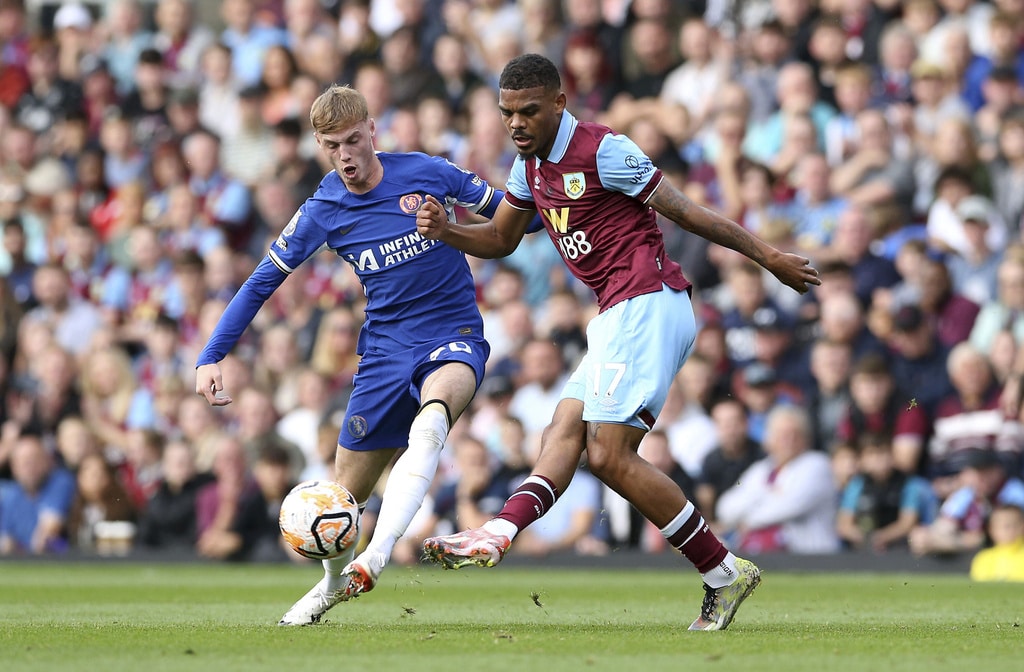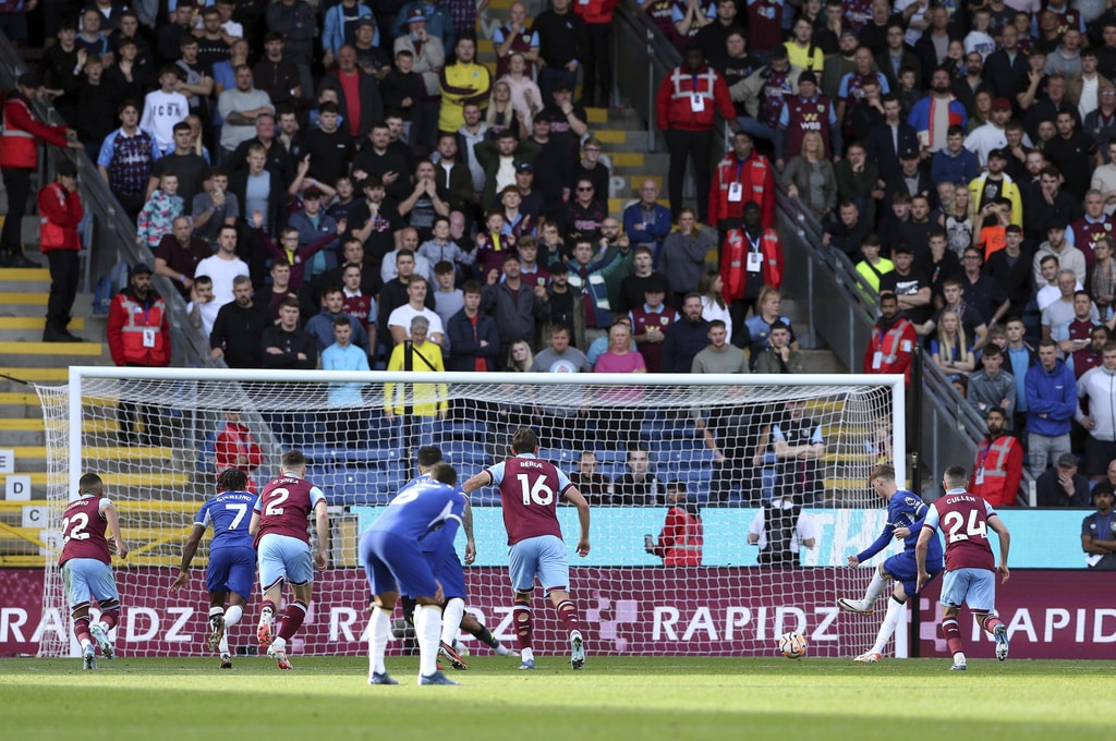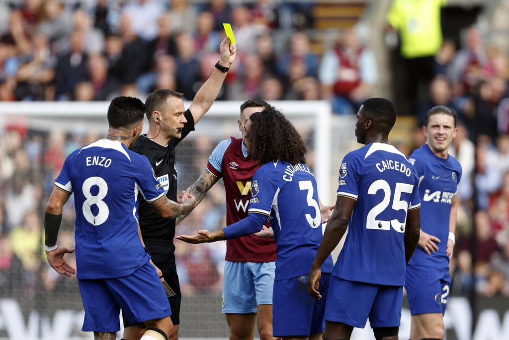Burnley manager Vincent Kompany looks on, during the English Premier League soccer match between Burnley and Chelsea, at Turf Moor, in Burnley, England, Saturday, Oct. 7, 2023. (Richard Sellers/PA via AP)Referee Stuart Attwell shows a yellow card to Chelsea’s Marc Cucurella, during the English Premier League soccer match between Burnley and Chelsea, at Turf Moor, in Burnley, England, Saturday, Oct. 7, 2023. (Richard Sellers/PA via AP)Chelsea manager Mauricio Pochettino speaks to referee Stuart Attwell as they walk off the pitch at half-time, during the English Premier League soccer match between Burnley and Chelsea, at Turf Moor, in Burnley, England, Saturday, Oct. 7, 2023. (Richard Sellers/PA via AP)Burnley’s Josh Cullen , left, speaks to manager Vincent Kompany during the English Premier League soccer match between Burnley and Chelsea, at Turf Moor, in Burnley, England, Saturday, Oct. 7, 2023. (Richard Sellers/PA via AP)Chelsea’s Cole Palmer scores his side’s second goal of the game, during the English Premier League soccer match between Burnley and Chelsea, at Turf Moor, in Burnley, England, Saturday, Oct. 7, 2023. (Richard Sellers/PA via AP)Chelsea’s Cole Palmer scores his side’s second goal of the game, during the English Premier League match, during the English Premier League soccer match between Burnley and Chelsea, at Turf Moor, in Burnley, England, Saturday, Oct. 7, 2023. (Barrington Coombs/PA via AP)Chelsea’s Nicolas Jackson, right, scores his side’s fourth goal of the game, during the English Premier League soccer match between Burnley and Chelsea, at Turf Moor, in Burnley, England, Saturday, Oct. 7, 2023. (Richard Sellers/PA via AP)Chelsea’s Cole Palmer celebrates scoring his side’s second goal of the game, during the English Premier League soccer match between Burnley and Chelsea, at Turf Moor, in Burnley, England, Saturday, Oct. 7, 2023. (Richard Sellers/PA via AP)Chelsea’s Nicolas Jackson celebrates scoring his side’s fourth goal of the game with teammates, during the English Premier League soccer match between Burnley and Chelsea, at Turf Moor, in Burnley, England, Saturday, Oct. 7, 2023. (Richard Sellers/PA via AP)Chelsea’s Raheem Sterling celebrates scoring his side’s third goal of the game, during the English Premier League soccer match between Burnley and Chelsea, at Turf Moor, in Burnley, England, Saturday, Oct. 7, 2023. (Richard Sellers/PA via AP)Chelsea’s Cole Palmer celebrates scoring his side’s second goal of the game, during the English Premier League soccer match between Burnley and Chelsea, at Turf Moor, in Burnley, England, Saturday, Oct. 7, 2023. (Barrington Coombs//PA via AP)