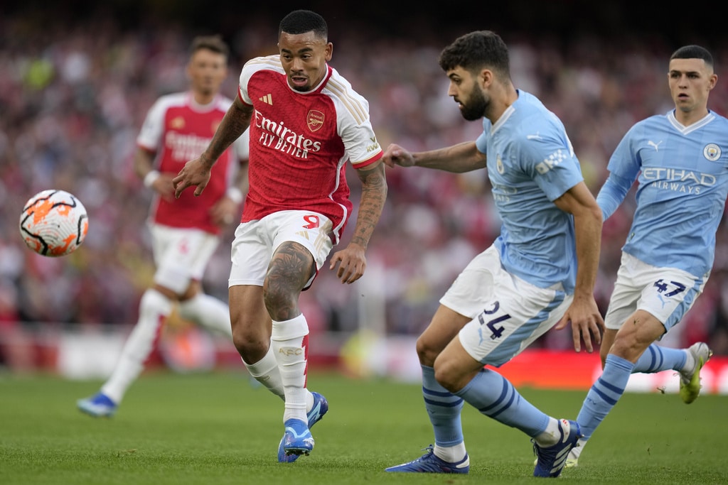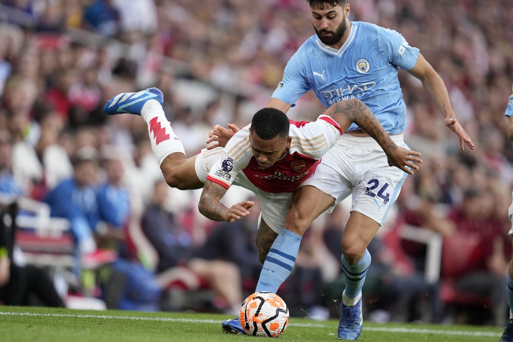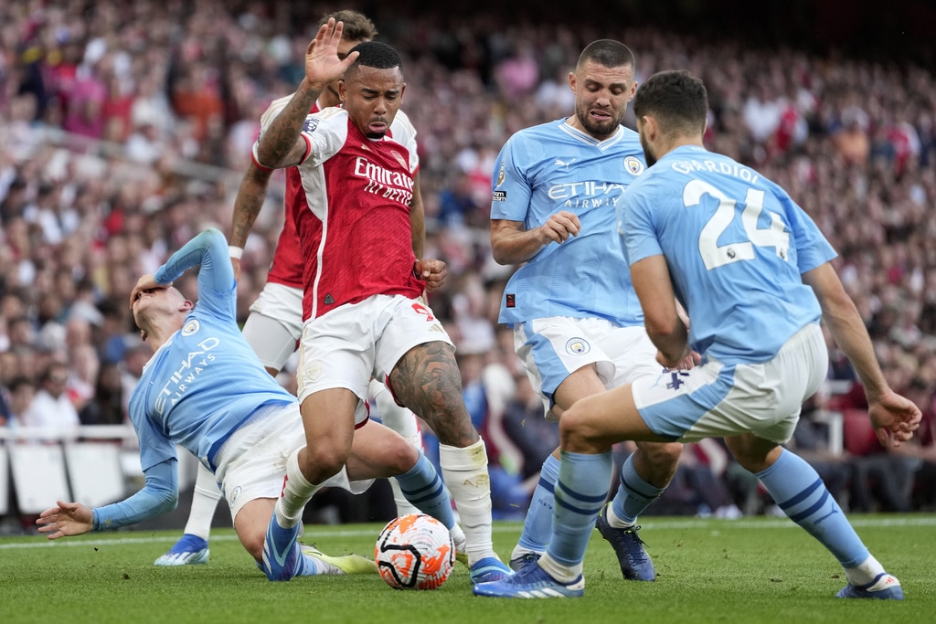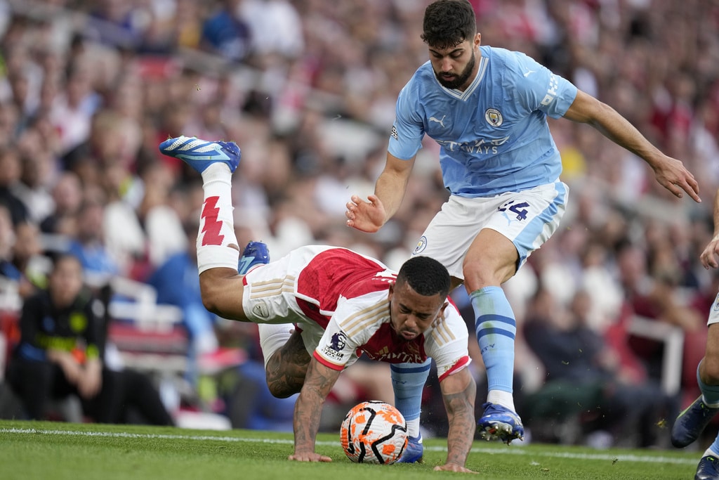Arsenal’s Gabriel Jesus, left, and Manchester City’s Josko Gvardiol challenge for the ball during the English Premier League soccer match between Arsenal and Manchester City at the Emirates Stadium in London, Sunday, Oct. 8, 2023.(AP Photo/Kirsty Wigglesworth)Manchester City’s head coach Pep Guardiola shouts during the English Premier League soccer match between Arsenal and Manchester City at the Emirates Stadium in London, Sunday, Oct. 8, 2023.(AP Photo/Kirsty Wigglesworth)Arsenal’s Gabriel Jesus, centre, Manchester City’s Josko Gvardiol, left, and Manchester City’s Mateo Kovacic challenge for the ball during the English Premier League soccer match between Arsenal and Manchester City at the Emirates Stadium in London, Sunday, Oct. 8, 2023.(AP Photo/Kirsty Wigglesworth)Arsenal’s Gabriel Jesus reacts during the English Premier League soccer match between Arsenal and Manchester City at the Emirates Stadium in London, Sunday, Oct. 8, 2023.(AP Photo/Kirsty Wigglesworth)Manchester City’s Josko Gvardiol, left, and Arsenal’s Ben Whit challenge for the ball during the English Premier League soccer match between Arsenal and Manchester City at the Emirates Stadium in London, Sunday, Oct. 8, 2023.(AP Photo/Kirsty Wigglesworth)Arsenal’s manager Mikel Arteta gestures during the English Premier League soccer match between Arsenal and Manchester City at the Emirates Stadium in London, Sunday, Oct. 8, 2023.(AP Photo/Kirsty Wigglesworth)Arsenal’s Gabriel Jesus, left, and Manchester City’s Josko Gvardiol challenge for the ball during the English Premier League soccer match between Arsenal and Manchester City at the Emirates Stadium in London, Sunday, Oct. 8, 2023.(AP Photo/Kirsty Wigglesworth)Arsenal’s Gabriel Jesus controls the ball during the English Premier League soccer match between Arsenal and Manchester City at the Emirates Stadium in London, Sunday, Oct. 8, 2023.(AP Photo/Kirsty Wigglesworth)Arsenal’s William Saliba, left, Arsenal’s Gabriel Jesus, right and Manchester City’s Phil Foden challenge for the ball during the English Premier League soccer match between Arsenal and Manchester City at the Emirates Stadium in London, Sunday, Oct. 8, 2023.(AP Photo/Kirsty Wigglesworth)Arsenal’s William Saliba, top, and Arsenal’s Gabriel celebrate winning the English Premier League soccer match between Arsenal and Manchester City at the Emirates Stadium in London, Sunday, Oct. 8, 2023.(AP Photo/Kirsty Wigglesworth)Arsenal’s Thomas Partey, right, kicks the ball during the English Premier League soccer match between Arsenal and Manchester City at the Emirates Stadium in London, Sunday, Oct. 8, 2023.(AP Photo/Kirsty Wigglesworth)Manchester City’s Erling Haaland applauds to supporters after his team lost the English Premier League soccer match between Arsenal and Manchester City at the Emirates Stadium in London, Sunday, Oct. 8, 2023.(AP Photo/Kirsty Wigglesworth)Arsenal’s Gabriel Jesus, left, and Manchester City’s Josko Gvardiol challenge for the ball during the English Premier League soccer match between Arsenal and Manchester City at the Emirates Stadium in London, Sunday, Oct. 8, 2023.(AP Photo/Kirsty Wigglesworth)Manchester City’s Phil Foden, right, watches Arsenal’s William Saliba, top, and Arsenal’s Gabriel celebrate winning the English Premier League soccer match between Arsenal and Manchester City at the Emirates Stadium in London, Sunday, Oct. 8, 2023.(AP Photo/Kirsty Wigglesworth)