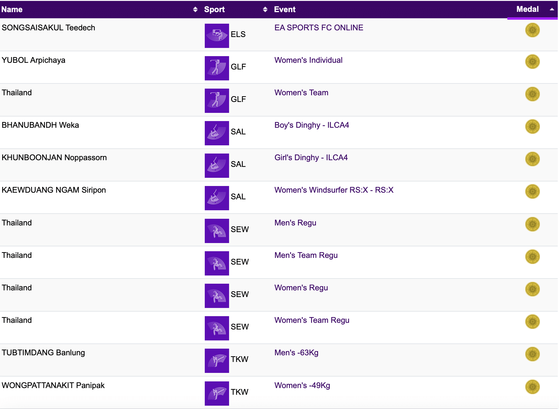 - ตะกร้อ : 4 เหรียญทองจากทั้งชายและหญิง