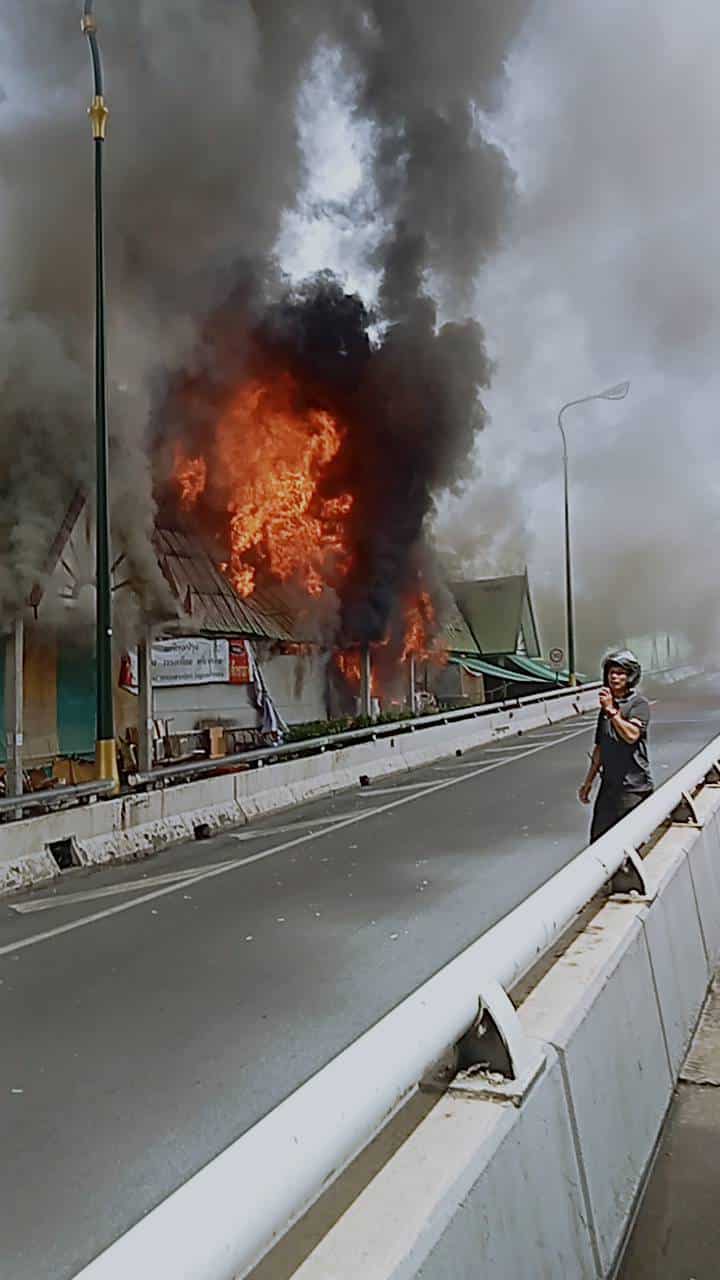 ด่วน! ไฟไหม้ตลาดศาลาน้ำร้อน ใกล้โรงพยาบาลศิริราช ล่าสุดเพลิงสงบแล้ว