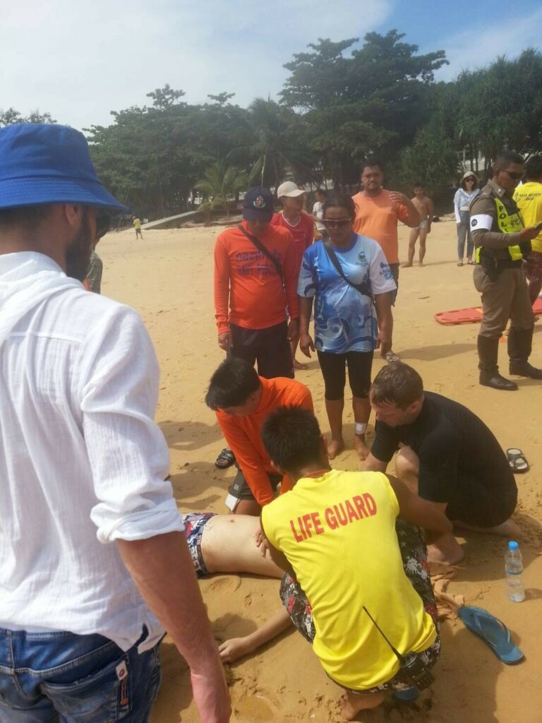 จากการสอบถามทราบว่า ผู้ตายได้เดินทางมาจากหาดป่าตองพร้อมเพื่อนรวม 4 คน โดยผู้ตายได้ลงเล่นน้ำเพียงลำพัง ส่วนเพื่อนอีก 3 คน ยืนรออยู่ที่บริเวณริมทะเล ในขณะนั้นเจ้าหน้าที่ไลฟ์การ์ดได้เตือนนักท่องเที่ยวไม่ให้ลงเล่นน้ำทะเลเนื่องจากคลื่นลมแรงและมีธงแดงปักตลอดแนวชายหาดแต่นักท่องเที่ยวคนดังกล่าวไม่เชื่อฟังยังลงเล่นน้ำเมินคำเตือนของเจ้าหน้าจากนั้นไม่นานถูกคลื่นซัดลงกลางทะเลเจ้าหน้าที่ช่วยเหลือกลับขึ้นมาบริเวณชายฝั่งแต่ทราบว่าเสียชีวิตในเวลาต่อมา