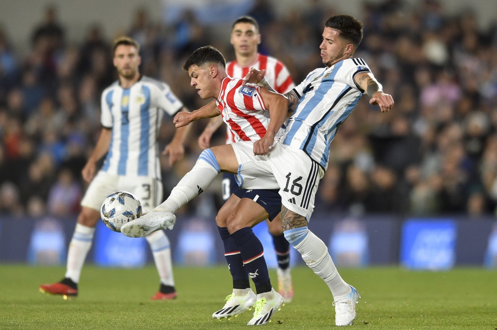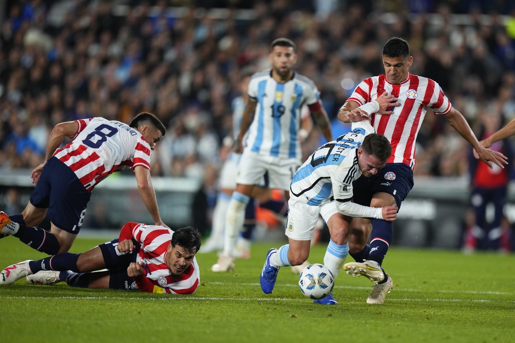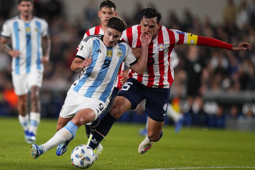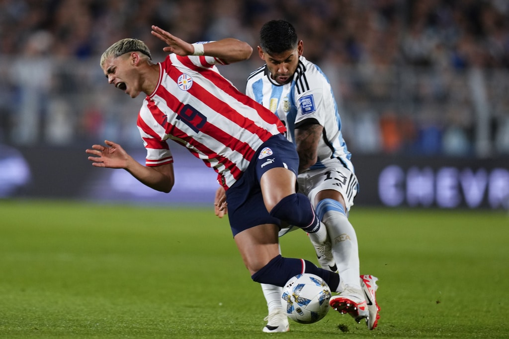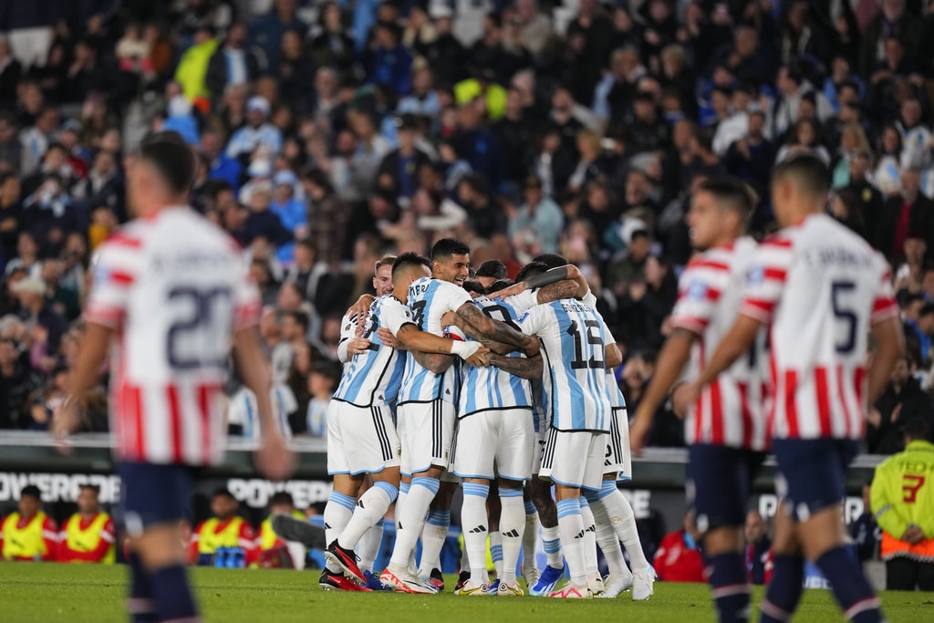 Argentina’s Cristian Romero, right, and Paraguay’s Ramon Sosa battle for the ball during a qualifying soccer match for the FIFA World Cup 2026 at the Monumental stadium in Buenos Aires, Argentina, Thursday, Oct. 12, 2023. (AP Photo/Natacha Pisarenko)Argentina’s Alexis Mac Allister battles for the ball with Paraguay’s Fabian Balbuena, right, during a qualifying soccer match for the FIFA World Cup 2026 at the Monumental stadium in Buenos Aires, Argentina, Thursday, Oct. 12, 2023. (AP Photo/Natacha Pisarenko)Paraguay’s Gustavo Gomez chases Argentina’s Julian Alvarez during a qualifying soccer match for the FIFA World Cup 2026 at the Monumental stadium in Buenos Aires, Argentina, Thursday, Oct. 12, 2023. (AP Photo/Natacha Pisarenko)Players of Argentina surround Nicolas Otamendi after he scored the opening goal in a qualifying soccer match for the FIFA World Cup 2026 against Paraguay at the Monumental stadium in Buenos Aires, Argentina, Thursday, Oct. 12, 2023. (AP Photo/Natacha Pisarenko)“Argentina’s Lionel Messi replaces Julian Alvarez during a qualifying soccer match for the FIFA World Cup 2026 against Paraguay at the Monumental stadium in Buenos Aires, Argentina, Thursday, Oct. 12, 2023. (AP Photo/Natacha Pisarenko)Argentina’s Lionel Messi walks the field during a qualifying soccer match for the FIFA World Cup 2026 against Paraguay at the Monumental stadium in Buenos Aires, Argentina, Thursday, Oct. 12, 2023. (AP Photo/Gustavo Garello)Argentina’s Enzo Fernandez (16) and Paraguay’s Richard Sanchez compete for the ball during a qualifying soccer match for the FIFA World Cup 2026 at the Monumental stadium in Buenos Aires, Argentina, Thursday, Oct. 12, 2023. (AP Photo/Gustavo Garello)Argentina’s Alexis Mac Allister, right, and Paraguay’s Richard Sanchez battle for the ball during a qualifying soccer match for the FIFA World Cup 2026 at the Monumental stadium in Buenos Aires, Argentina, Thursday, Oct. 12, 2023. (AP Photo/Natacha Pisarenko)Argentina’s Lionel Messi battles for the ball with Paraguay’s Gustavo Gomez during a qualifying soccer match for the FIFA World Cup 2026 at the Monumental stadium in Buenos Aires, Argentina, Thursday, Oct. 12, 2023. (AP Photo/Gustavo Garello)