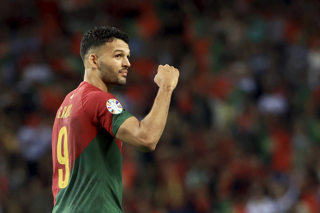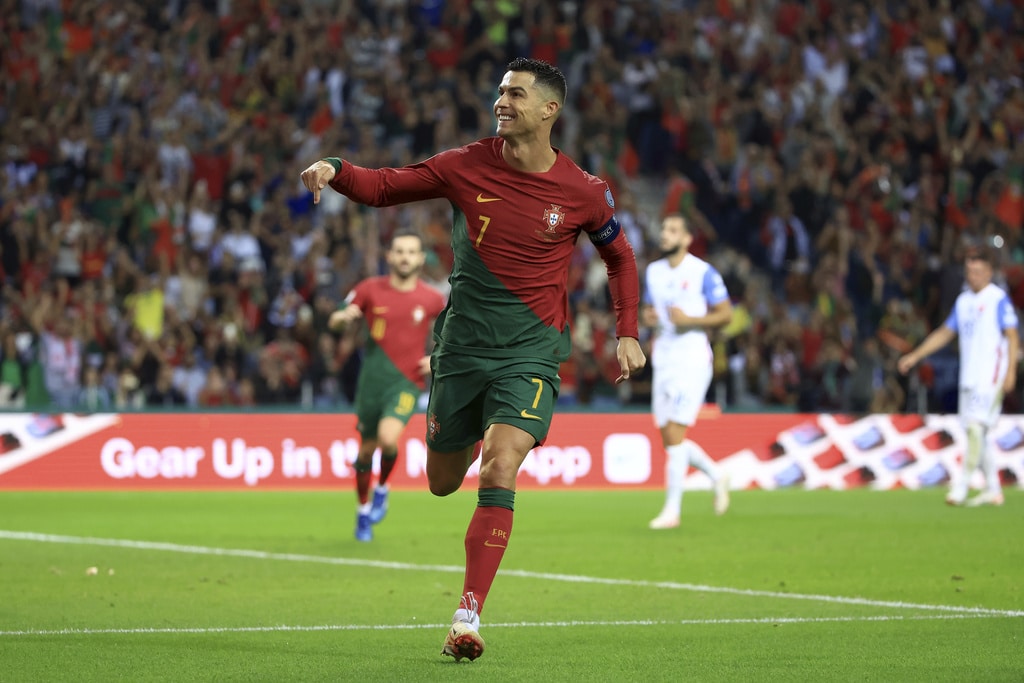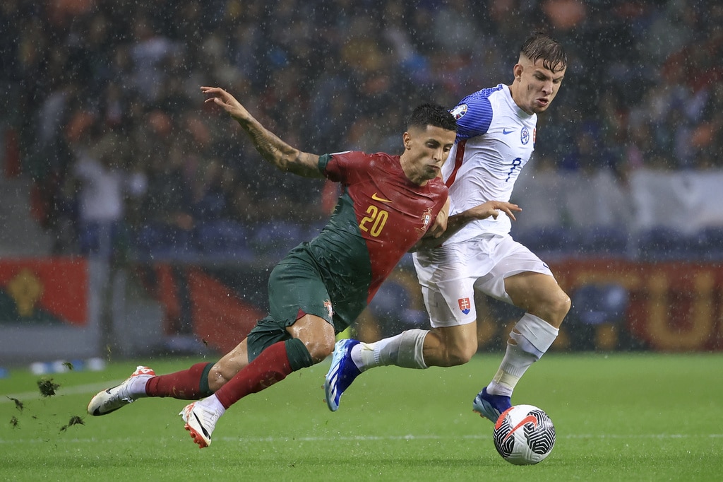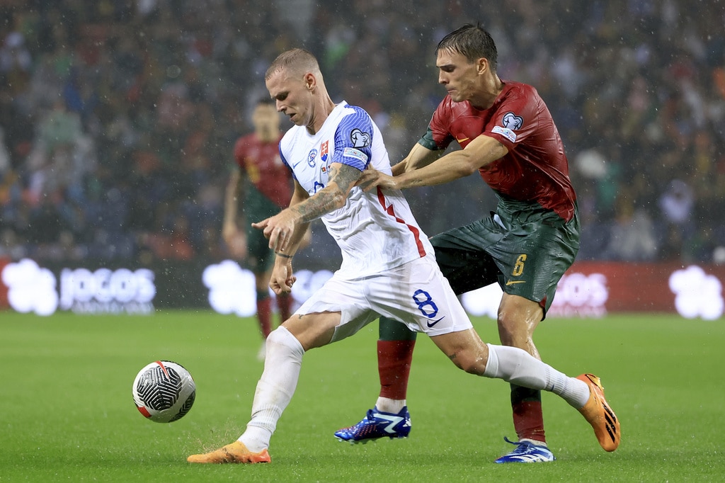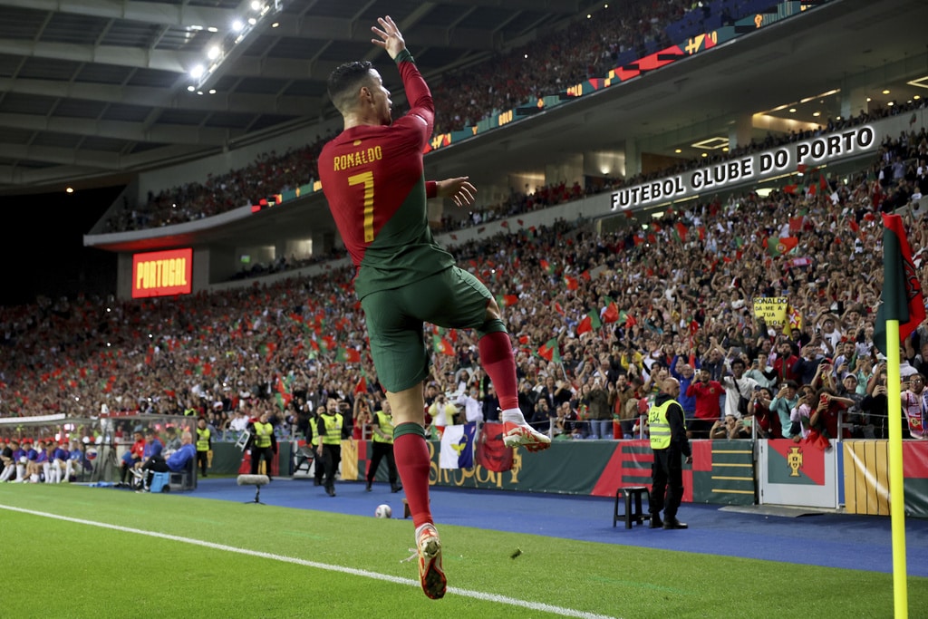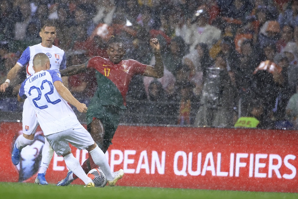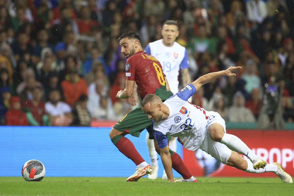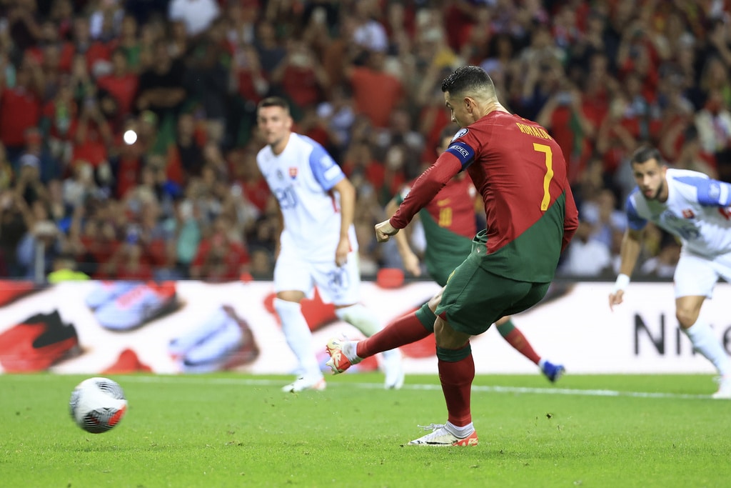 Portugal’s Cristiano Ronaldo vies for the ball with Slovakia’s Milan Skriniar, right, during the Euro 2024 group J qualifying soccer match between Portugal and Slovakia at the Dragao stadium in Porto, Portugal, Friday, Oct. 13, 2023. (AP Photo/Luis Vieira)Portugal’s Cristiano Ronaldo celebrates after scoring his side’s second goal from the penalty spot during the Euro 2024 group J qualifying soccer match between Portugal and Slovakia at the Dragao stadium in Porto, Portugal, Friday, Oct. 13, 2023. (AP Photo/Luis Vieira)Portugal’s Cristiano Ronaldo scores his side’s second goal from the penalty spot during the Euro 2024 group J qualifying soccer match between Portugal and Slovakia at the Dragao stadium in Porto, Portugal, Friday, Oct. 13, 2023. (AP Photo/Luis Vieira)Portugal’s Cristiano Ronaldo celebrates with Rafael Leao, left, after scoring his side’s second goal from the penalty spot during the Euro 2024 group J qualifying soccer match between Portugal and Slovakia at the Dragao stadium in Porto, Portugal, Friday, Oct. 13, 2023. (AP Photo/Luis Vieira)Portugal’s Cristiano Ronaldo and Goncalo Ramos, right, react after a missed chance to score during the Euro 2024 group J qualifying soccer match between Portugal and Slovakia at the Dragao stadium in Porto, Portugal, Friday, Oct. 13, 2023. (AP Photo/Luis Vieira)Portugal’s Bruno Fernandes, left, drives the ball past Slovakia’s Stanislav Lobotka during the Euro 2024 group J qualifying soccer match between Portugal and Slovakia at the Dragao stadium in Porto, Portugal, Friday, Oct. 13, 2023. (AP Photo/Luis Vieira)Portugal’s Goncalo Ramos celebrates after scoring the opening goal during the Euro 2024 group J qualifying soccer match between Portugal and Slovakia at the Dragao stadium in Porto, Portugal, Friday, Oct. 13, 2023. (AP Photo/Luis Vieira)Portugal coach Roberto Martinez stands by the touchline during the Euro 2024 group J qualifying soccer match between Portugal and Slovakia at the Dragao stadium in Porto, Portugal, Friday, Oct. 13, 2023. (AP Photo/Luis Vieira)Portugal’s Joao Cancelo vies for the ball with Slovakia’s Robert Bozenik, right, during the Euro 2024 group J qualifying soccer match between Portugal and Slovakia at the Dragao stadium in Porto, Portugal, Friday, Oct. 13, 2023. (AP Photo/Luis Vieira)Portugal’s Cristiano Ronaldo gestures during the Euro 2024 group J qualifying soccer match between Portugal and Slovakia at the Dragao stadium in Porto, Portugal, Friday, Oct. 13, 2023. (AP Photo/Luis Vieira)Portugal’s Rafael Leao, right, tries to drive the ball past Slovakia’s Stanislav Lobotka during the Euro 2024 group J qualifying soccer match between Portugal and Slovakia at the Dragao stadium in Porto, Portugal, Friday, Oct. 13, 2023. (AP Photo/Luis Vieira)Portugal’s Joao Palhinha vies for the ball with Slovakia’s Ondrej Duda, left, during the Euro 2024 group J qualifying soccer match between Portugal and Slovakia at the Dragao stadium in Porto, Portugal, Friday, Oct. 13, 2023. (AP Photo/Luis Vieira)Portugal’s Cristiano Ronaldo celebrates at the end of the Euro 2024 group J qualifying soccer match between Portugal and Slovakia at the Dragao stadium in Porto, Portugal, Friday, Oct. 13, 2023. Portugal won 3-2 to qualify for the Euro 2024 championship in Germany. (AP Photo/Luis Vieira)Portugal’s Cristiano Ronaldo celebrates after scoring his side’s third goal during the Euro 2024 group J qualifying soccer match between Portugal and Slovakia at the Dragao stadium in Porto, Portugal, Friday, Oct. 13, 2023. (AP Photo/Luis Vieira)Portugal’s Cristiano Ronaldo celebrates after scoring his side’s third goal during the Euro 2024 group J qualifying soccer match between Portugal and Slovakia at the Dragao stadium in Porto, Portugal, Friday, Oct. 13, 2023. (AP Photo/Luis Vieira)Slovakia’s Stanislav Lobotka, 2nd right, celebrates with Robert Polievka after scoring his side’s second goal during the Euro 2024 group J qualifying soccer match between Portugal and Slovakia at the Dragao stadium in Porto, Portugal, Friday, Oct. 13, 2023. (AP Photo/Luis Vieira)Portugal players celebrate at the end of the Euro 2024 group J qualifying soccer match between Portugal and Slovakia at the Dragao stadium in Porto, Portugal, Friday, Oct. 13, 2023. Portugal won 3-2 to qualify for the Euro 2024 championship in Germany. (AP Photo/Luis Vieira)Portugal coach Roberto Martinez speaks with Portugal’s Diogo Jota during the Euro 2024 group J qualifying soccer match between Portugal and Slovakia at the Dragao stadium in Porto, Portugal, Friday, Oct. 13, 2023. (AP Photo/Luis Vieira)