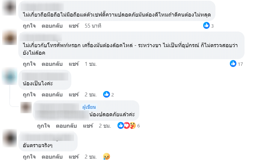 หลังคลิปวิดีโอเด็กพลัดตกเครื่องเล่นถูกเผยแพร่ ชาวเน็ตต่างเข้ามาแสดงความคิดเห็นมากมาย อาทิ “ต่อให้เด็กถือหรือไม่ถือโทรศัพท์ เครื่องเล่นที่คนหลุดออกมาได้คือไม่ปลอดภัย”, “ถือโทรศัพท์ ถ้าโทรศัพท์ตก ต้องโทษคนถือ แต่นี้คนหลุดจากเครื่องเล่น เพราะตัวล็อคไม่ปลอดภัยหรือเปล่าคะ”, “หมุนได้ 2 รอบตก ที่ล็อกไม่ล็อกแน่ ๆ อะ” เป็นต้น