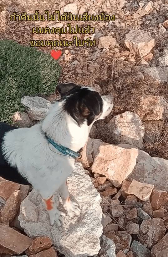 จากคลิปนั้นแสดงให้เห็นภาพของสุนัขหรือ “ไบร์ท” สภาพมีบาดแผล ยืนเห่าอะไรบางอย่าง โดยในคลิปมีข้อความระบุว่า “ถ้าคืนนั้นผมไม่ได้ยินเสียงน้อง ผมคงตุย (ตาย) ไปแล้ว ขอบคุณนะไบร์ท”