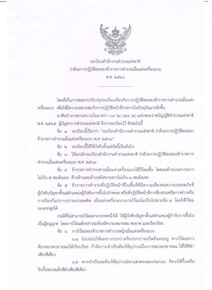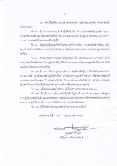 4.ข้าราชการตำรวจชายเมื่อแต่งเครื่องแบบให้ไว้ผมสั้น โดยผมด้านบนความยาวไม่เกิน 5 เซนติเมตร ด้านข้างและด้านหลังความยาวไม่เกิน 1 เชนติเมตร
