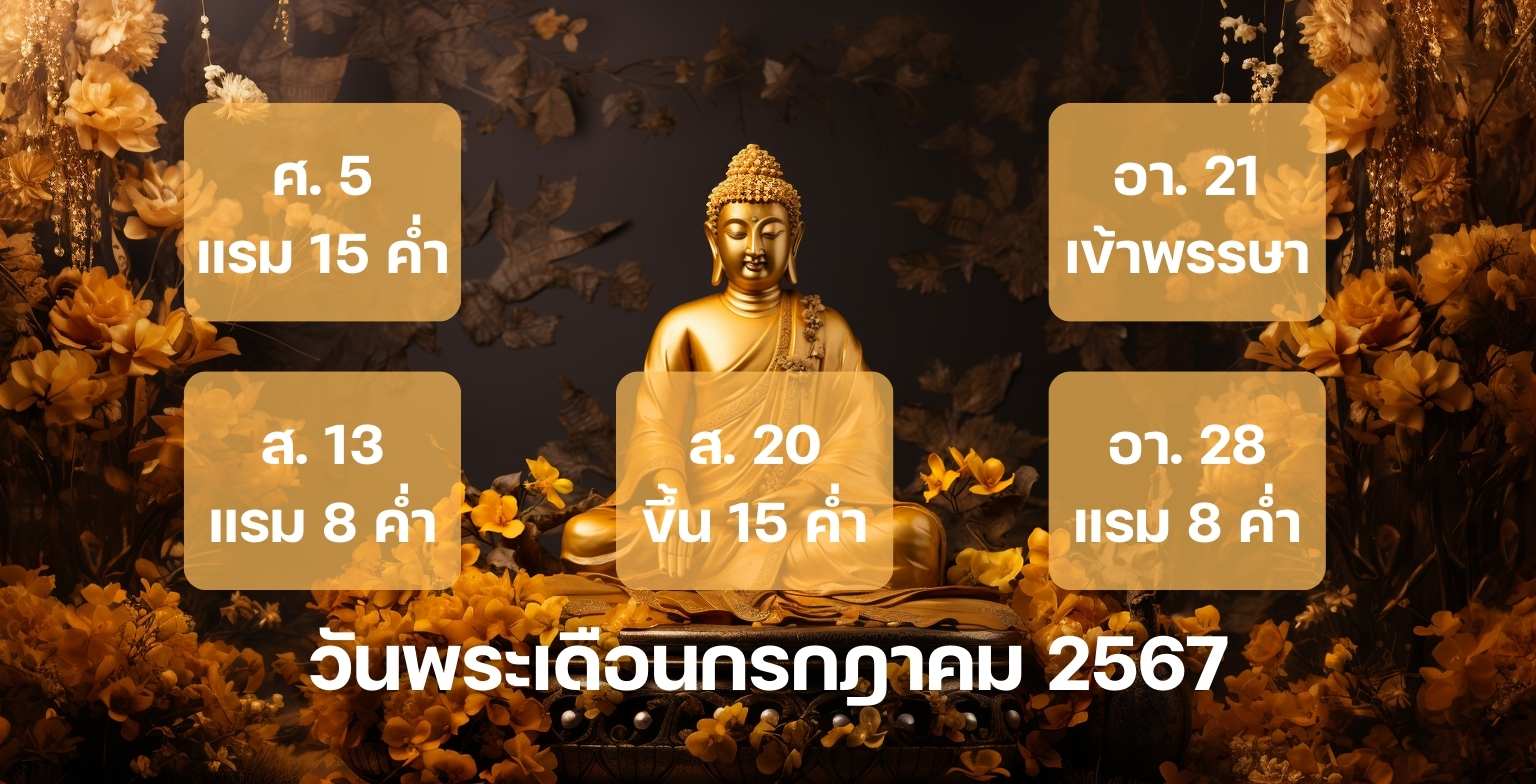 วันอาทิตย์ที่ 21 กรกฎาคม 2567 แรม ๑ ค่ำ เดือนแปด(๘) ปีมะโรง วันเข้าพรรษา
