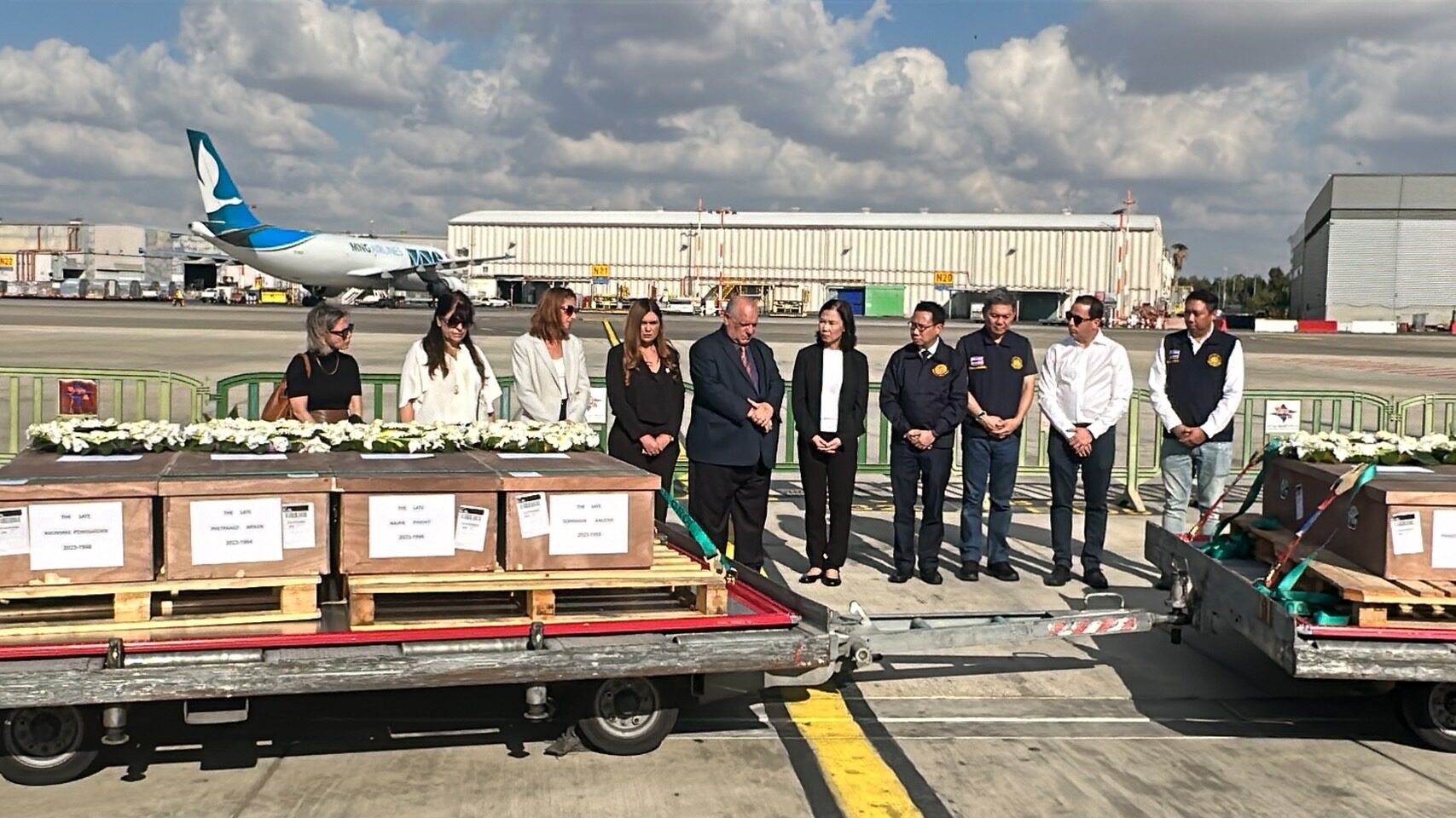 กระทรวงการต่างประเทศ เผยแพร่ภาพการจัดพิธีไว้อาลัยและส่งศพแรงงานไทย 8 ราย ที่เสียชีวิตจากเหตุการณ์สงครามในอิสราเอลกลับประเทศไทย ที่บริเวณลานบิน ท่าอากาศยานเบนกูเรียน กรุงเทลอาวีฟ โดยเมื่อวันที่ 19 ตุลาคม 2566 เวลา 15.30 น. ตามเวลาท้องถิ่น