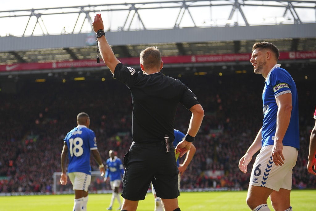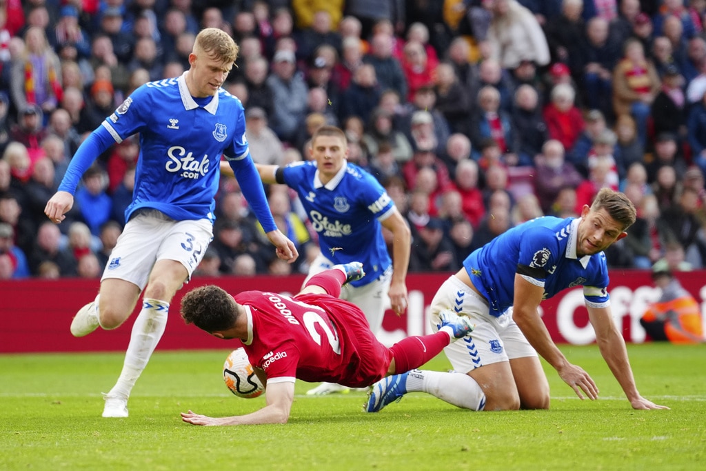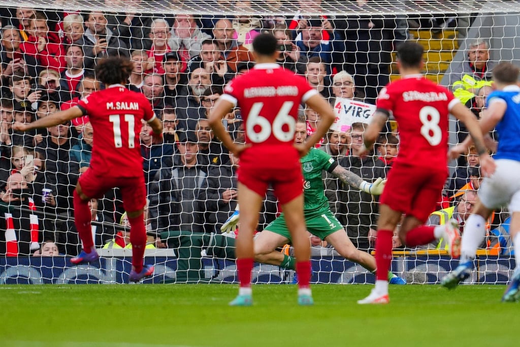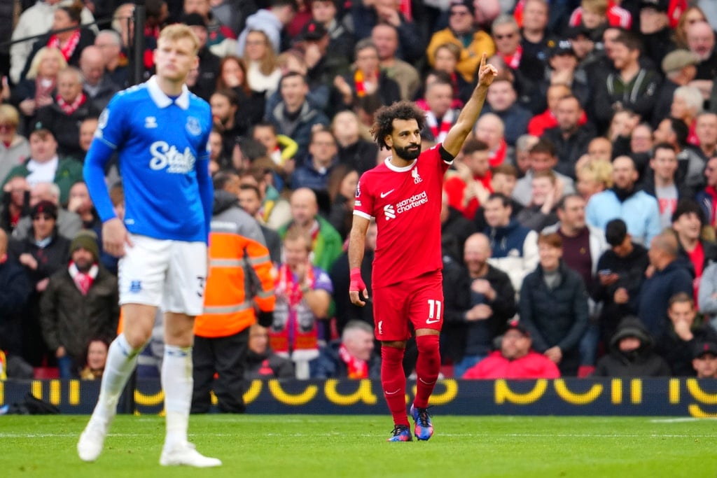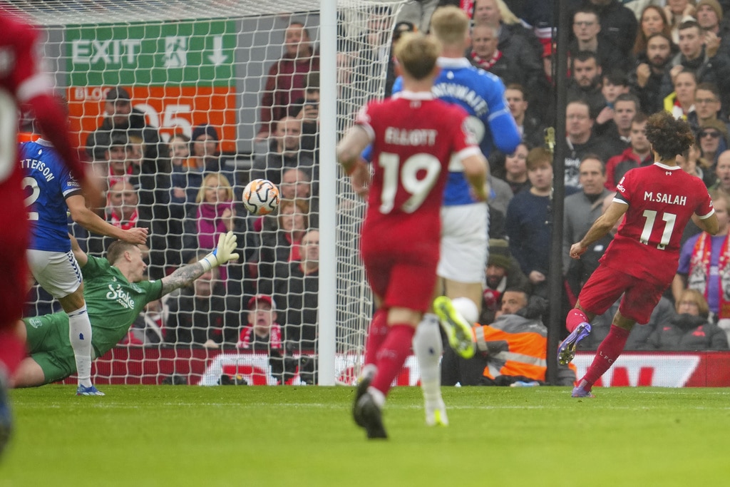 Everton’s goalkeeper Jordan Pickford fails to save the goal from Liverpool’s Mohamed Salah, right, during the English Premier League soccer match between Liverpool and Everton, at Anfield in Liverpool, England, Saturday, Oct. 21, 2023. (AP Photo/Jon Super)Liverpool’s Mohamed Salah celebrates after scoring his side’s second goal during the English Premier League soccer match between Liverpool and Everton, at Anfield in Liverpool, England, Saturday, Oct. 21, 2023. (AP Photo/Jon Super)Everton’s Beto, right, challenges for the ball with Liverpool’s Alexis Mac Allister during the English Premier League soccer match between Liverpool and Everton, at Anfield in Liverpool, England, Saturday, Oct. 21, 2023. (AP Photo/Jon Super)Liverpool’s Joel Matip, left, challenges for the ball with Everton’s James Tarkowski during the English Premier League soccer match between Liverpool and Everton, at Anfield in Liverpool, England, Saturday, Oct. 21, 2023. (AP Photo/Jon Super)Everton’s Beto, right, challenges for the ball with Liverpool’s Alexis Mac Allister during the English Premier League soccer match between Liverpool and Everton, at Anfield in Liverpool, England, Saturday, Oct. 21, 2023. (AP Photo/Jon Super)Everton’s Arnaut Danjuma, right, in action against Liverpool’s Dominik Szoboszlai during the English Premier League soccer match between Liverpool and Everton, at Anfield in Liverpool, England, Saturday, Oct. 21, 2023. (AP Photo/Jon Super)Everton’s goalkeeper Jordan Pickford, centre, fails to save the goal from Liverpool’s Mohamed Salah, left, during the English Premier League soccer match between Liverpool and Everton, at Anfield in Liverpool, England, Saturday, Oct. 21, 2023. (AP Photo/Jon Super)Liverpool’s Mohamed Salah celebrates after scoring his side’s opening goal during the English Premier League soccer match between Liverpool and Everton, at Anfield in Liverpool, England, Saturday, Oct. 21, 2023. (AP Photo/Jon Super)Liverpool’s manager Jurgen Klopp, right, shouts to his players from the sideline during the English Premier League soccer match between Liverpool and Everton, at Anfield in Liverpool, England, Saturday, Oct. 21, 2023. (AP Photo/Jon Super)Liverpool’s Ibrahima Konate, left, argues with referee Craig Pawson during the English Premier League soccer match between Liverpool and Everton, at Anfield in Liverpool, England, Saturday, Oct. 21, 2023. (AP Photo/Jon Super)Everton’s Dominic Calvert-Lewin, left, challenges for the ball with Liverpool’s Ibrahima Konate during the English Premier League soccer match between Liverpool and Everton, at Anfield in Liverpool, England, Saturday, Oct. 21, 2023. (AP Photo/Jon Super)From left, Liverpool’s Mohamed Salah, Liverpool’s Trent Alexander-Arnold, Liverpool’s Dominik Szoboszlai during the English Premier League soccer match between Liverpool and Everton, at Anfield in Liverpool, England, Saturday, Oct. 21, 2023. (AP Photo/Jon Super)Liverpool’s Diogo Jota, centre, challenges for the ball with Everton’s Jarrad Branthwaite, left, and Everton’s James Tarkowski during the English Premier League soccer match between Liverpool and Everton, at Anfield in Liverpool, England, Saturday, Oct. 21, 2023. (AP Photo/Jon Super)Liverpool’s Luis Diaz, left, challenges for the ball with Everton’s Ashley Young during the English Premier League soccer match between Liverpool and Everton, at Anfield in Liverpool, England, Saturday, Oct. 21, 2023. (AP Photo/Jon Super)Referee Craig Pawson shows a red card to Everton’s Ashley Young, left, during the English Premier League soccer match between Liverpool and Everton, at Anfield in Liverpool, England, Saturday, Oct. 21, 2023. (AP Photo/Jon Super)Everton’s James Tarkowski, left, challenges for the ball with Liverpool’s Diogo Jota during the English Premier League soccer match between Liverpool and Everton, at Anfield in Liverpool, England, Saturday, Oct. 21, 2023. (AP Photo/Jon Super)From left, Liverpool’s Mohamed Salah, Liverpool’s Dominik Szoboszlai, Liverpool’s Thiago during the English Premier League soccer match between Liverpool and Everton, at Anfield in Liverpool, England, Saturday, Oct. 21, 2023. (AP Photo/Jon Super)