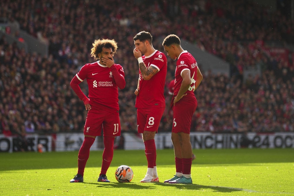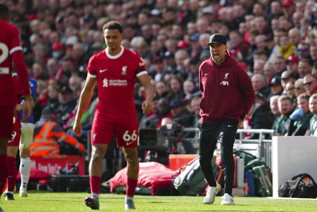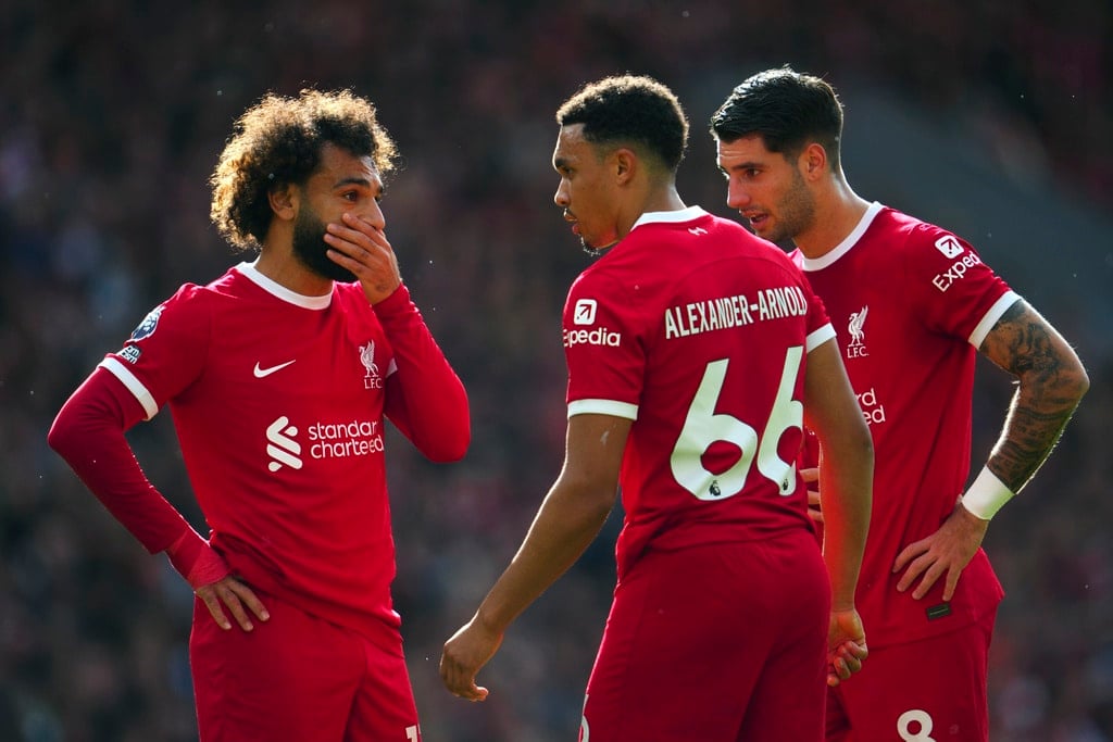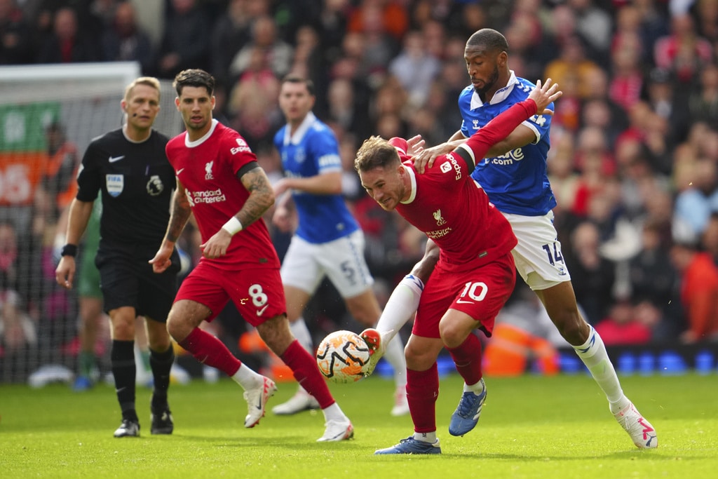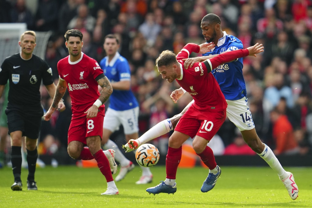 Everton’s goalkeeper Jordan Pickford fails to save the goal from Liverpool’s Mohamed Salah, right, during the English Premier League soccer match between Liverpool and Everton, at Anfield in Liverpool, England, Saturday, Oct. 21, 2023. (AP Photo/Jon Super)Liverpool’s Mohamed Salah celebrates after scoring his side’s second goal during the English Premier League soccer match between Liverpool and Everton, at Anfield in Liverpool, England, Saturday, Oct. 21, 2023. (AP Photo/Jon Super)Everton’s Beto, right, challenges for the ball with Liverpool’s Alexis Mac Allister during the English Premier League soccer match between Liverpool and Everton, at Anfield in Liverpool, England, Saturday, Oct. 21, 2023. (AP Photo/Jon Super)Liverpool’s Joel Matip, left, challenges for the ball with Everton’s James Tarkowski during the English Premier League soccer match between Liverpool and Everton, at Anfield in Liverpool, England, Saturday, Oct. 21, 2023. (AP Photo/Jon Super)Everton’s Beto, right, challenges for the ball with Liverpool’s Alexis Mac Allister during the English Premier League soccer match between Liverpool and Everton, at Anfield in Liverpool, England, Saturday, Oct. 21, 2023. (AP Photo/Jon Super)Everton’s Arnaut Danjuma, right, in action against Liverpool’s Dominik Szoboszlai during the English Premier League soccer match between Liverpool and Everton, at Anfield in Liverpool, England, Saturday, Oct. 21, 2023. (AP Photo/Jon Super)Everton’s goalkeeper Jordan Pickford, centre, fails to save the goal from Liverpool’s Mohamed Salah, left, during the English Premier League soccer match between Liverpool and Everton, at Anfield in Liverpool, England, Saturday, Oct. 21, 2023. (AP Photo/Jon Super)Liverpool’s Mohamed Salah celebrates after scoring his side’s opening goal during the English Premier League soccer match between Liverpool and Everton, at Anfield in Liverpool, England, Saturday, Oct. 21, 2023. (AP Photo/Jon Super)Liverpool’s manager Jurgen Klopp, right, shouts to his players from the sideline during the English Premier League soccer match between Liverpool and Everton, at Anfield in Liverpool, England, Saturday, Oct. 21, 2023. (AP Photo/Jon Super)Liverpool’s Ibrahima Konate, left, argues with referee Craig Pawson during the English Premier League soccer match between Liverpool and Everton, at Anfield in Liverpool, England, Saturday, Oct. 21, 2023. (AP Photo/Jon Super)Everton’s Dominic Calvert-Lewin, left, challenges for the ball with Liverpool’s Ibrahima Konate during the English Premier League soccer match between Liverpool and Everton, at Anfield in Liverpool, England, Saturday, Oct. 21, 2023. (AP Photo/Jon Super)From left, Liverpool’s Mohamed Salah, Liverpool’s Trent Alexander-Arnold, Liverpool’s Dominik Szoboszlai during the English Premier League soccer match between Liverpool and Everton, at Anfield in Liverpool, England, Saturday, Oct. 21, 2023. (AP Photo/Jon Super)Liverpool’s Diogo Jota, centre, challenges for the ball with Everton’s Jarrad Branthwaite, left, and Everton’s James Tarkowski during the English Premier League soccer match between Liverpool and Everton, at Anfield in Liverpool, England, Saturday, Oct. 21, 2023. (AP Photo/Jon Super)Liverpool’s Luis Diaz, left, challenges for the ball with Everton’s Ashley Young during the English Premier League soccer match between Liverpool and Everton, at Anfield in Liverpool, England, Saturday, Oct. 21, 2023. (AP Photo/Jon Super)Referee Craig Pawson shows a red card to Everton’s Ashley Young, left, during the English Premier League soccer match between Liverpool and Everton, at Anfield in Liverpool, England, Saturday, Oct. 21, 2023. (AP Photo/Jon Super)Everton’s James Tarkowski, left, challenges for the ball with Liverpool’s Diogo Jota during the English Premier League soccer match between Liverpool and Everton, at Anfield in Liverpool, England, Saturday, Oct. 21, 2023. (AP Photo/Jon Super)From left, Liverpool’s Mohamed Salah, Liverpool’s Dominik Szoboszlai, Liverpool’s Thiago during the English Premier League soccer match between Liverpool and Everton, at Anfield in Liverpool, England, Saturday, Oct. 21, 2023. (AP Photo/Jon Super)