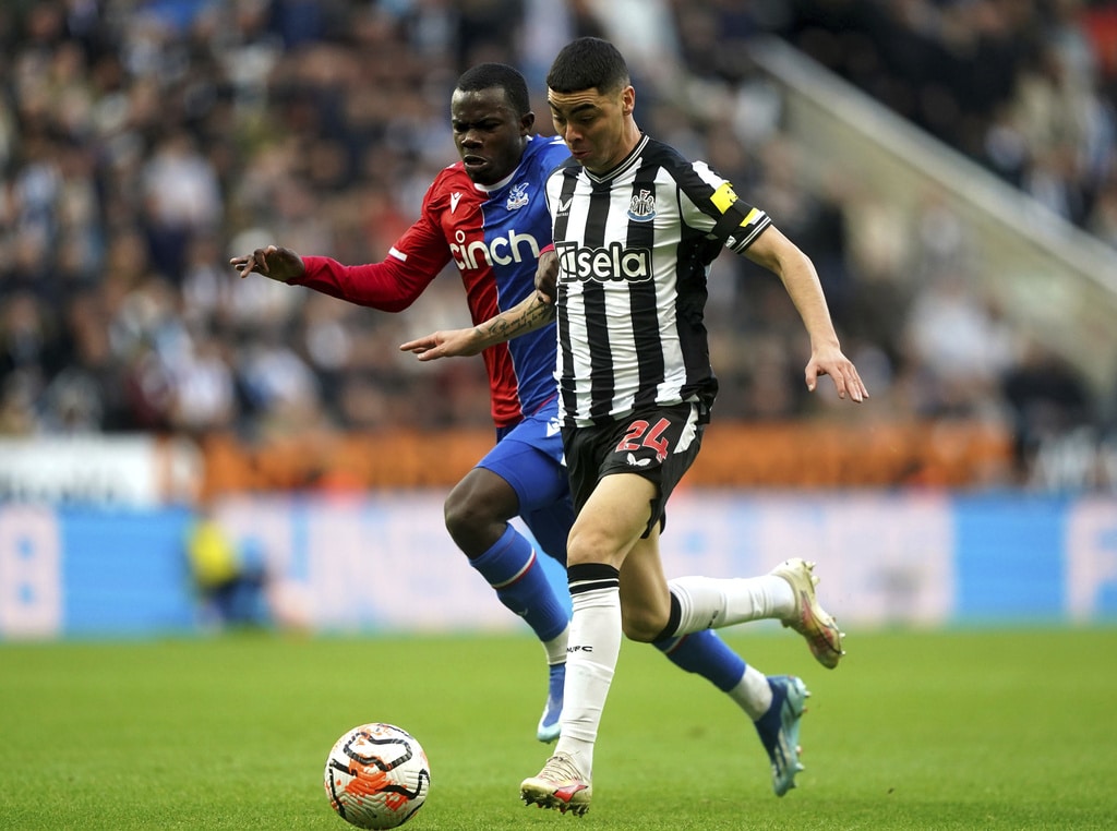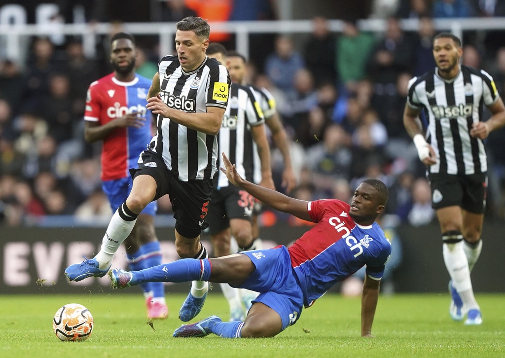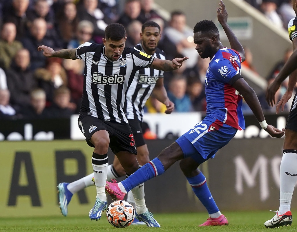 Crystal Palace’s Jordan Ayew, left, and Newcastle United’s Sandro Tonali battle for the ball during the English Premier League soccer match between Newcastle United and Crystal Palace at St James’ Park, Newcastle upon Tyne, England, Saturday Oct. 21, 2023. (Owen Humphreys/PA via AP)Crystal Palace’s Tyrick Mitchell, left, and Newcastle United’s Miguel Almiron battle for the ball during the English Premier League soccer match between Newcastle United and Crystal Palace at St James’ Park, Newcastle upon Tyne, England, Saturday Oct. 21, 2023. (Owen Humphreys/PA via AP)Newcastle United’s Callum Wilson celebrates scoring during the English Premier League soccer match between Newcastle United and Crystal Palace at St James’ Park, Newcastle upon Tyne, England, Saturday Oct. 21, 2023. (Owen Humphreys/PA via AP)Newcastle United’s Callum Wilson, center, celebrates scoring during the English Premier League soccer match between Newcastle United and Crystal Palace at St James’ Park, Newcastle upon Tyne, England, Saturday Oct. 21, 2023. (Owen Humphreys/PA via AP)CORRECTS ID OF PLAYER AT RIGHT Newcastle United’s Fabian Schar, left, tackled by Crystal Palace’s Cheick Doucoure during the English Premier League soccer match between Newcastle United and Crystal Palace at St James’ Park, Newcastle upon Tyne, England, Saturday Oct. 21, 2023. (Owen Humphreys/PA via AP)Crystal Palace’s Cheick Doucoure, left, and Newcastle United’s Joelinton battle for the ball during the English Premier League soccer match between Newcastle United and Crystal Palace at St James’ Park, Newcastle upon Tyne, England, Saturday Oct. 21, 2023. (Owen Humphreys/PA via AP)Crystal Palace’s Tyrick Mitchell, left, and Newcastle United’s Jacob Murphy battle for the ball during the English Premier League soccer match between Newcastle United and Crystal Palace at St James’ Park, Newcastle upon Tyne, England, Saturday Oct. 21, 2023. (Owen Humphreys/PA via AP)Newcastle United’s Bruno Guimaraes, left, and Crystal Palace’s Odsonne Edouard battle for the ball during the English Premier League soccer match between Newcastle United and Crystal Palace at St James’ Park, Newcastle upon Tyne, England, Saturday Oct. 21, 2023. (Owen Humphreys/PA via AP)Newcastle United’s Anthony Gordon celebrates scoring during the English Premier League soccer match between Newcastle United and Crystal Palace at St James’ Park, Newcastle upon Tyne, England, Saturday Oct. 21, 2023. (Owen Humphreys/PA via AP)