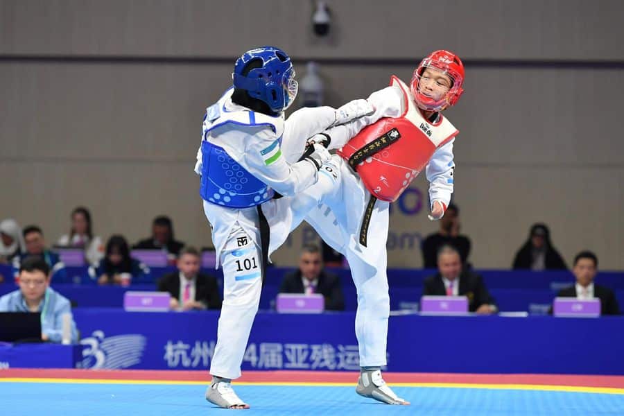 เทควันโด รุ่นน้ำหนักไม่เกิน 47 กิโลกรัมหญิง คลาส K44 เอเชียนพาราเกมส์ ครั้งที่ 4 รอบชิงชนะเลิศ ขวัญสุดา พวงกิจจา พบกับ ซิโคดาคลอฟ อิซาโคว่า อันดับ 1 ของโลกจาก อุซเบกิสถาน