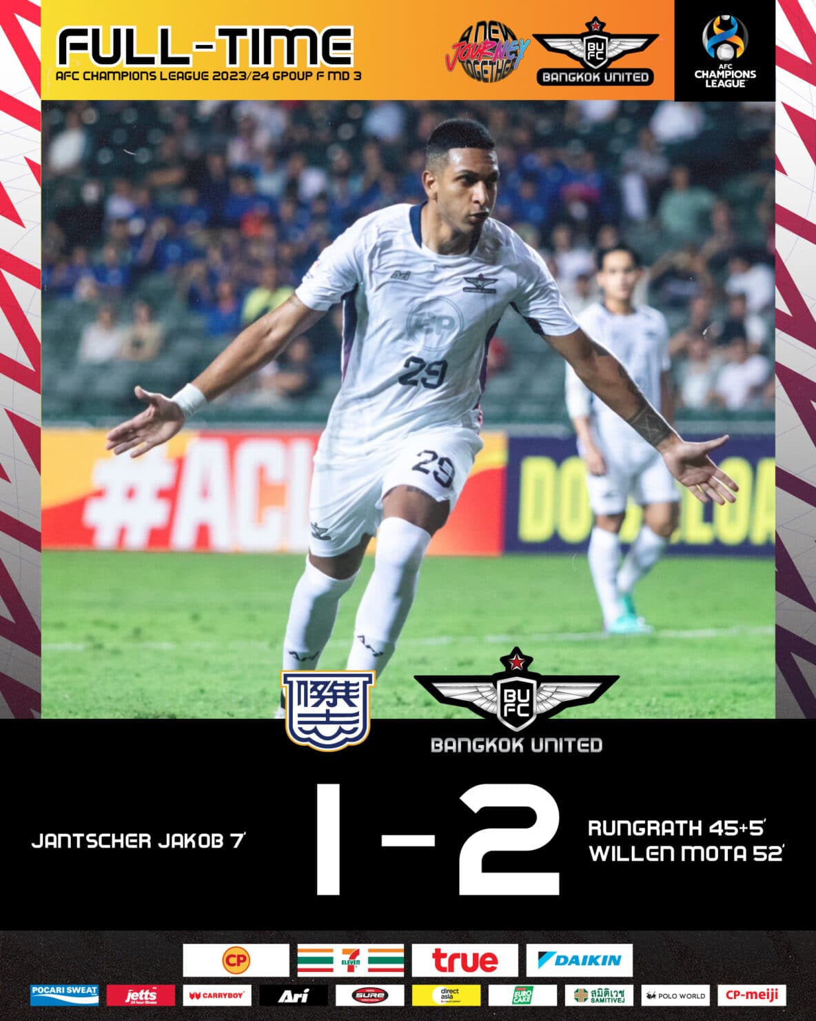 ผลบอลเมื่อคืนนี้ ฟุตบอล เอเอฟซี แชมเปี้ยนส์ลีก ฤดูกาล 2023/24 คิตฉี 1-2 แบงค็อก ยูไนเต็ด คืนวันพุธที่ 25 ตุลาคม 2566 ที่สนาม ฮ่องกง สเตเดี้ยม ทรู แบงค็อก ทีมแกร่งจากไทยลีก ฟอร์มเฉียบ บุกอัด คิตฉี เอสซี ถึงถิ่น คว้าชัยรวด นำจ่าฝูง กลุ่ม เอฟ ศึก ฟุตบอลเอเอฟซี แชมเปี้ยนส์ลีก 2023/24 รอบแบ่งกลุ่ม โซนตะวันออก