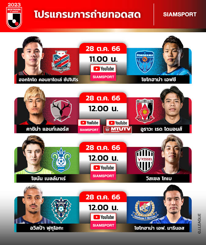 - 11:00 คอนซาโดเล ซัปโปโร พบ โยโกฮาม่า เอฟซี *ถ่ายทอดสดทาง Siamsport