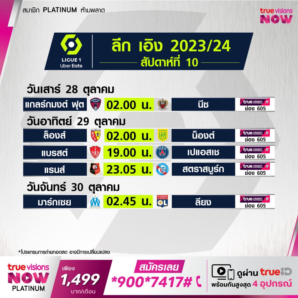 ตารางแข่งขัน ลีกเอิง ฝรั่งเศส โปรแกรมฟุตบอล ลีกเอิง 2023/24 สัปดาห์ที่ 10 ถ่ายทอดสดทาง beIN Sports