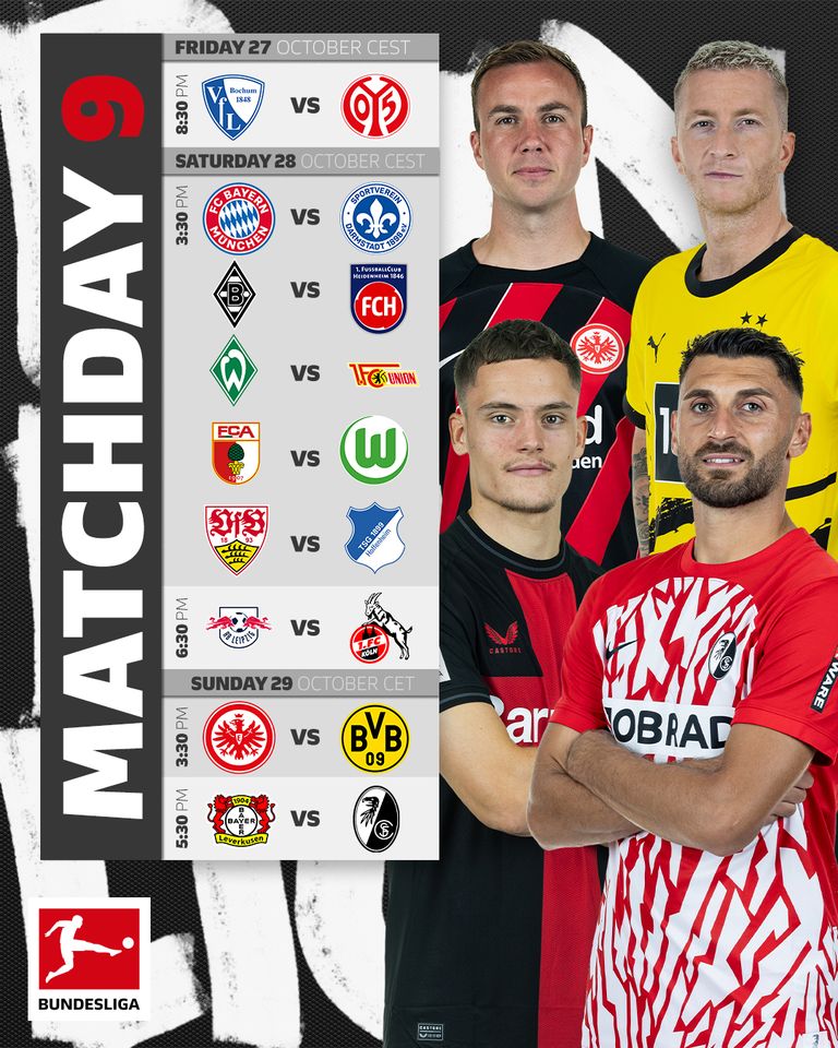 โปรแกรม บุนเดสลีกาเยอรมัน ประจำฤดูกาล 2023/24 สัปดาห์ที่ 9 ทุกคู่