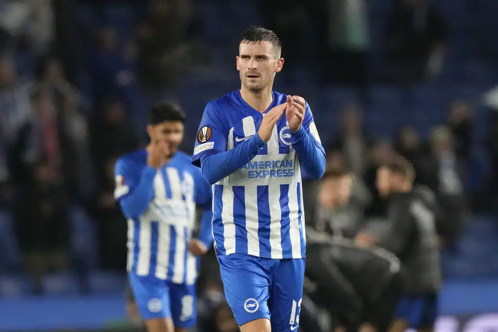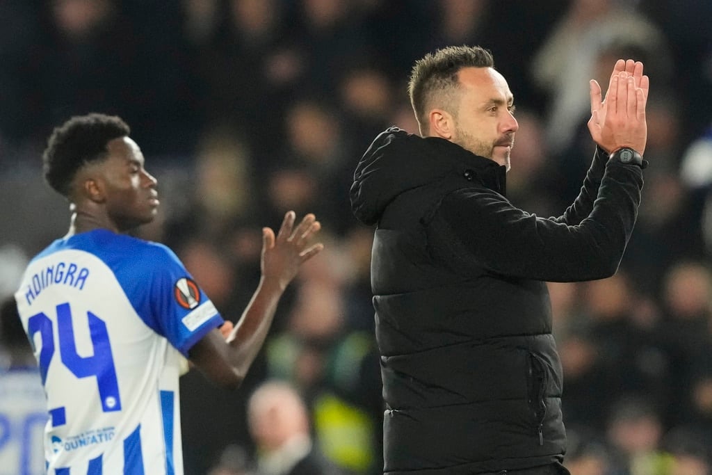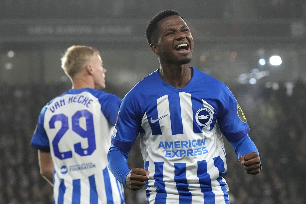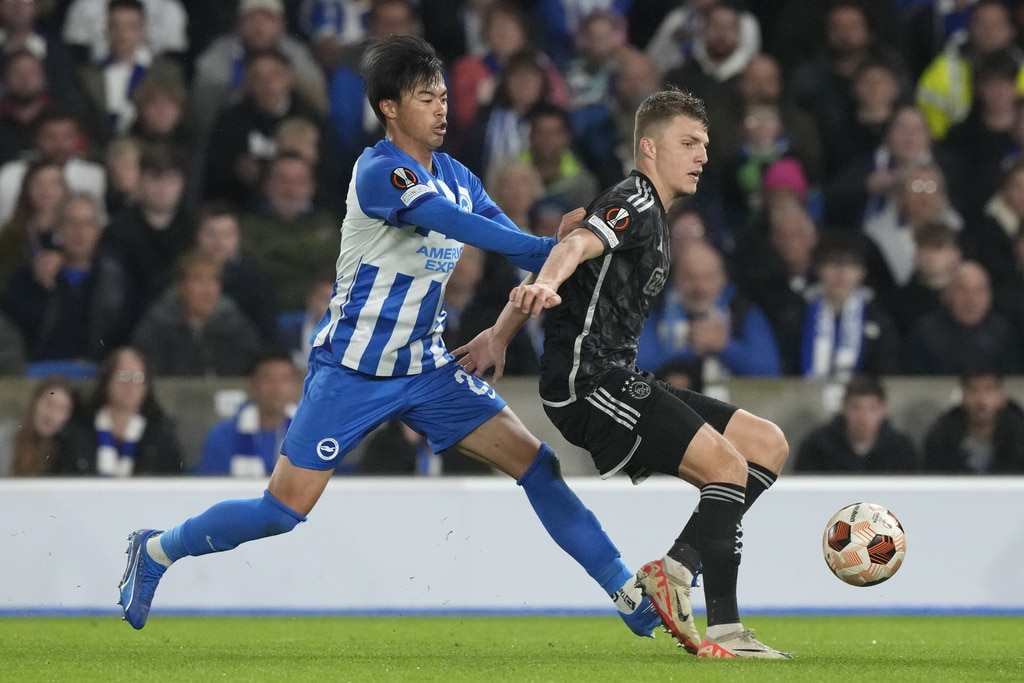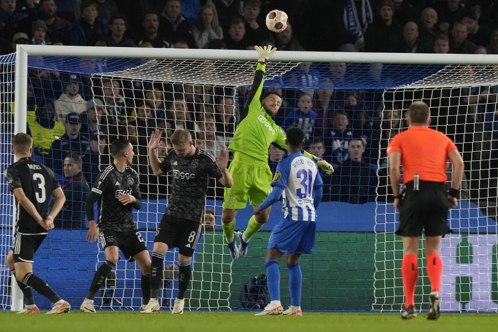 Brighton’s Joel Veltman, right, challenges for the ball with Ajax’s Steven Bergwijn during the Europa League Group B soccer match between Brighton and Hove Albion and Ajax at the Amex stadium in Brighton, England, Thursday, Oct. 26, 2023. (AP Photo/Frank Augstein)Brighton’s Ansu Fati celebrates scoring his sides second goal during the Europa League Group B soccer match between Brighton and Hove Albion and Ajax at the Amex stadium in Brighton, England, Thursday, Oct. 26, 2023. (AP Photo/Frank Augstein)Brighton’s head coach Roberto De Zerbi celebrates at full time as his team win 2-0 in the Europa League Group B soccer match between Brighton and Hove Albion and Ajax at the Amex stadium in Brighton, England, Thursday, Oct. 26, 2023. (AP Photo/Frank Augstein)Brighton’s Pascal Gross celebrates at full time as his team win 2-0 in the Europa League Group B soccer match between Brighton and Hove Albion and Ajax at the Amex stadium in Brighton, England, Thursday, Oct. 26, 2023. (AP Photo/Frank Augstein)Brighton’s Pascal Gross celebrates at full time as his team win 2-0 in the Europa League Group B soccer match between Brighton and Hove Albion and Ajax at the Amex stadium in Brighton, England, Thursday, Oct. 26, 2023. (AP Photo/Frank Augstein)Brighton’s Ansu Fati celebrates scoring his sides second goal during the Europa League Group B soccer match between Brighton and Hove Albion and Ajax at the Amex stadium in Brighton, England, Thursday, Oct. 26, 2023. (AP Photo/Frank Augstein)Brighton’s Ansu Fati, right, celebrates scoring his sides second goal during the Europa League Group B soccer match between Brighton and Hove Albion and Ajax at the Amex stadium in Brighton, England, Thursday, Oct. 26, 2023. (AP Photo/Frank Augstein)Brighton’s Kaoru Mitoma competes for the ball with Ajax’s Josip Sutalo during the Europa League Group B soccer match between Brighton and Hove Albion and Ajax at the Amex stadium in Brighton, England, Thursday, Oct. 26, 2023. (AP Photo/Frank Augstein)during the Europa League Group B soccer match between Brighton and Hove Albion and Ajax at the Amex stadium in Brighton, England, Thursday, Oct. 26, 2023. (AP Photo/Frank Augstein)Brighton players celebrate after Brighton’s Joao Pedro scores his sides first goal during the Europa League Group B soccer match between Brighton and Hove Albion and Ajax at the Amex stadium in Brighton, England, Thursday, Oct. 26, 2023. (AP Photo/Frank Augstein)Brighton’s Lewis Dunk, left, competes for the ball with Ajax’s Carlos Forbs during the Europa League Group B soccer match between Brighton and Hove Albion and Ajax at the Amex stadium in Brighton, England, Thursday, Oct. 26, 2023. (AP Photo/Frank Augstein)Ajax’s goalkeeper Diant Ramaj makes a save from a shot by Brighton’s Ansu Fati during the Europa League Group B soccer match between Brighton and Hove Albion and Ajax at the Amex stadium in Brighton, England, Thursday, Oct. 26, 2023. (AP Photo/Frank Augstein)Brighton’s Joel Veltman, right, challenges for the ball with Ajax’s Steven Bergwijn during the Europa League Group B soccer match between Brighton and Hove Albion and Ajax at the Amex stadium in Brighton, England, Thursday, Oct. 26, 2023. (AP Photo/Frank Augstein)
