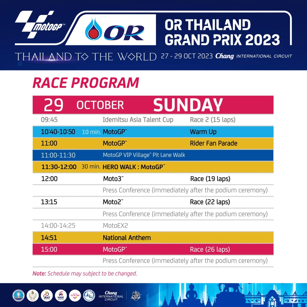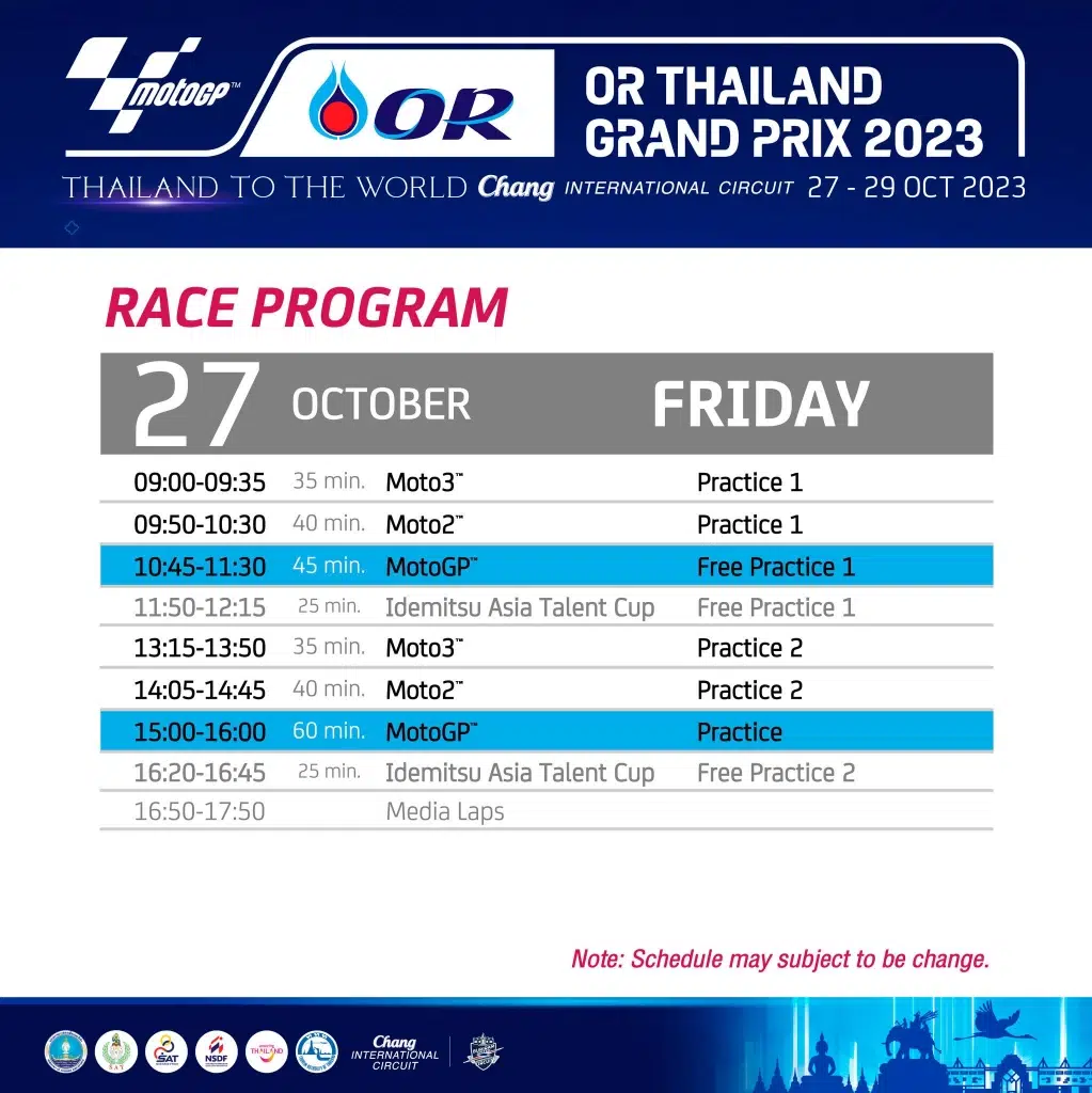 โปรแกรมแข่งขัน โมโตจีพี โออาร์ ไทยแลนด์ กรังด์ปรีซ์ 2023