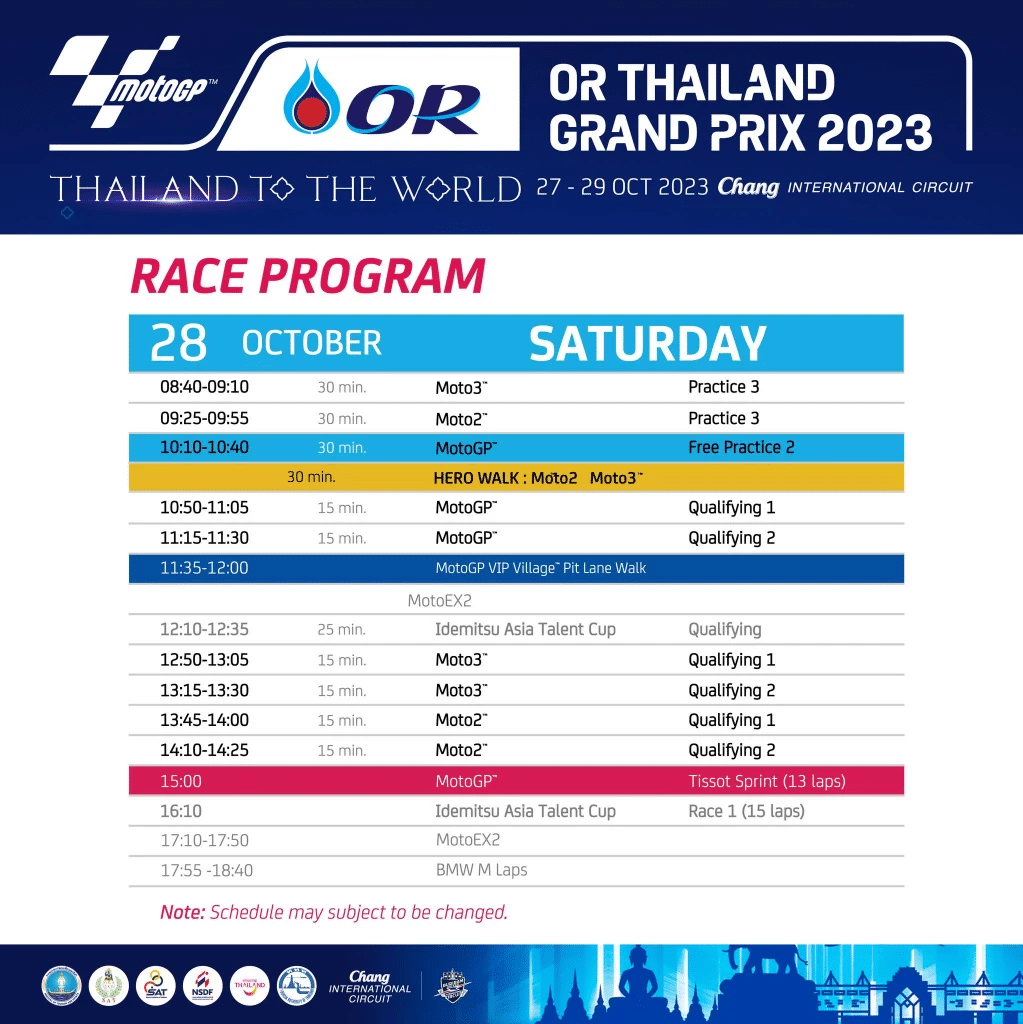 เปิดโปรแกรม ตารางแข่งขันจักรยานยนต์ทางเรียบชิงแชมป์โลก MotoGP โมโตจีพี โออาร์ ไทยแลนด์ กรังด์ปรีซ์ 2023 ที่จังหวัดบุรีรัมย์ ประเทศไทย