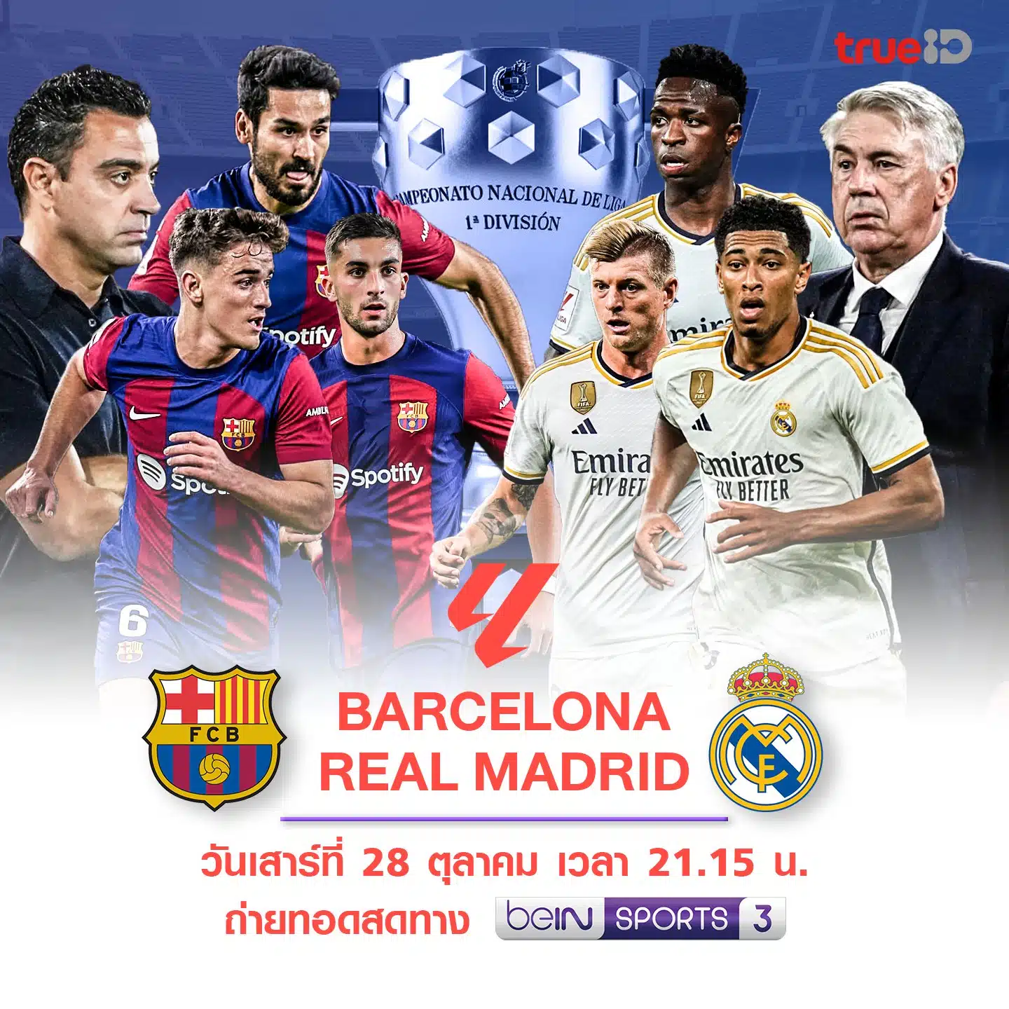 28 ตุลาคม 2566 เวลา 21.15 น. ถ่ายทอดสด บาร์เซโลน่า พบ เรอัล มาดริด ฟุตบอล ลาลีกา 2023/24 แฟนๆ สามารถ ดูบอลสด พร้อมวิเคราะห์ความพร้อมก่อนเกม คู่ บาร์เซโลน่าVSเรอัล มาดริด ออนไลน์ได้ทางลิงก์ด้านล่าง