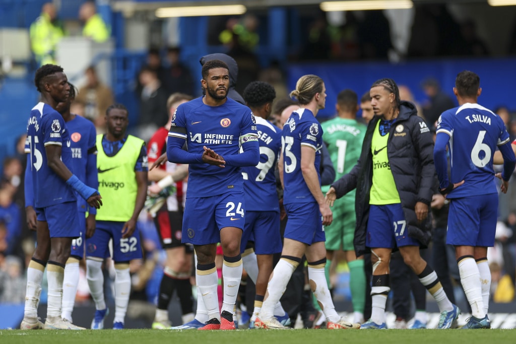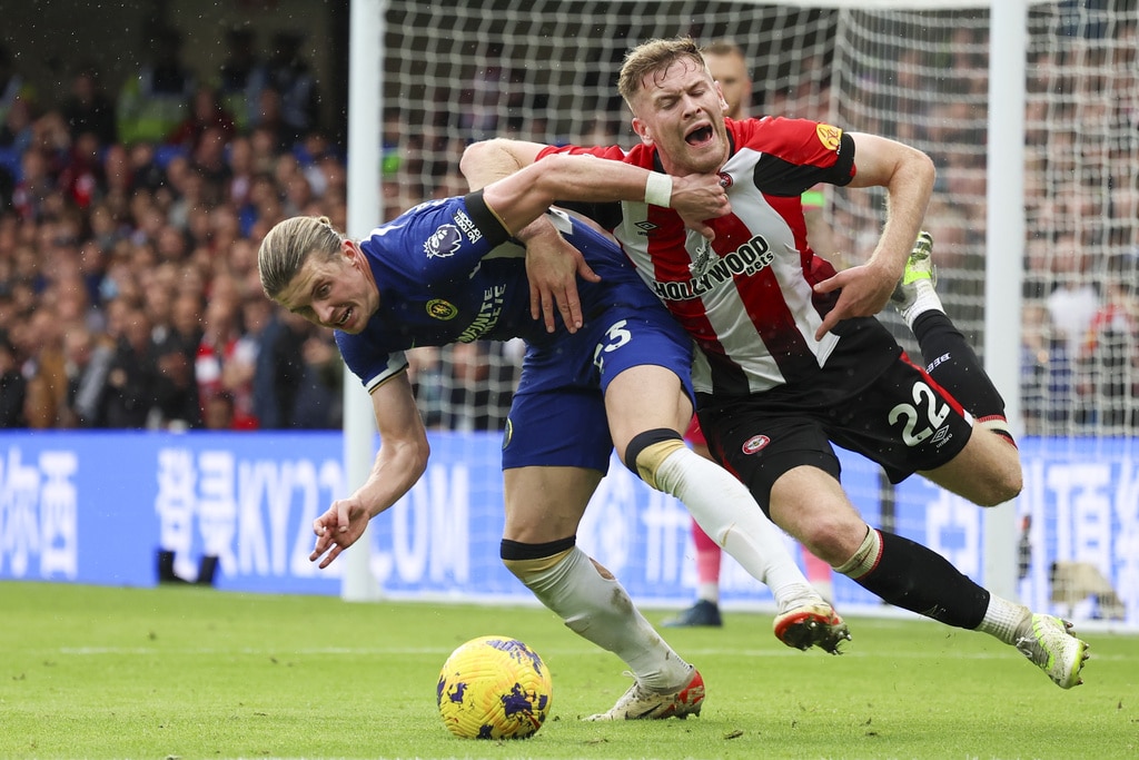 Chelsea’s Thiago Silva, left, duels for the ball with Brentford’s Saman Ghoddos during the English Premier League soccer match between Chelsea and Brentford at Stamford Bridge stadium in London, Saturday, Oct. 28, 2023. (AP Photo/Ian Walton)Chelsea’s Conor Gallagher, left, speaks with Chelsea’s goalkeeper Robert Sanchez at the end of the English Premier League soccer match between Chelsea and Brentford at Stamford Bridge stadium in London, Saturday, Oct. 28, 2023. (AP Photo/Ian Walton)Chelsea players react at the end of the English Premier League soccer match between Chelsea and Brentford at Stamford Bridge stadium in London, Saturday, Oct. 28, 2023. (AP Photo/Ian Walton)Brentford’s Bryan Mbeumo celebrates with teammates after scoring his side’s second goal during the English Premier League soccer match between Chelsea and Brentford at Stamford Bridge stadium in London, Saturday, Oct. 28, 2023. (AP Photo/Ian Walton)Chelsea’s Reece James, right, duels for the ball with Brentford’s Saman Ghoddos during the English Premier League soccer match between Chelsea and Brentford at Stamford Bridge stadium in London, Saturday, Oct. 28, 2023. (AP Photo/Ian Walton)Chelsea’s Conor Gallagher, left, duels for the ball with Brentford’s Nathan Collins during the English Premier League soccer match between Chelsea and Brentford at Stamford Bridge stadium in London, Saturday, Oct. 28, 2023. (AP Photo/Ian Walton)Chelsea’s Conor Gallagher, left, duels for the ball with Brentford’s Nathan Collins during the English Premier League soccer match between Chelsea and Brentford at Stamford Bridge stadium in London, Saturday, Oct. 28, 2023. (AP Photo/Ian Walton)Chelsea’s Thiago Silva, left, duels for the ball with Brentford’s Yoane Wissa during the English Premier League soccer match between Chelsea and Brentford at Stamford Bridge stadium in London, Saturday, Oct. 28, 2023. (AP Photo/Ian Walton)Chelsea’s head coach Mauricio Pochettino, left, reacts during the English Premier League soccer match between Chelsea and Brentford at Stamford Bridge stadium in London, Saturday, Oct. 28, 2023. (AP Photo/Ian Walton)Brentford’s Ethan Pinnock, second left, scores his side’s opening goal during the English Premier League soccer match between Chelsea and Brentford at Stamford Bridge stadium in London, Saturday, Oct. 28, 2023. (AP Photo/Ian Walton)Chelsea’s Nicolas Jackson, right, duels for the ball with Brentford’s Aaron Hickey during the English Premier League soccer match between Chelsea and Brentford at Stamford Bridge stadium in London, Saturday, Oct. 28, 2023. (AP Photo/Ian Walton)Chelsea’s Cole Palmer, left, duels for the ball with Brentford’s Aaron Hickey during the English Premier League soccer match between Chelsea and Brentford at Stamford Bridge stadium in London, Saturday, Oct. 28, 2023. (AP Photo/Ian Walton)Chelsea’s Conor Gallagher, left, duels for the ball with Brentford’s Yoane Wissa during the English Premier League soccer match between Chelsea and Brentford at Stamford Bridge stadium in London, Saturday, Oct. 28, 2023. (AP Photo/Ian Walton)Brentford’s Ethan Pinnock, left, duels for the ball with Chelsea’s Nicolas Jackson during the English Premier League soccer match between Chelsea and Brentford at Stamford Bridge stadium in London, Saturday, Oct. 28, 2023. (AP Photo/Ian Walton)Brentford’s Bryan Mbeumo, left, duels for the ball with Chelsea’s Moises Caicedo during the English Premier League soccer match between Chelsea and Brentford at Stamford Bridge stadium in London, Saturday, Oct. 28, 2023. (AP Photo/Ian Walton)Brentford’s Kristoffer Ajer, left, duels for the ball with Chelsea’s Marc Cucurella during the English Premier League soccer match between Chelsea and Brentford at Stamford Bridge stadium in London, Saturday, Oct. 28, 2023. (AP Photo/Ian Walton)Brentford’s Bryan Mbeumo, front left, duels for the ball with Chelsea’s Moises Caicedo during the English Premier League soccer match between Chelsea and Brentford at Stamford Bridge stadium in London, Saturday, Oct. 28, 2023. (AP Photo/Ian Walton)Brentford players, left, celebrate at the end of the English Premier League soccer match between Chelsea and Brentford at Stamford Bridge stadium in London, Saturday, Oct. 28, 2023. (AP Photo/Ian Walton)